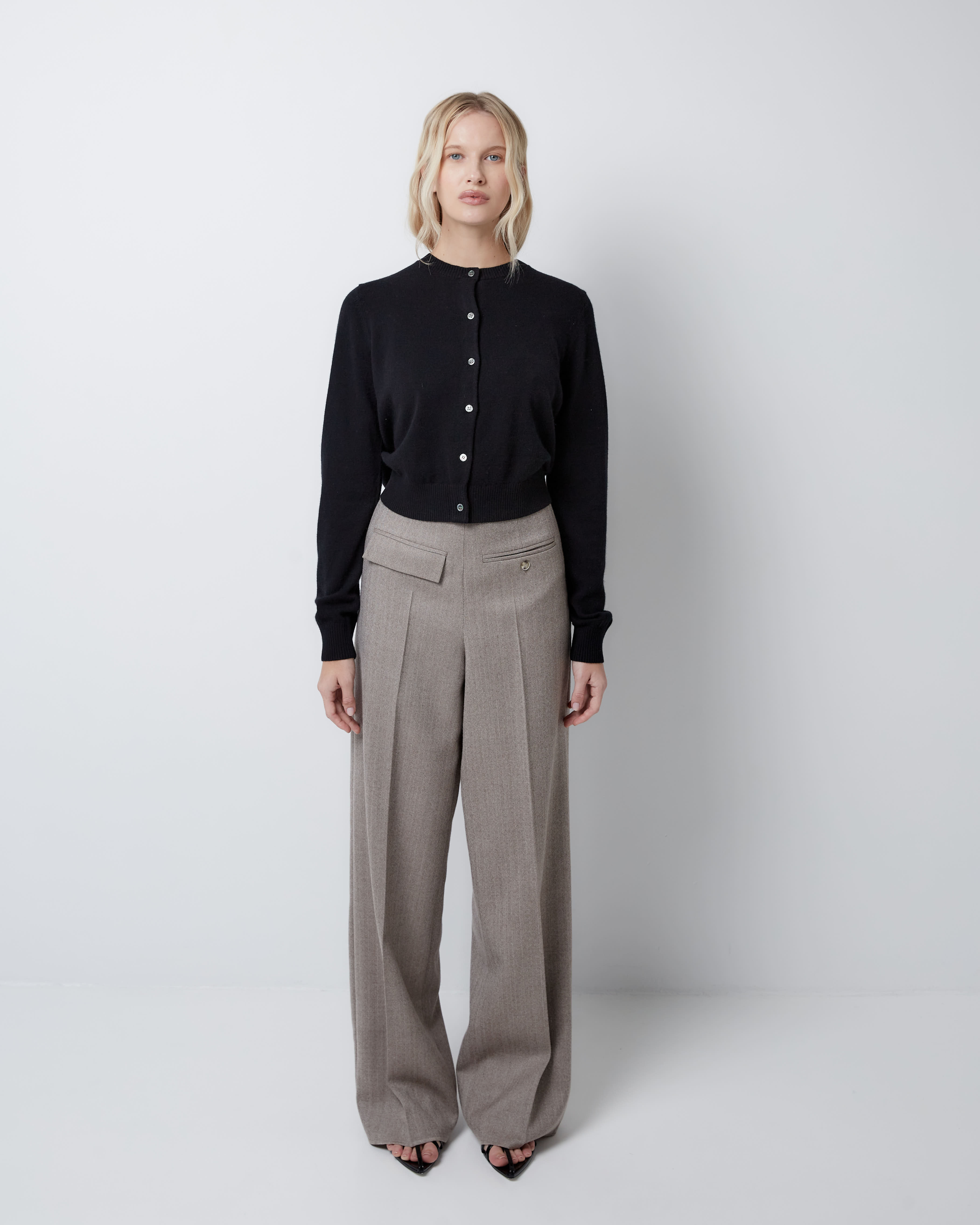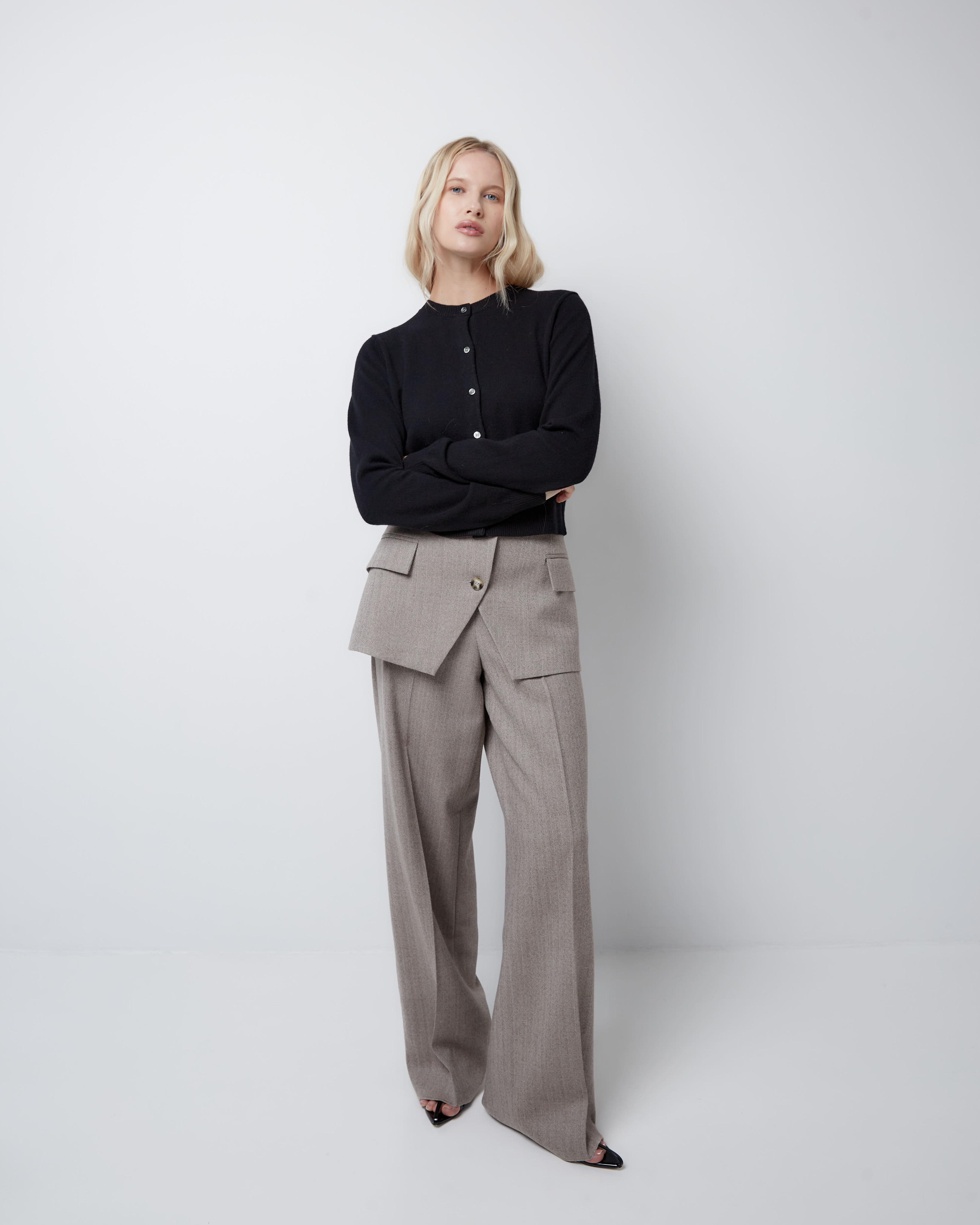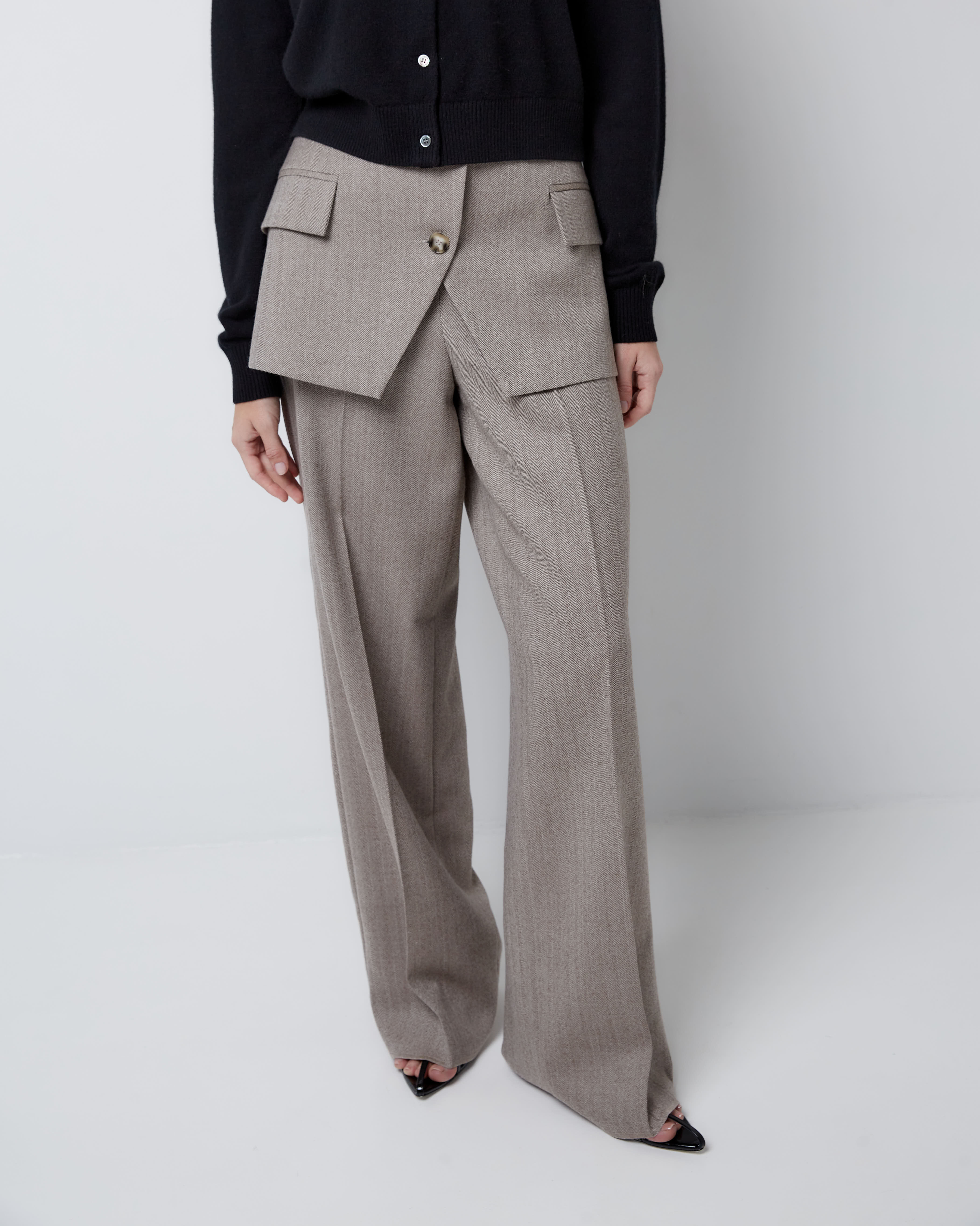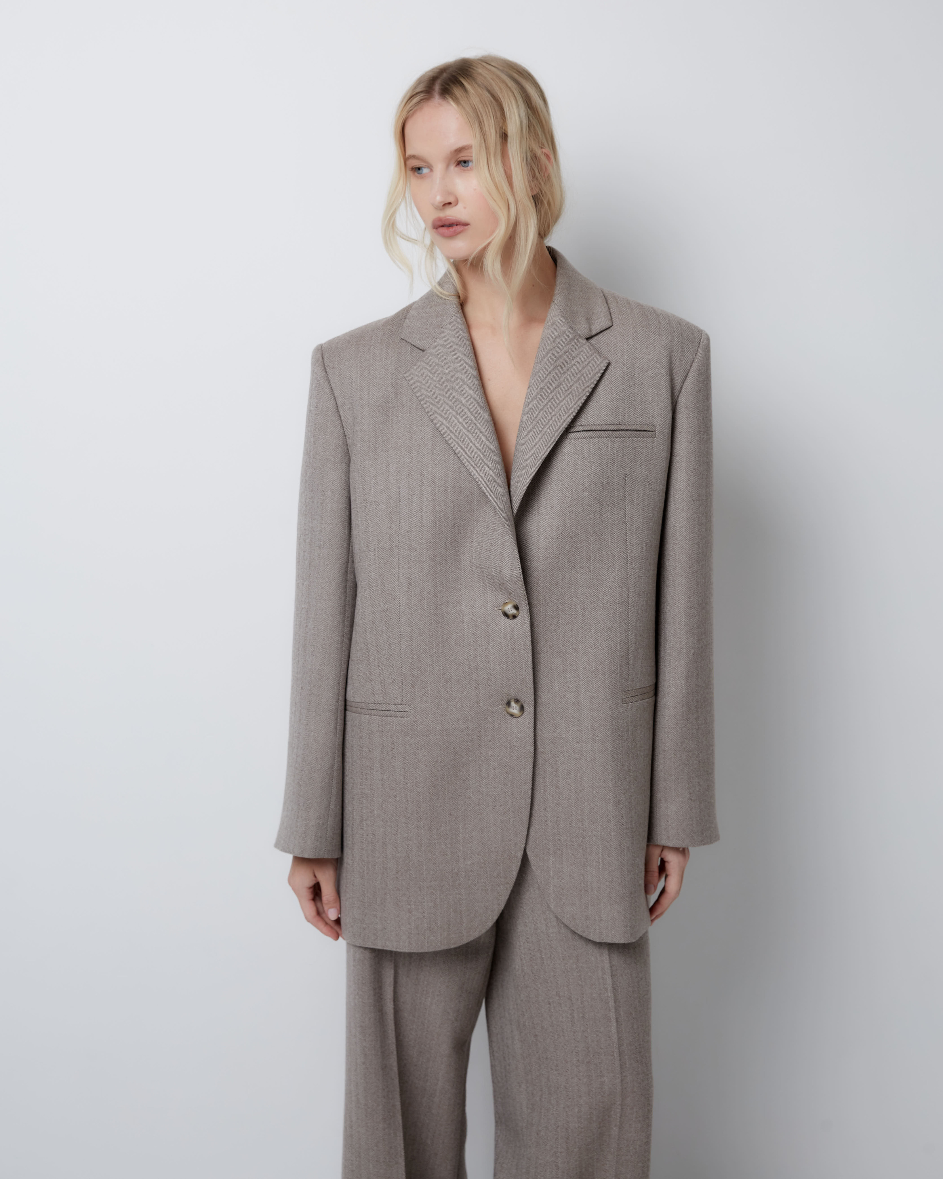 Для создания стильного и утонченного образа рекомендуем дополнить баску жакетом и брюками из аналогичного материала в тон.