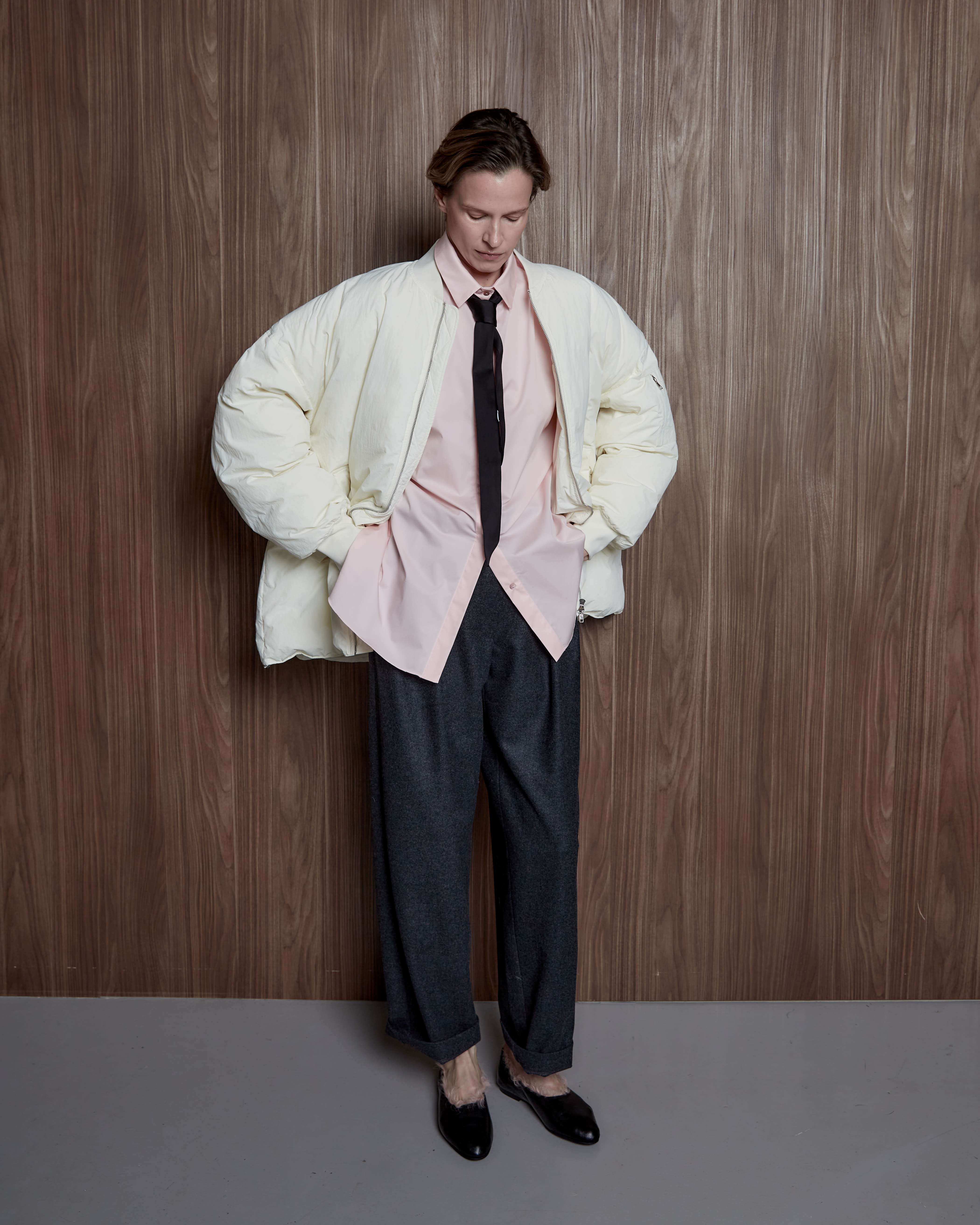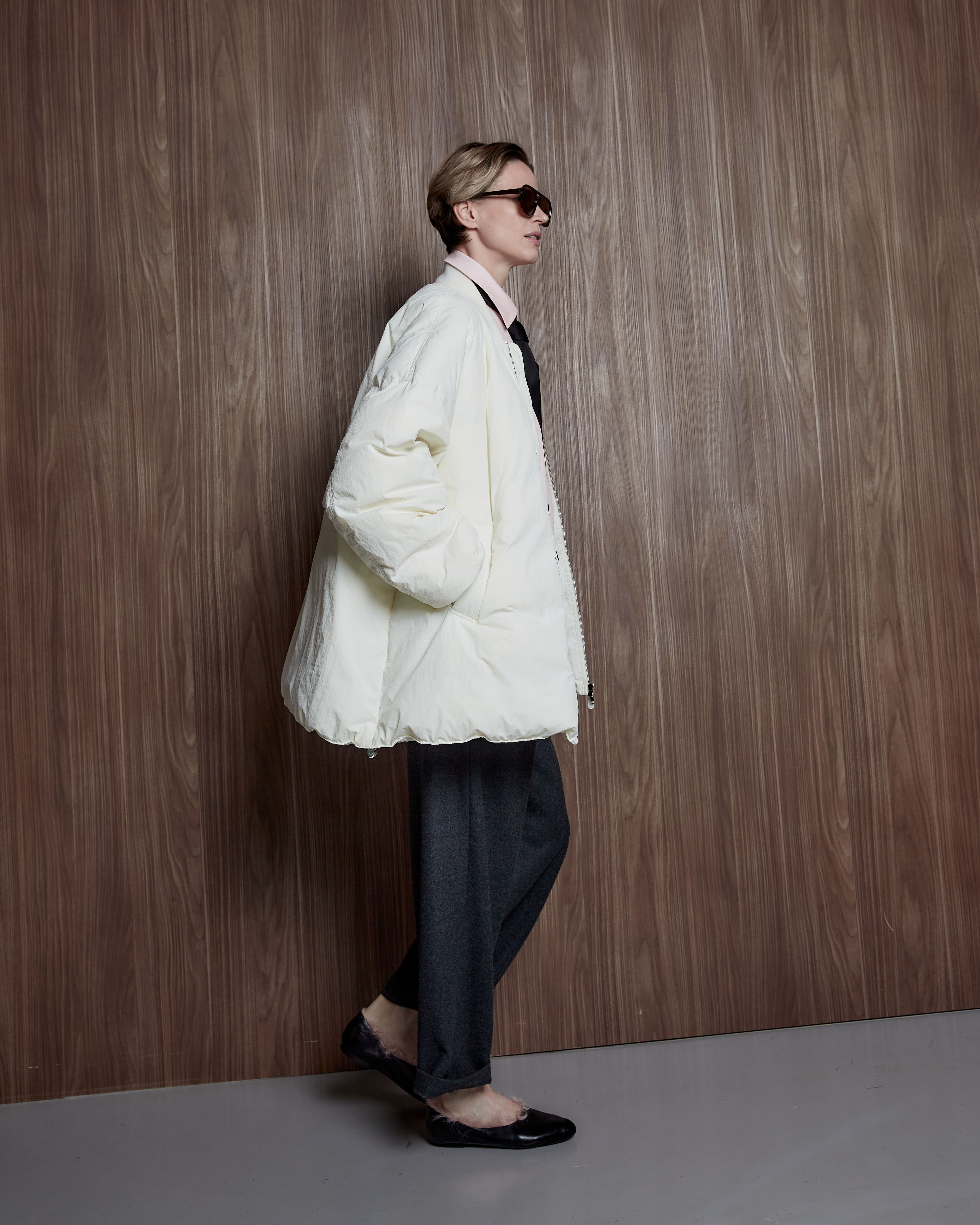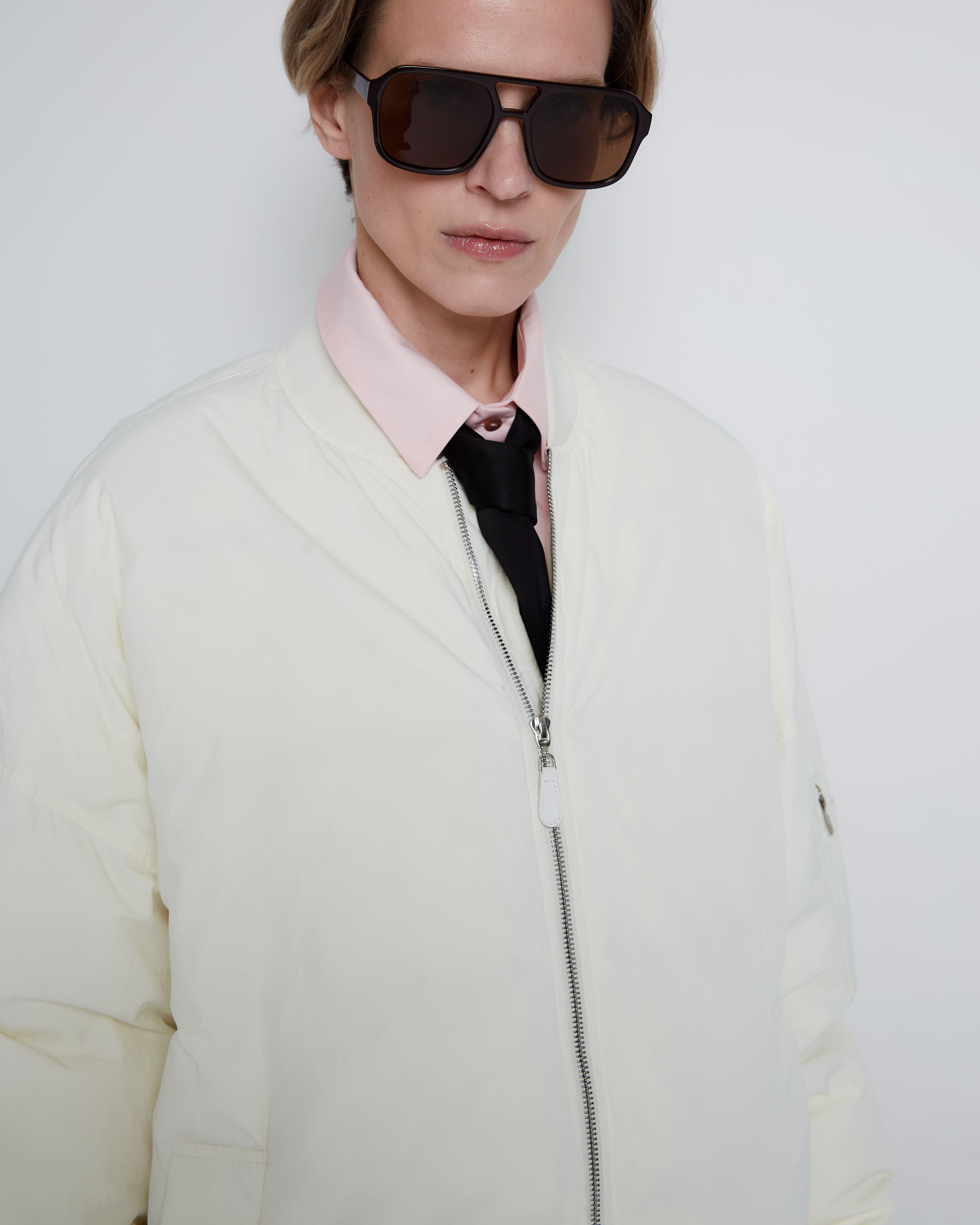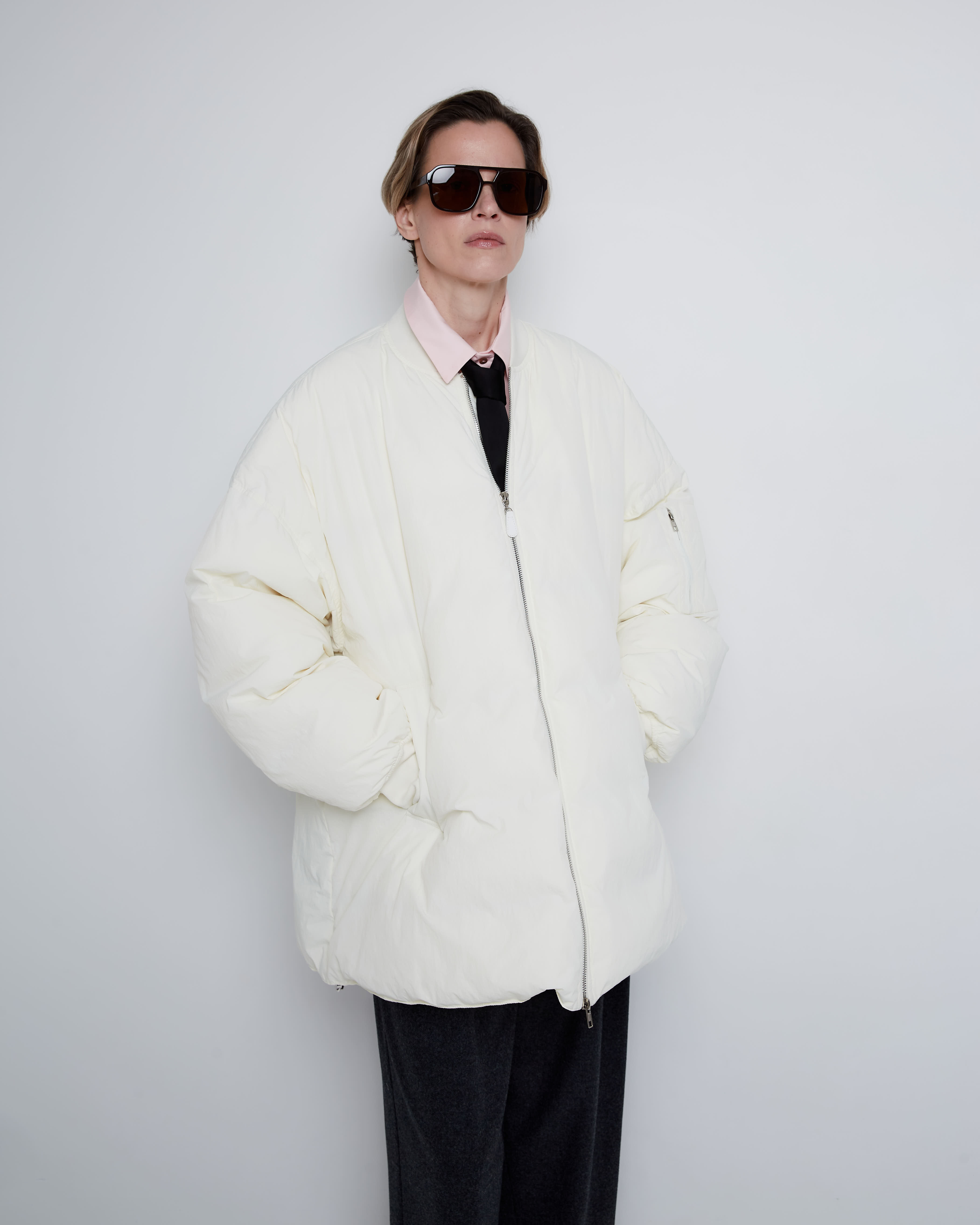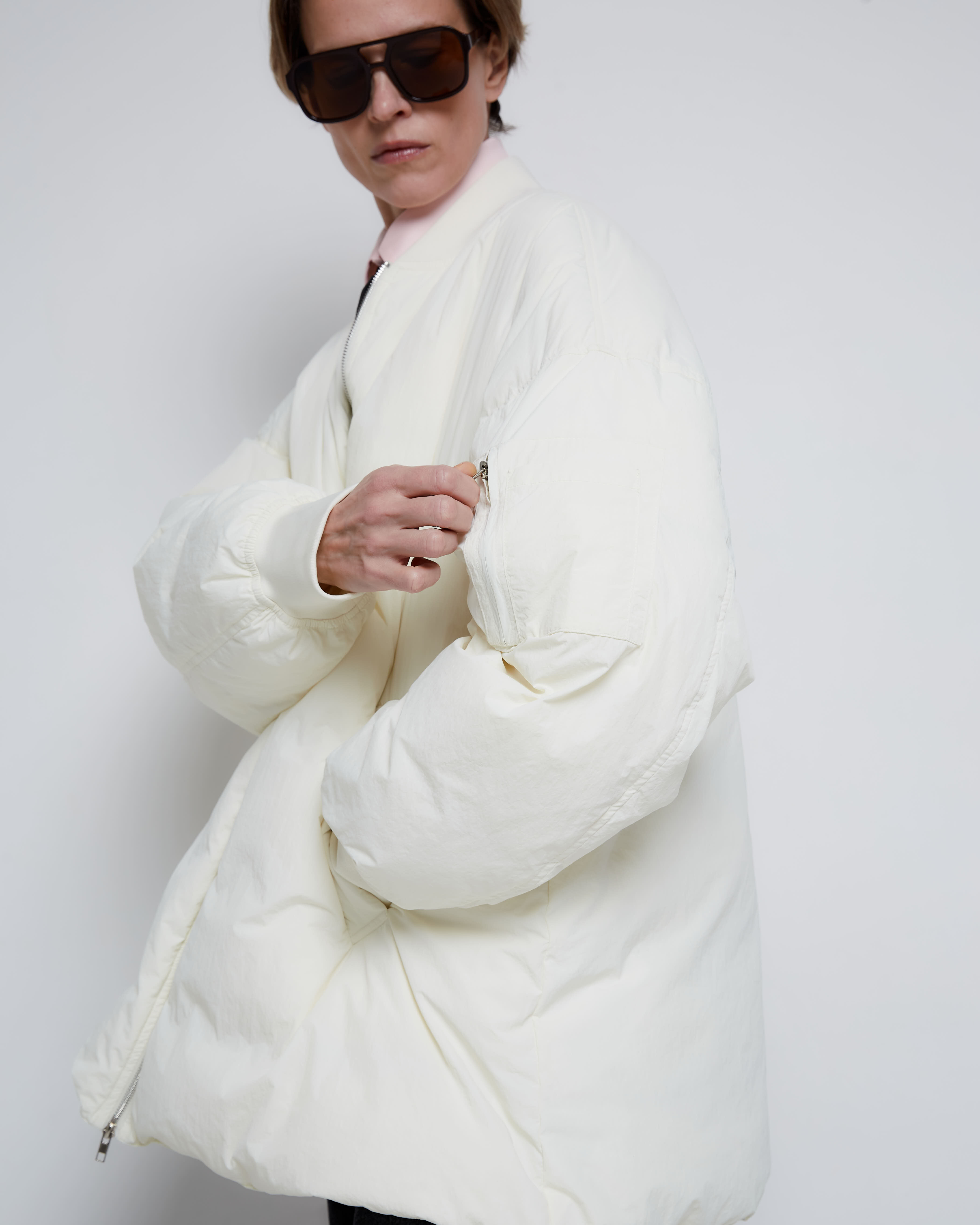 Бомбер на пуху молочный