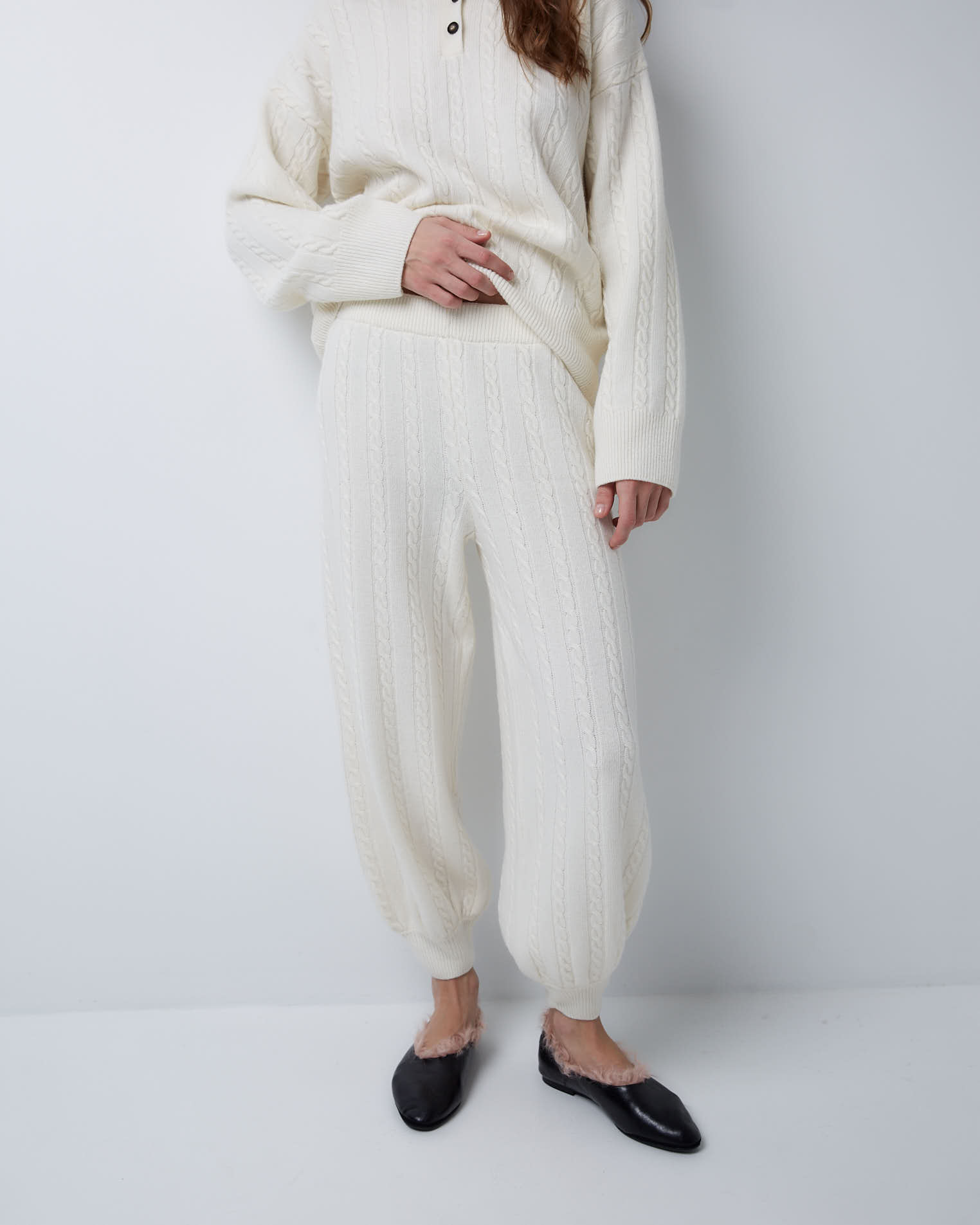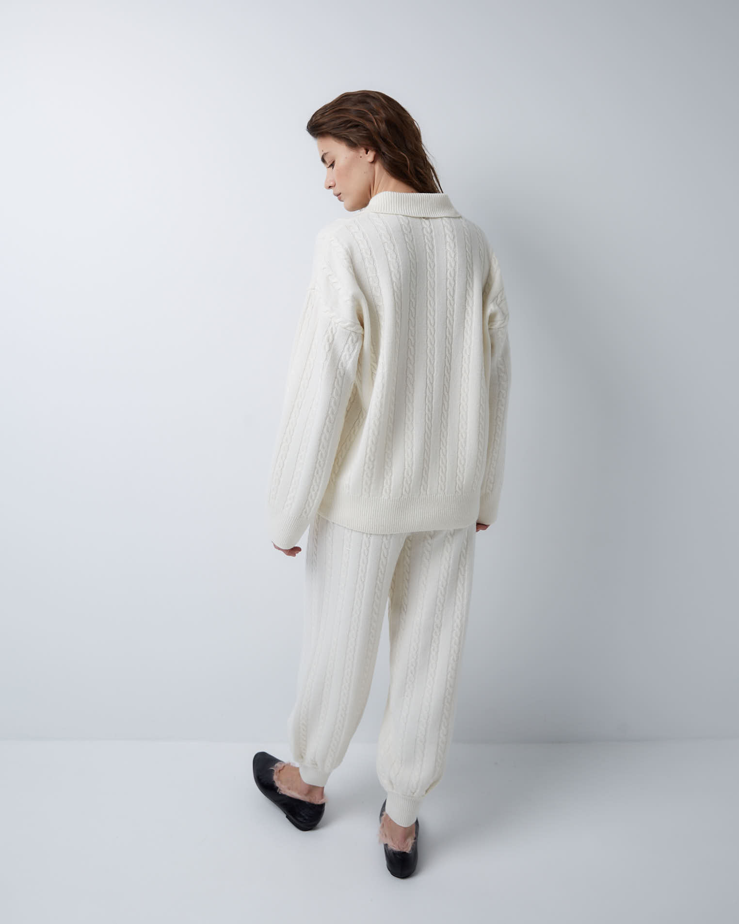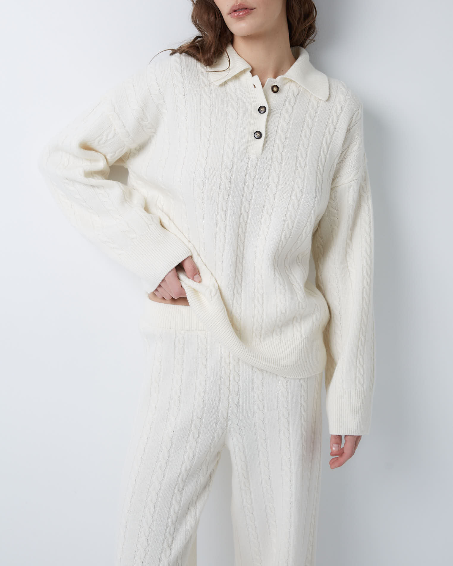 Завершите образ с помощью поло объемного кроя аналогичного оттенка. Столь элегантный комплект подойдет для любого случая.