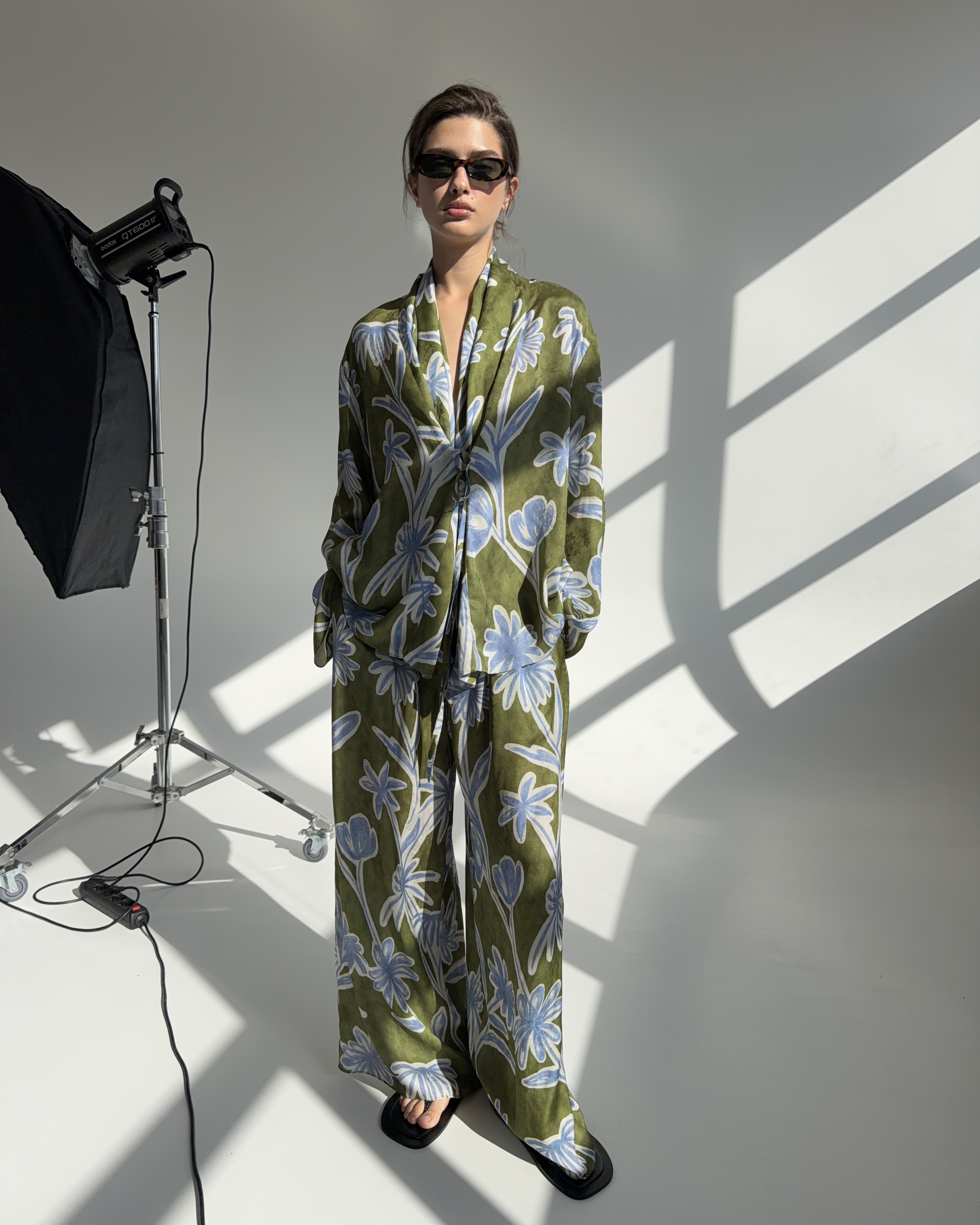 Брюки из вискозы цветы зеленый