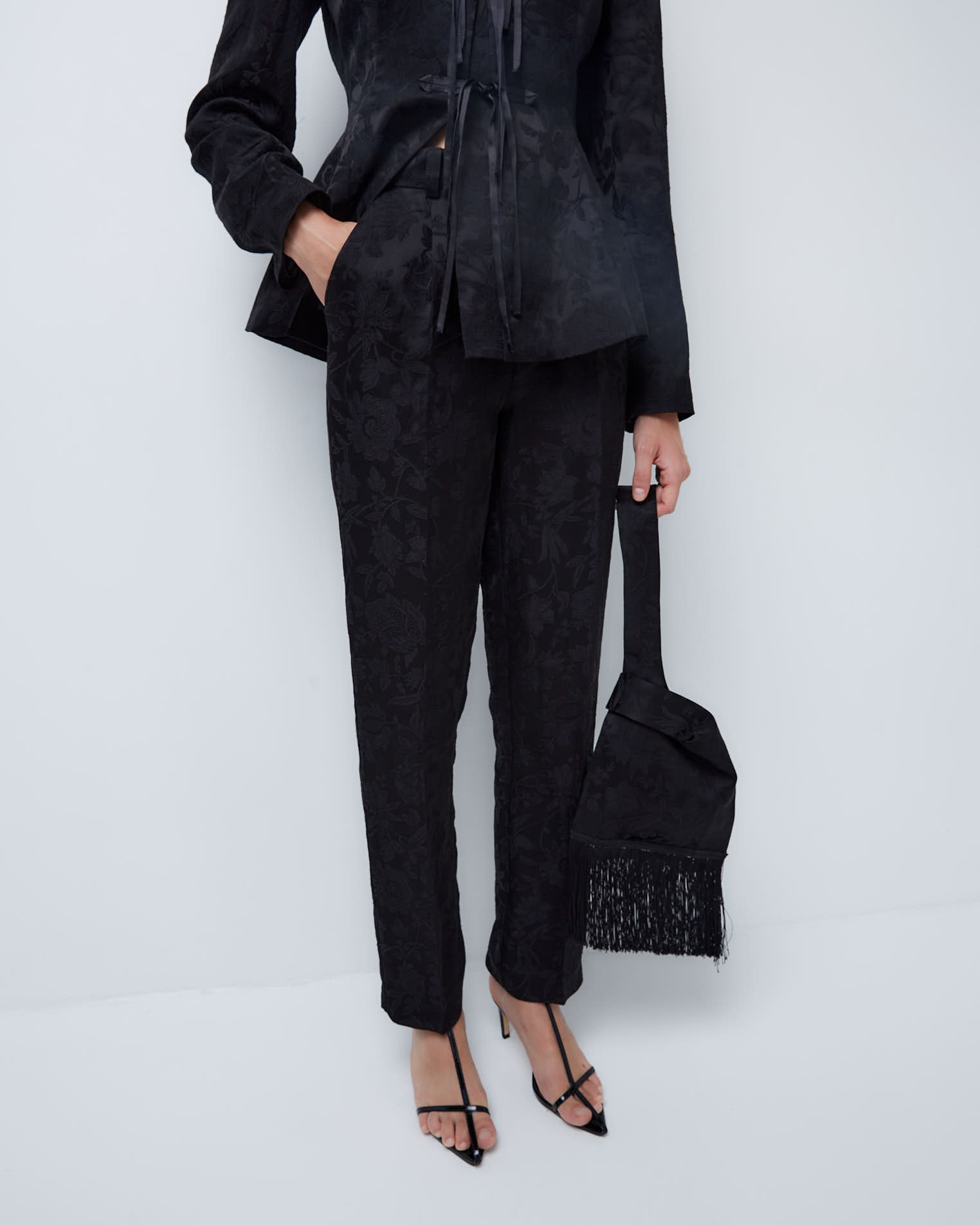Брюки из жаккардовой вискозы в черном цвете