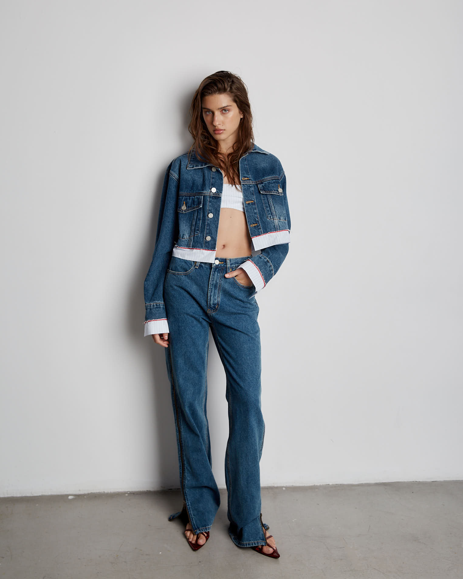 Джинсовая куртка с перьями