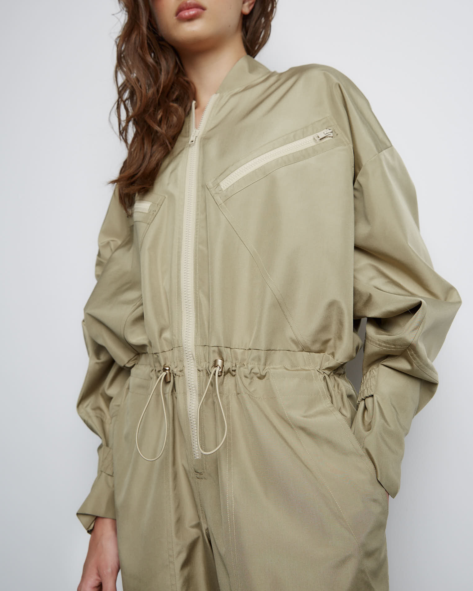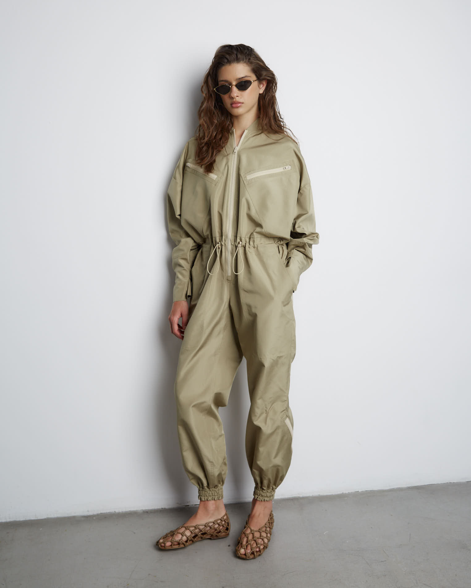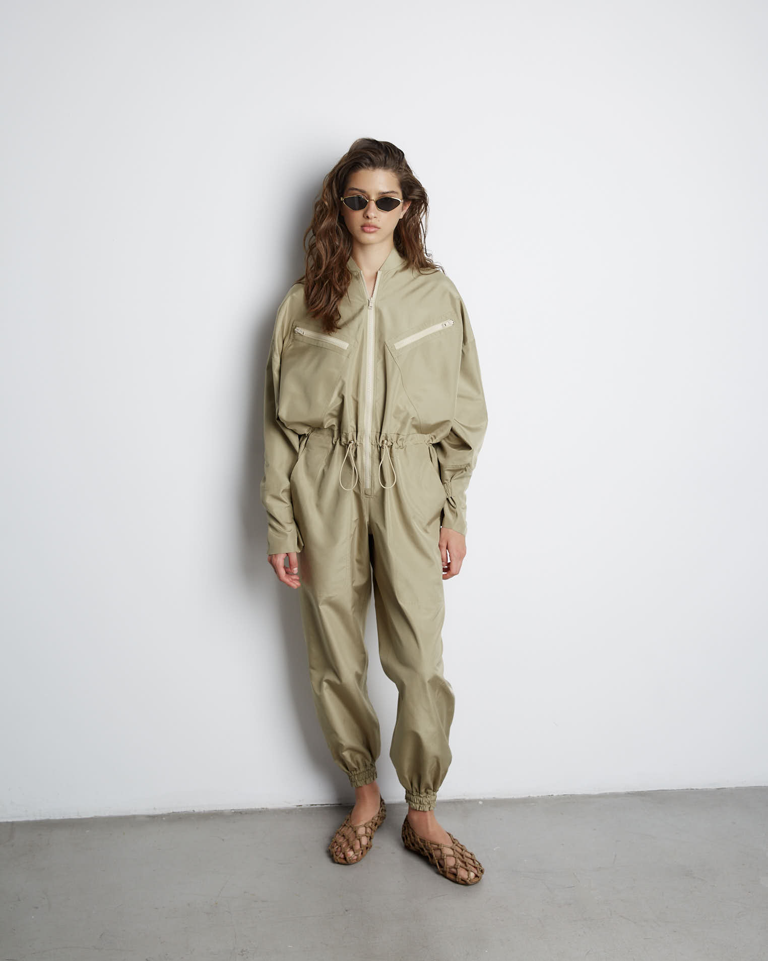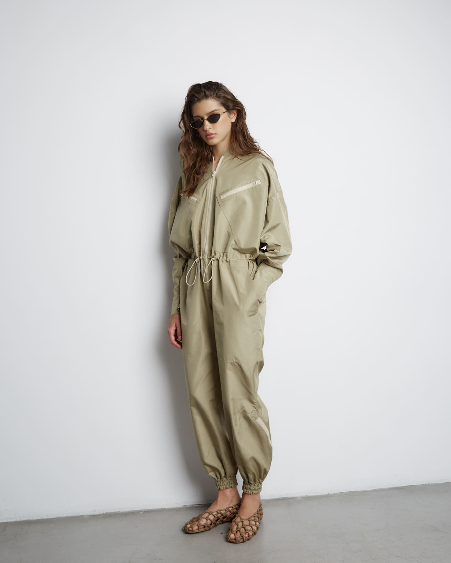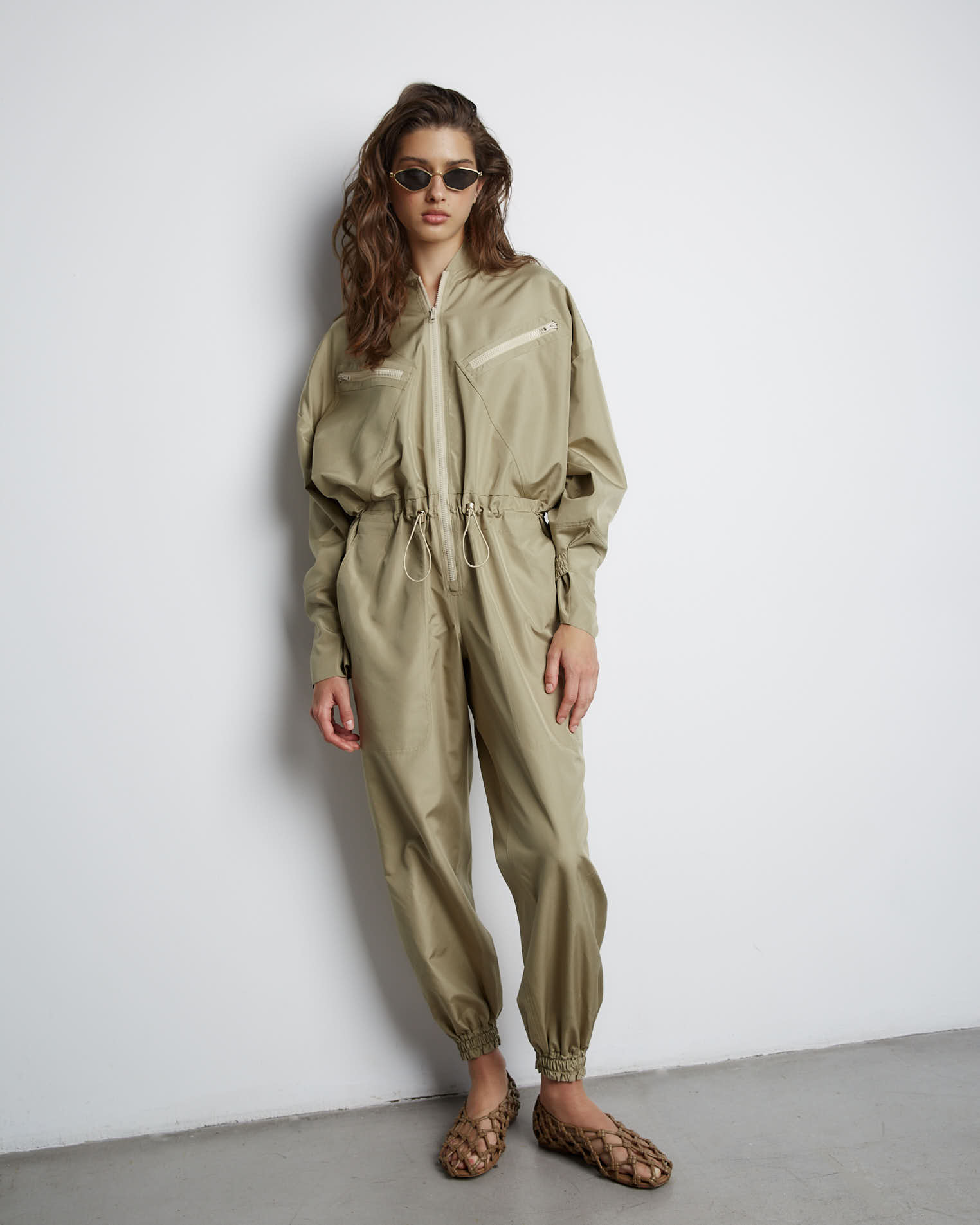 Комбинезон из шелка в цвете хаки