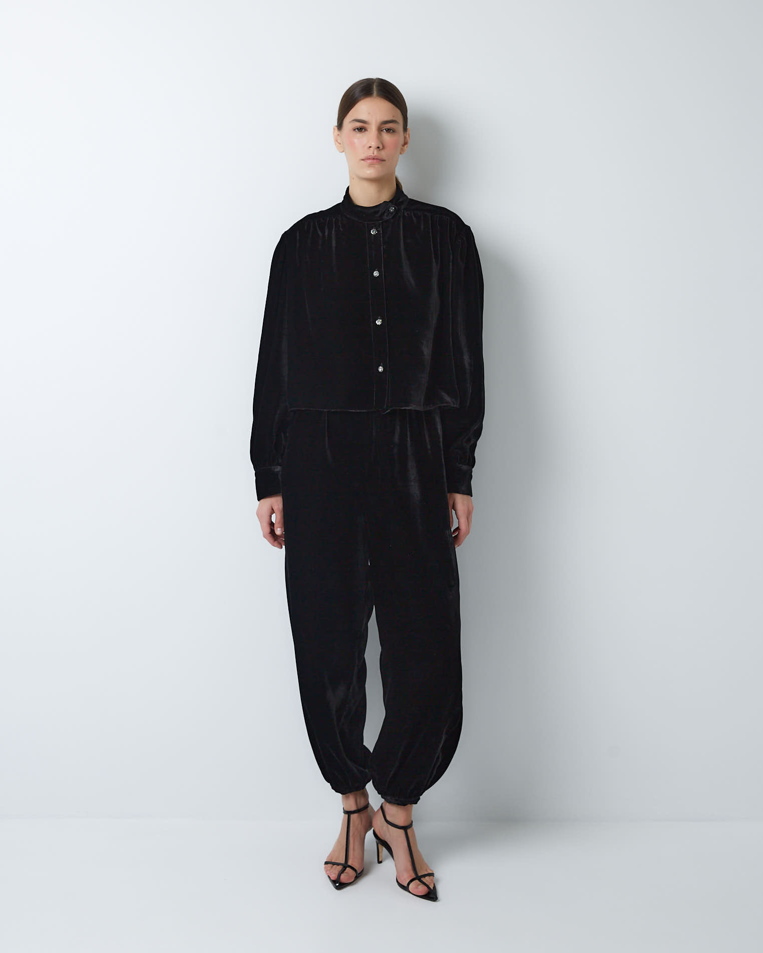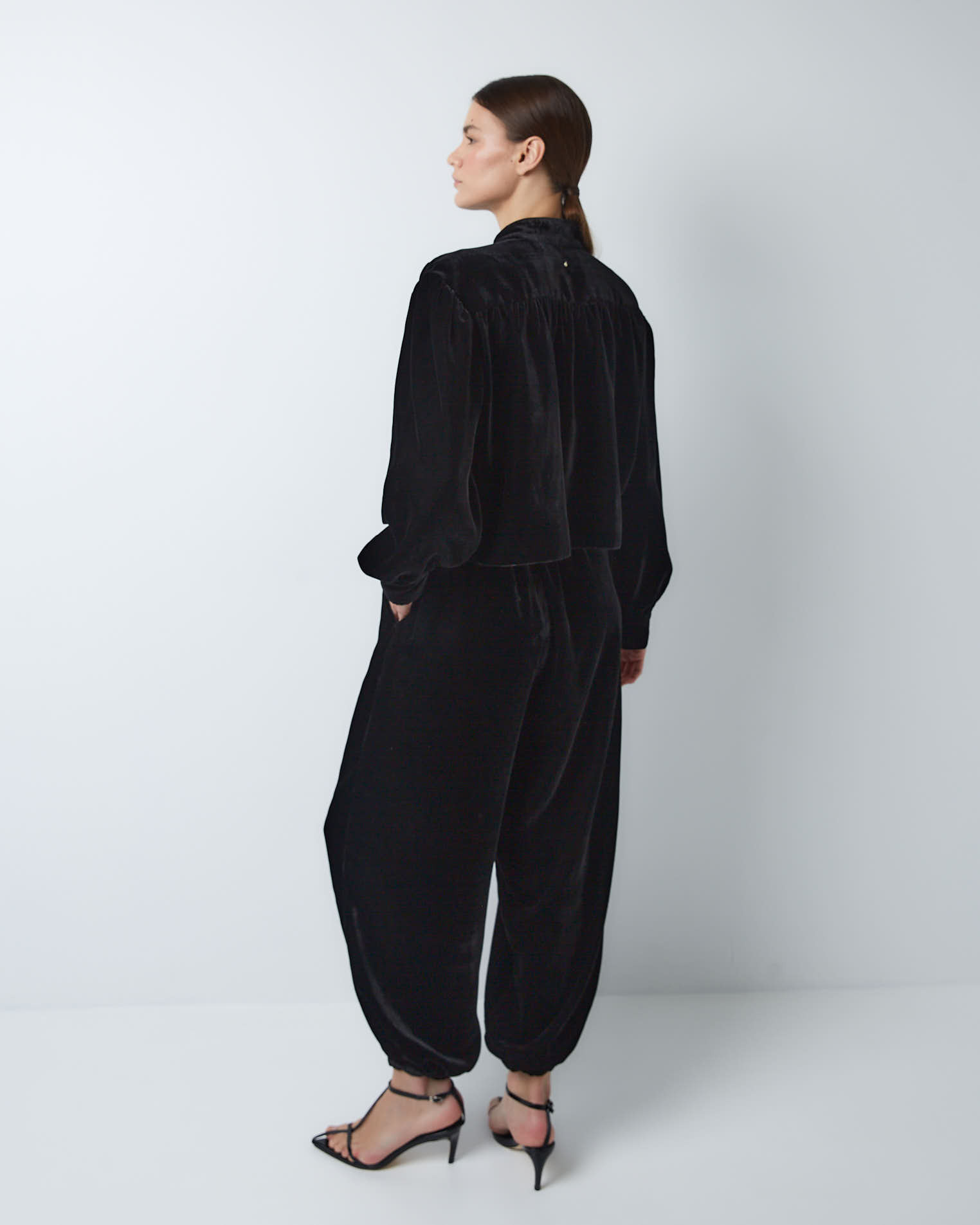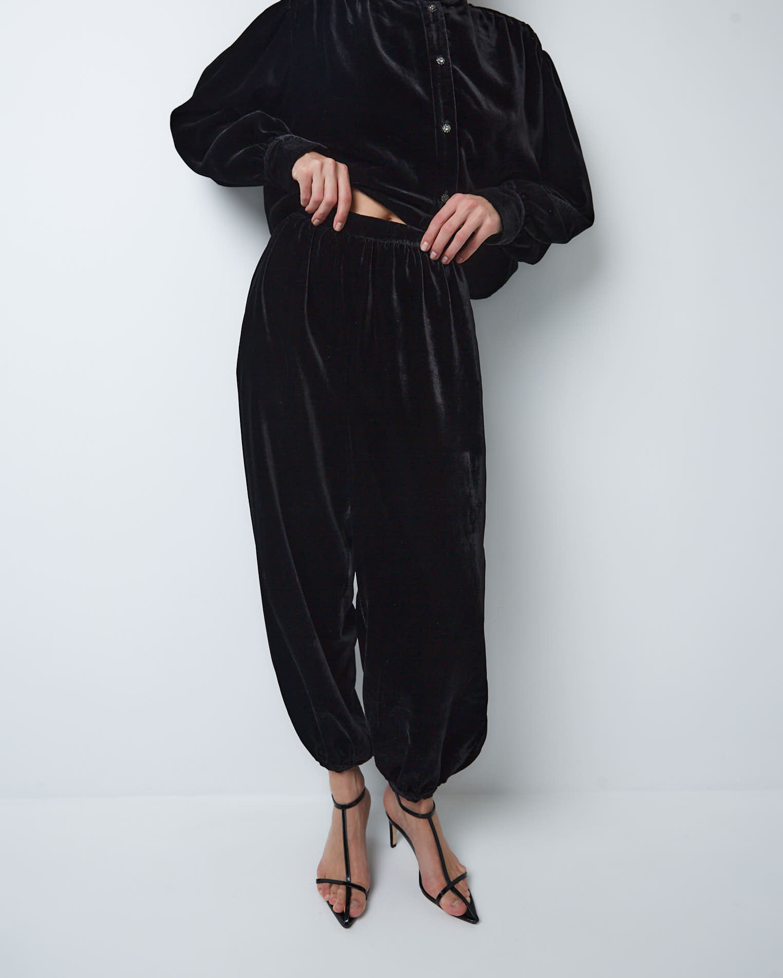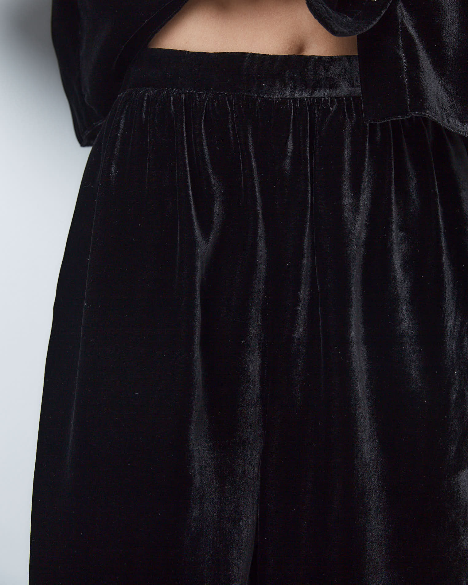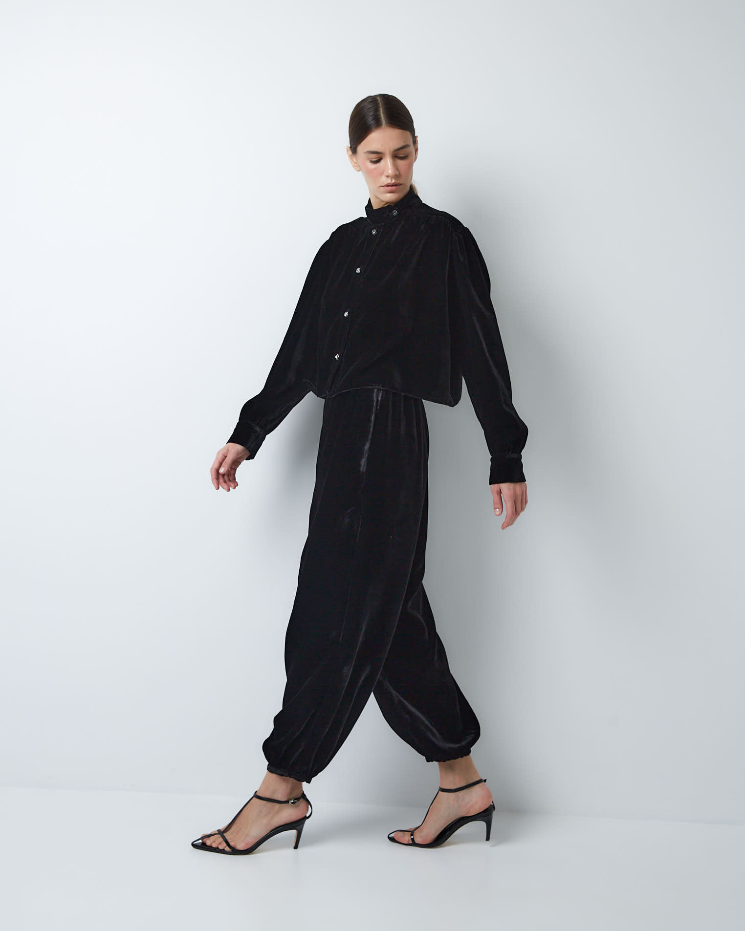 Комплект: блуза и брюки из шелкового бархата в черном цвете