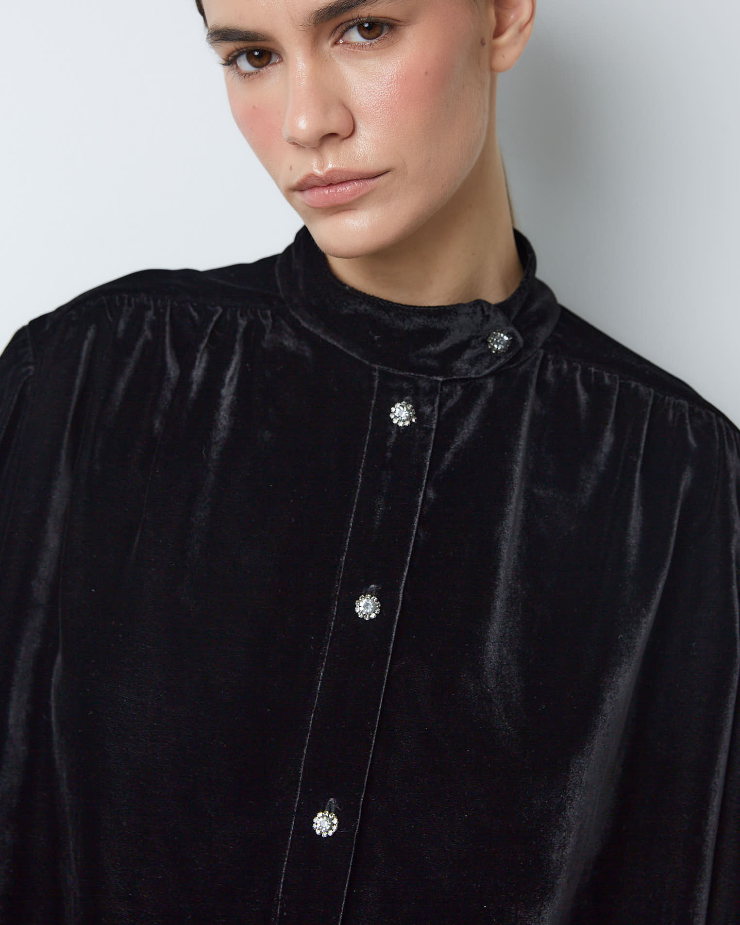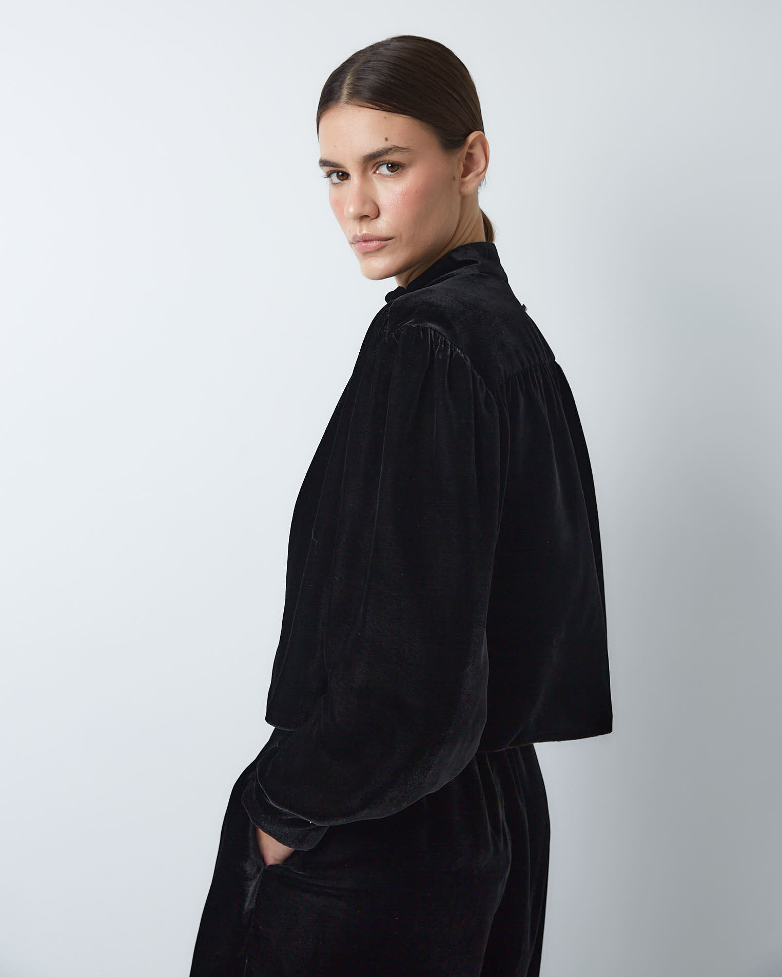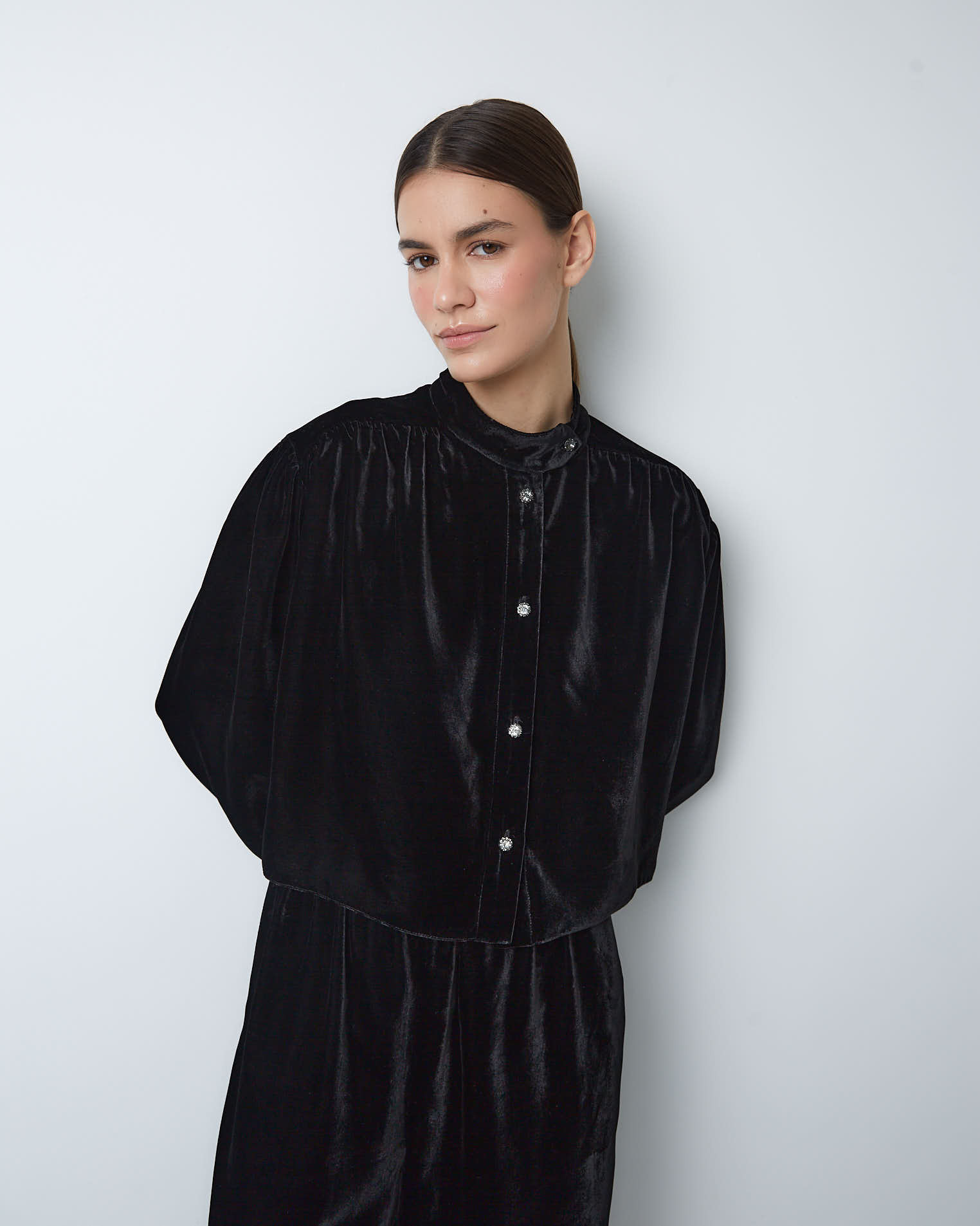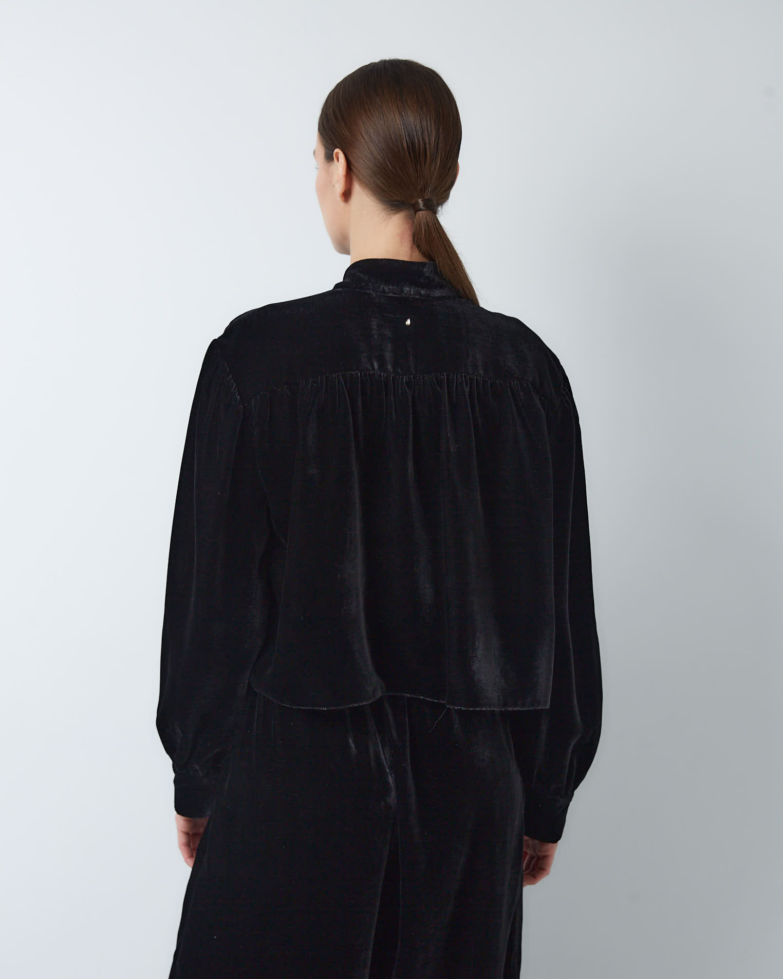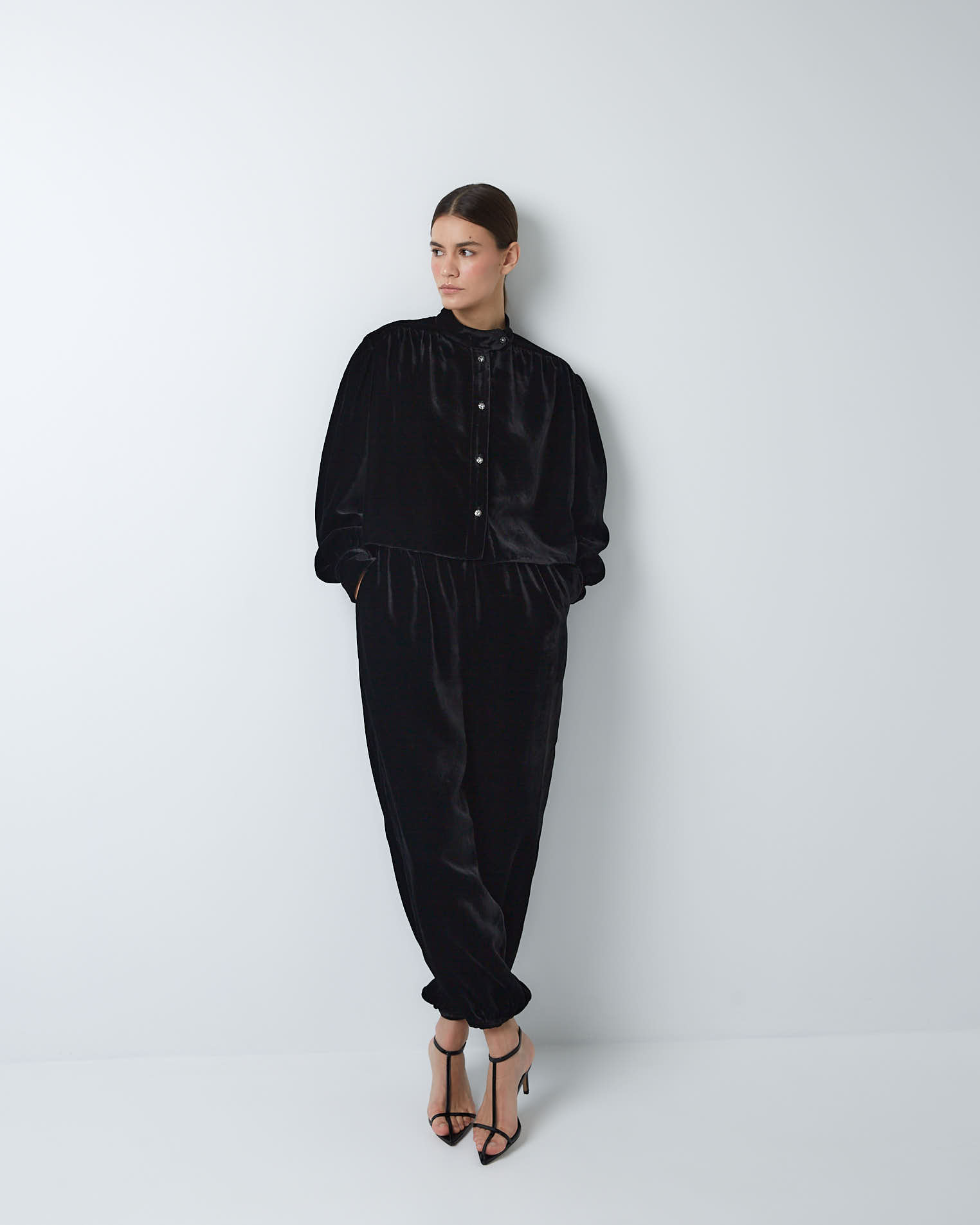 Комплект: блуза и брюки из шелкового бархата в черном цвете