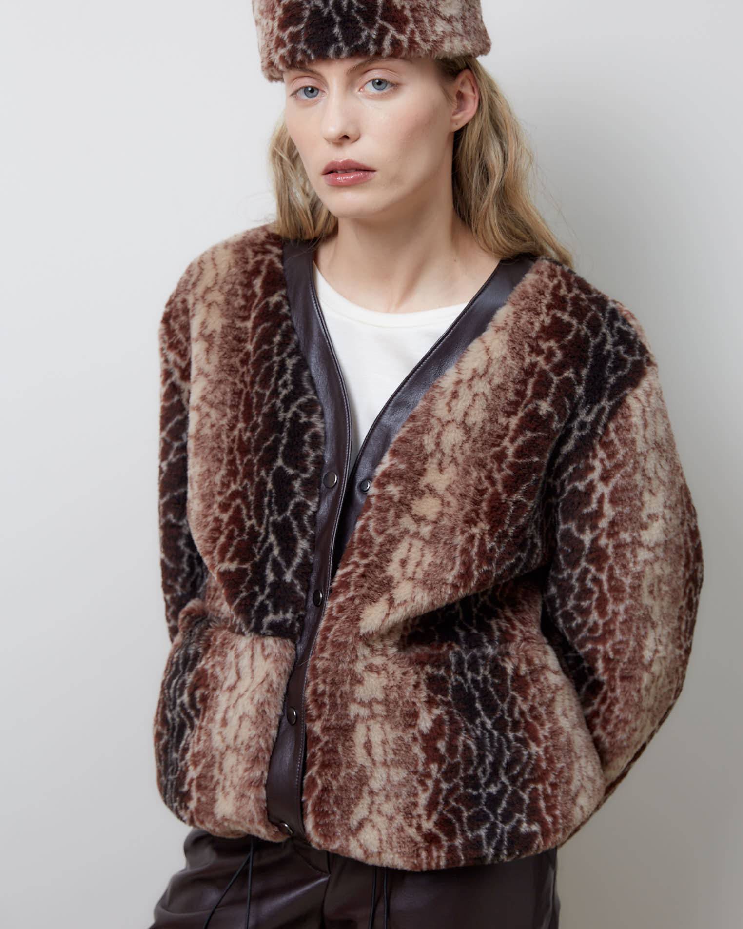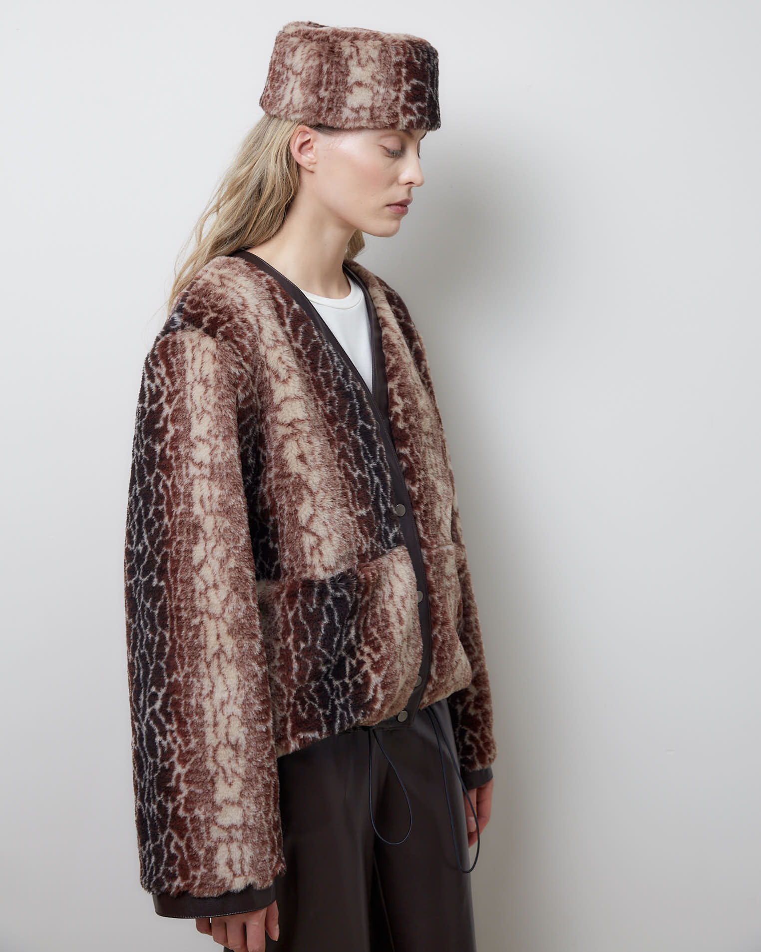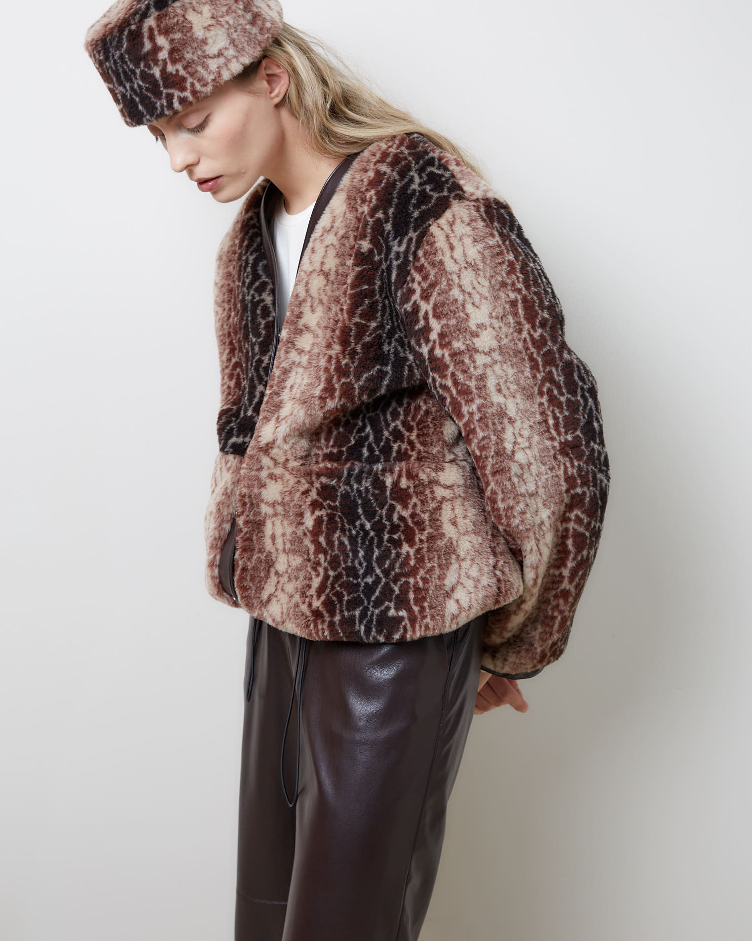 Особенностью модели является то, что ее можно носить с двух сторон. С одной - мягкая и теплая натуральная шерсть от Стеллы Маккартни для комфорта и уюта, с другой - гладкая искусственная кожа для современного, минималистичного образа.
