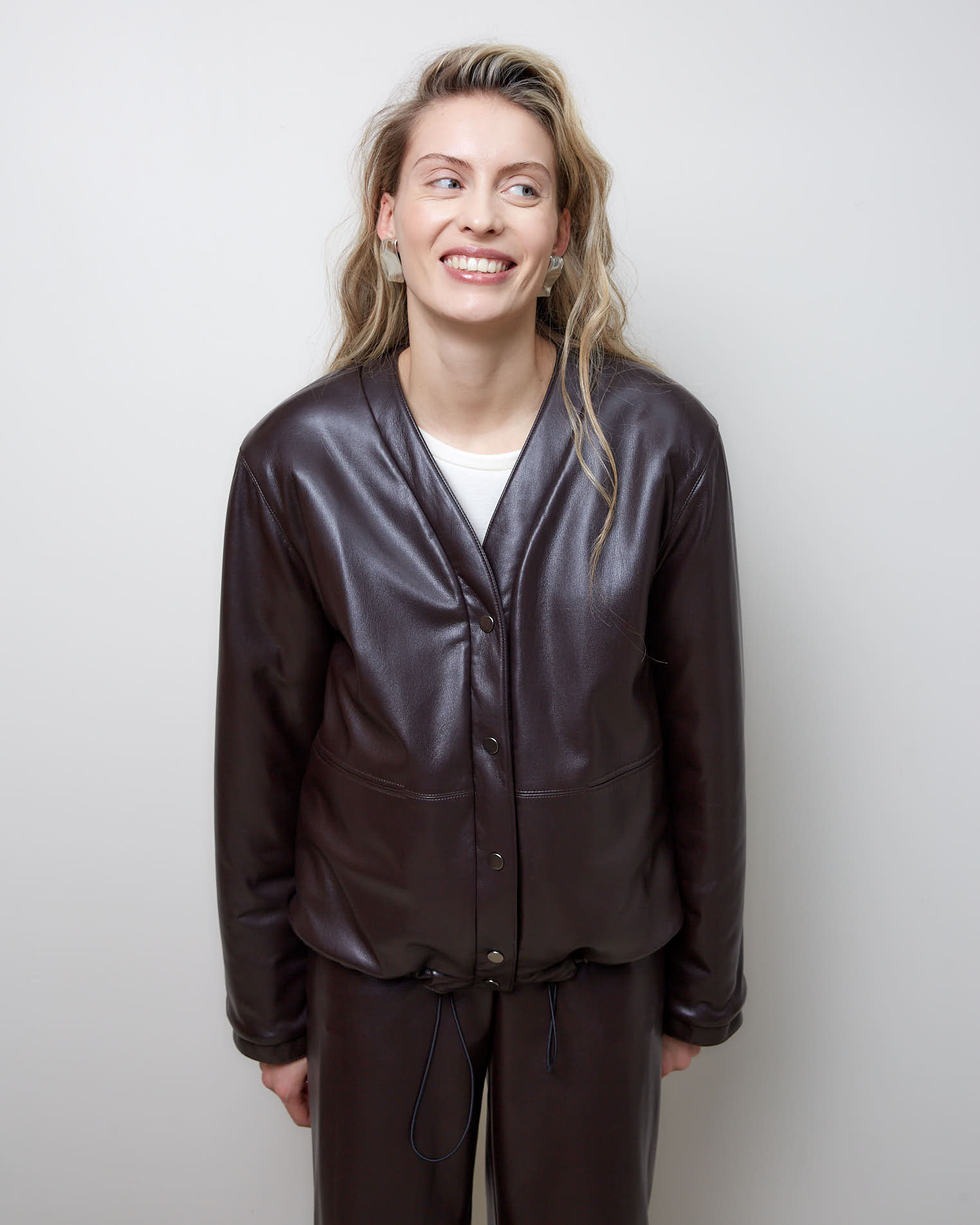 Куртка двухсторонняя из шерсти от Стеллы Маккартни и искусственной кожи в цвете шоколад