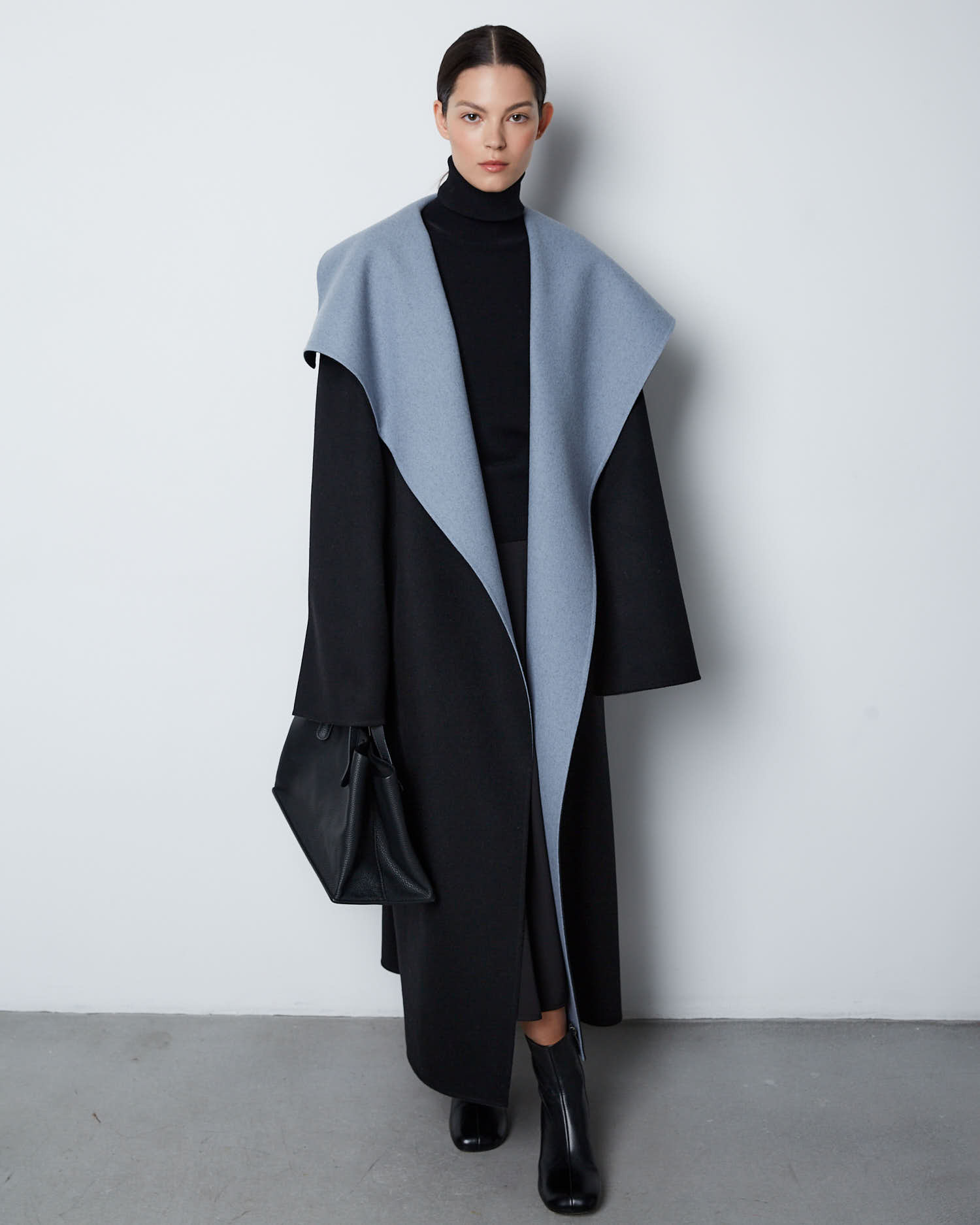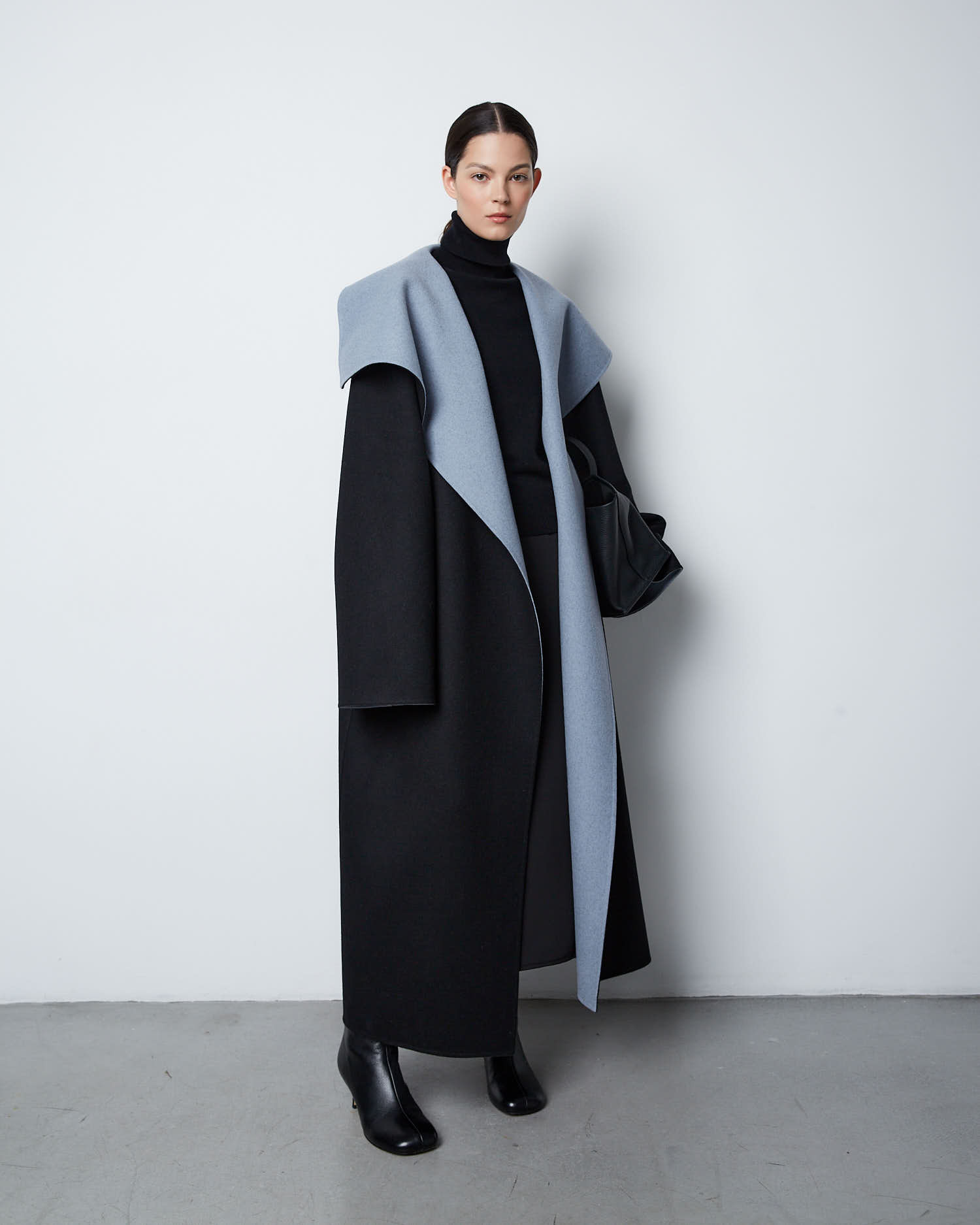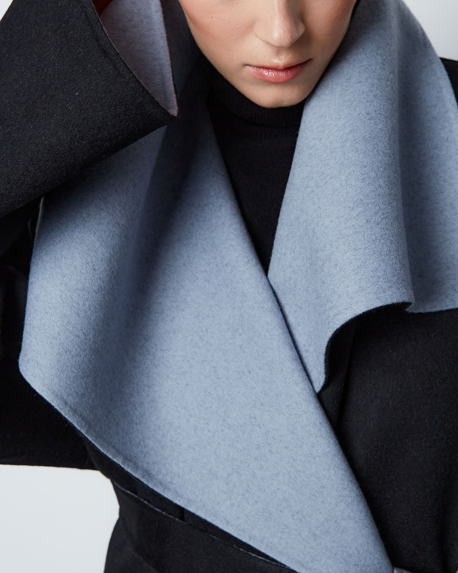 Особенностью модели послужит возможность носить пальто с обеих сторон.
