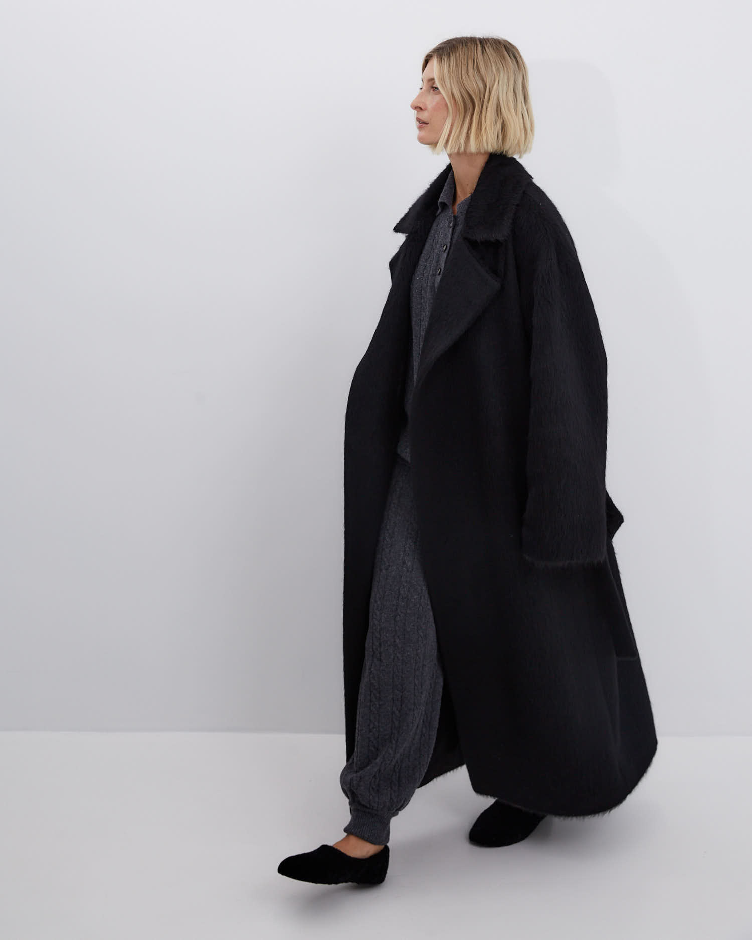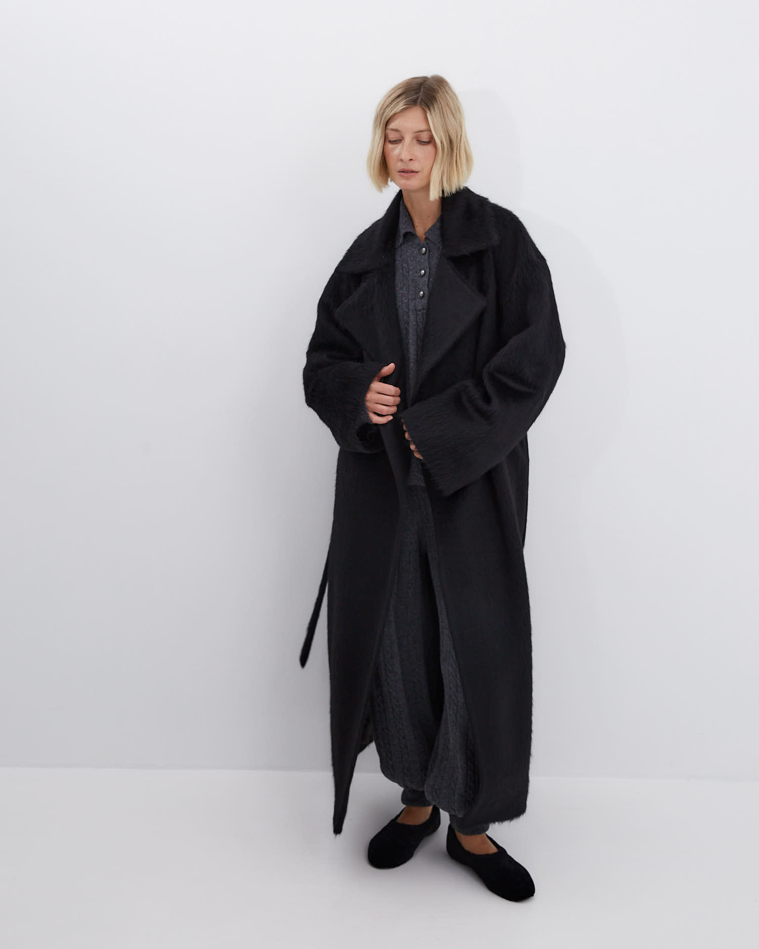 К выбору материала для пошива мы подошли с особой тщательностью и остановились на шерсти непревзойденного качества. Пальто не только согреет вас осенью, но и станет самым любимым и уютным приобретением этого сезона. Плотное переплетение фактурных шерстяных волокон помогает модели сохранять оптимальную температуру даже в холодную погоду.