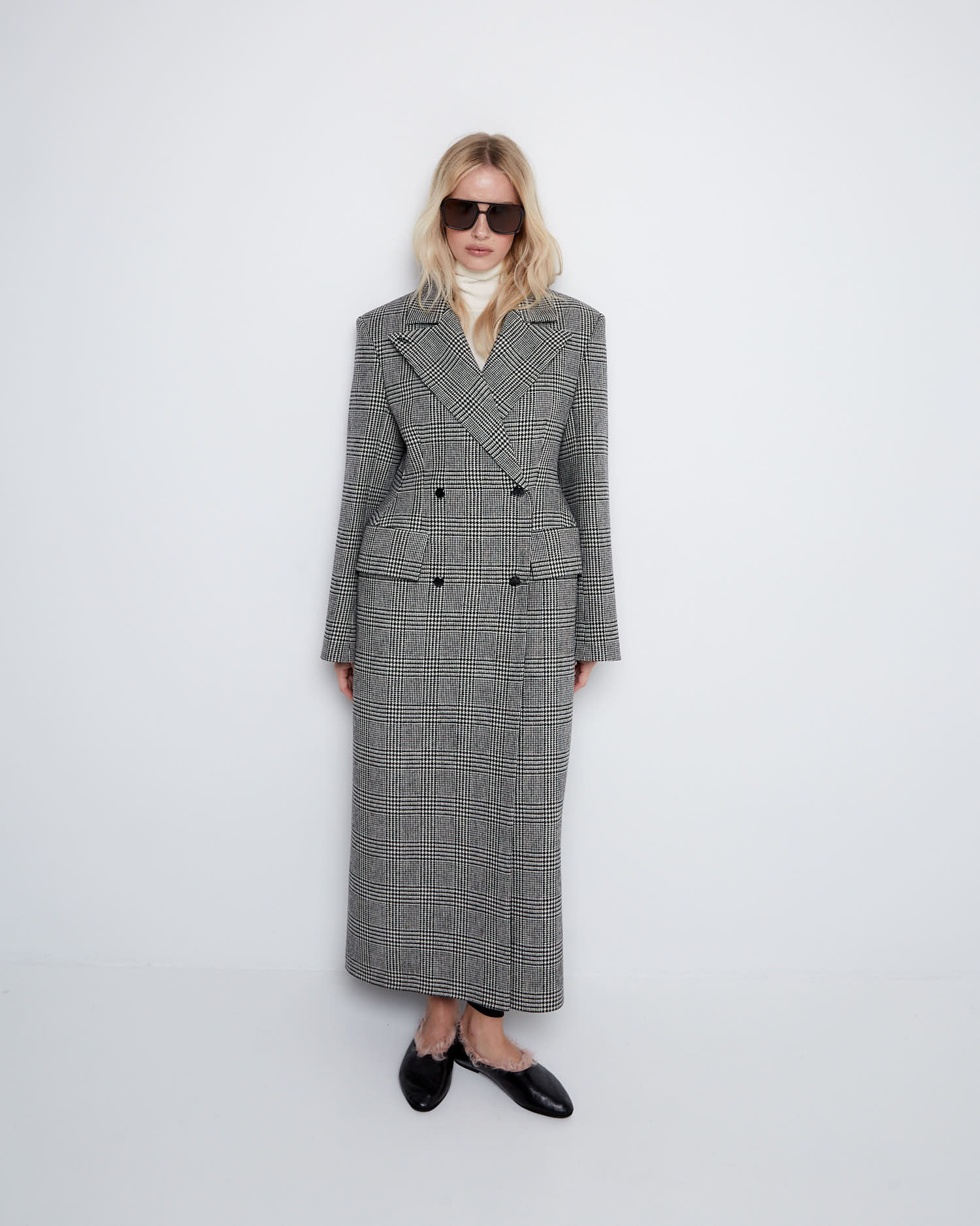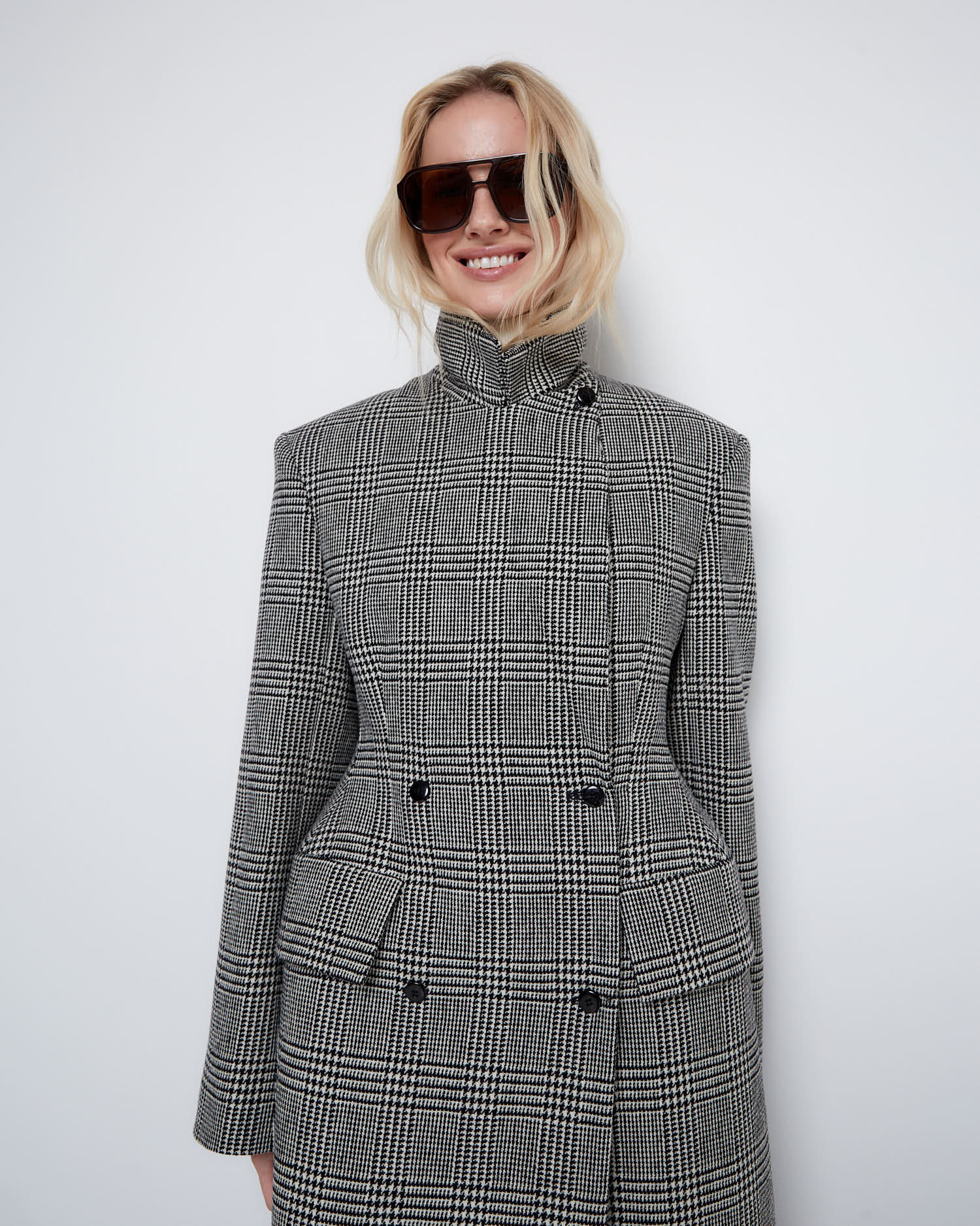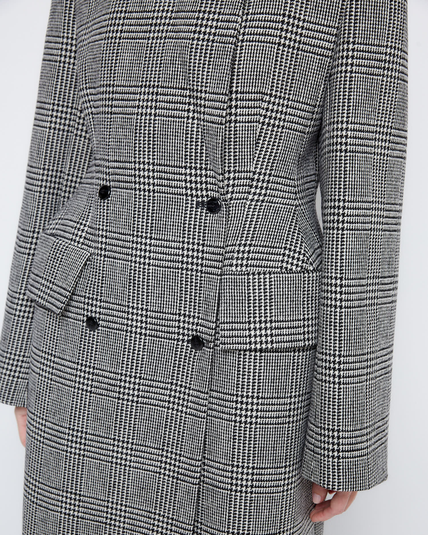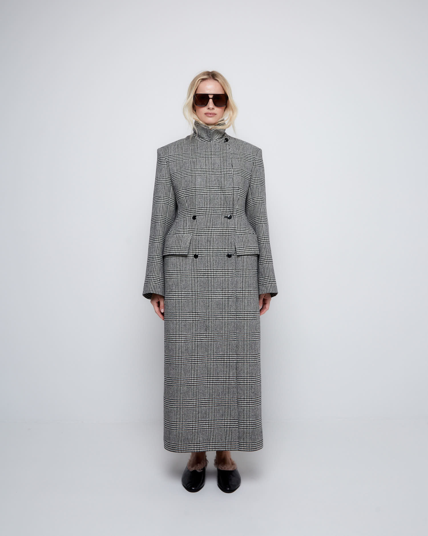 Пальто с формообразующими бедрами из шерсти от Диор в клетку
