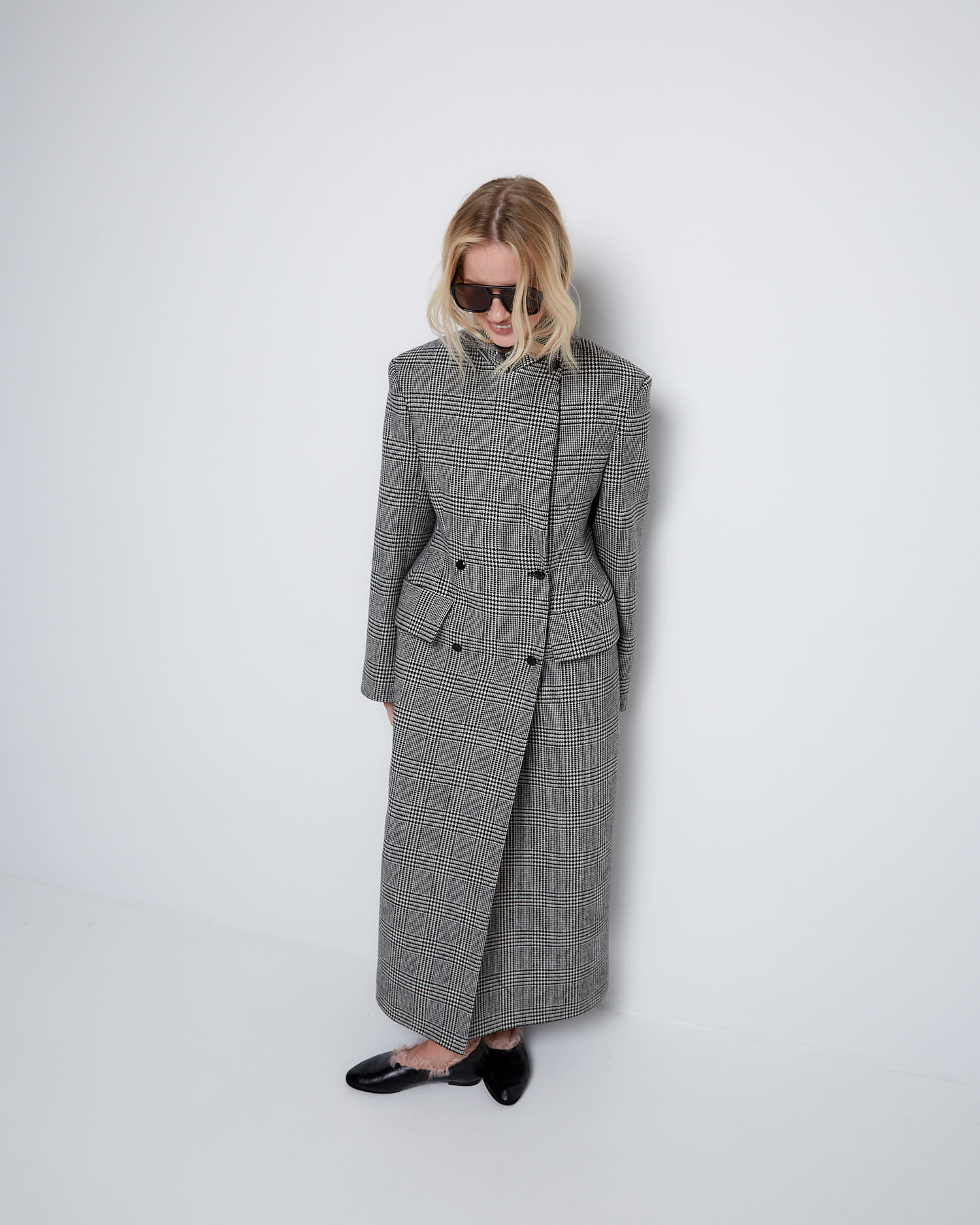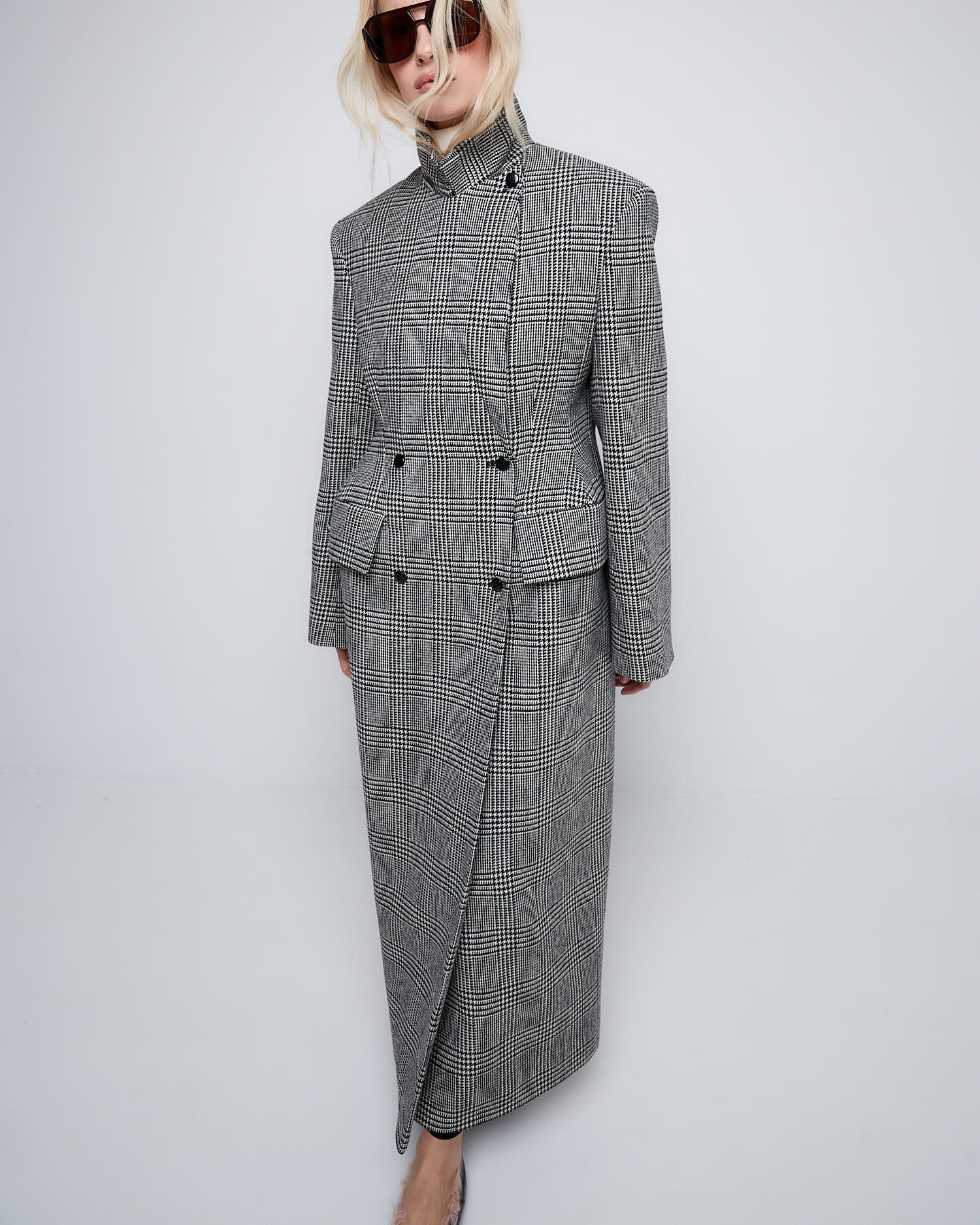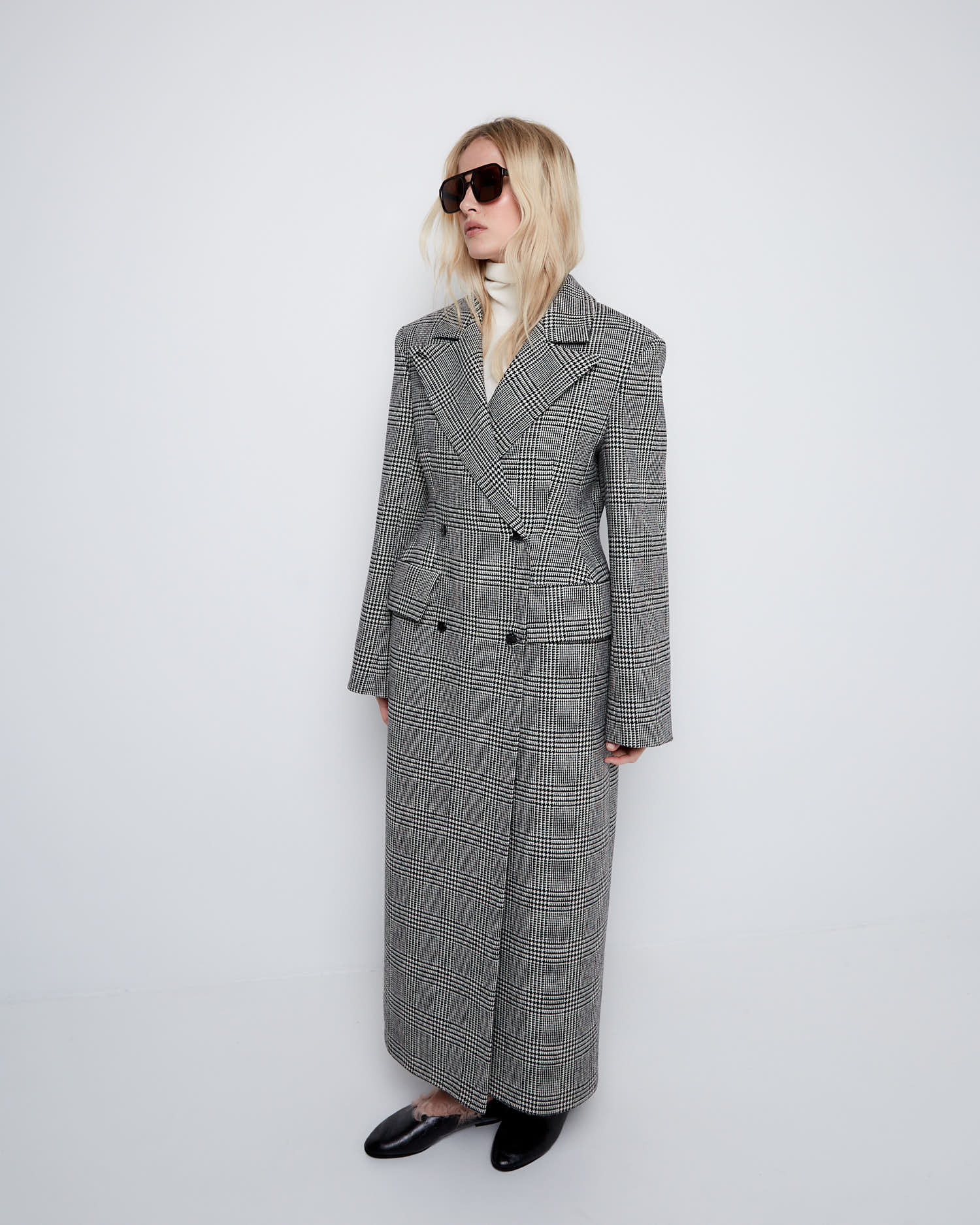 Пальто с формообразующими бедрами из шерсти от Диор в клетку