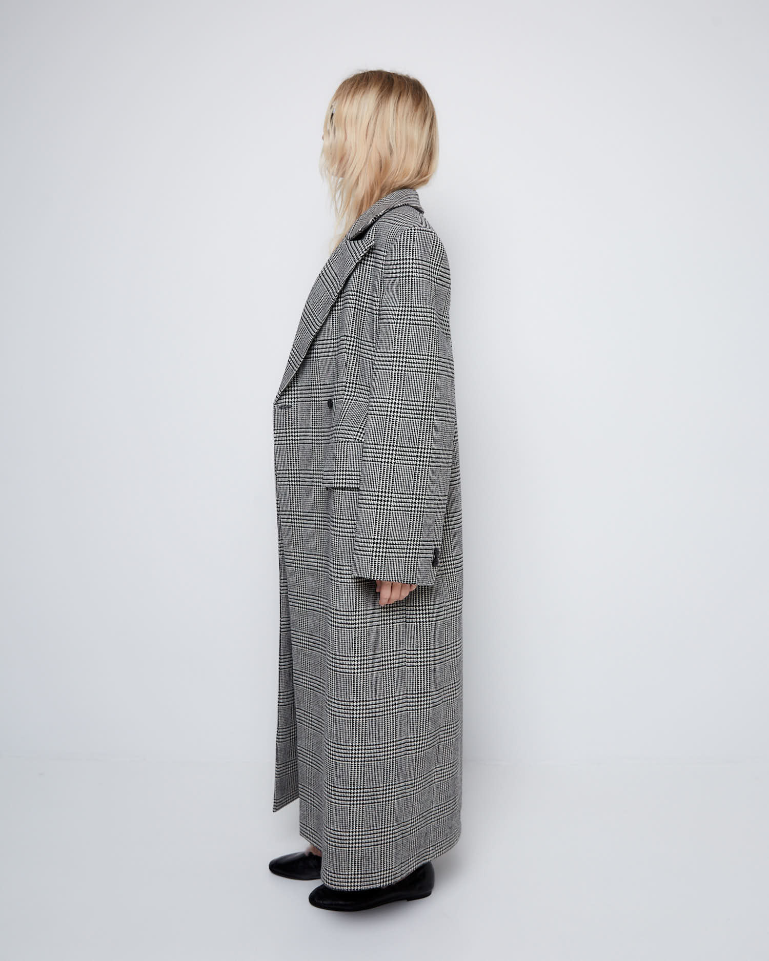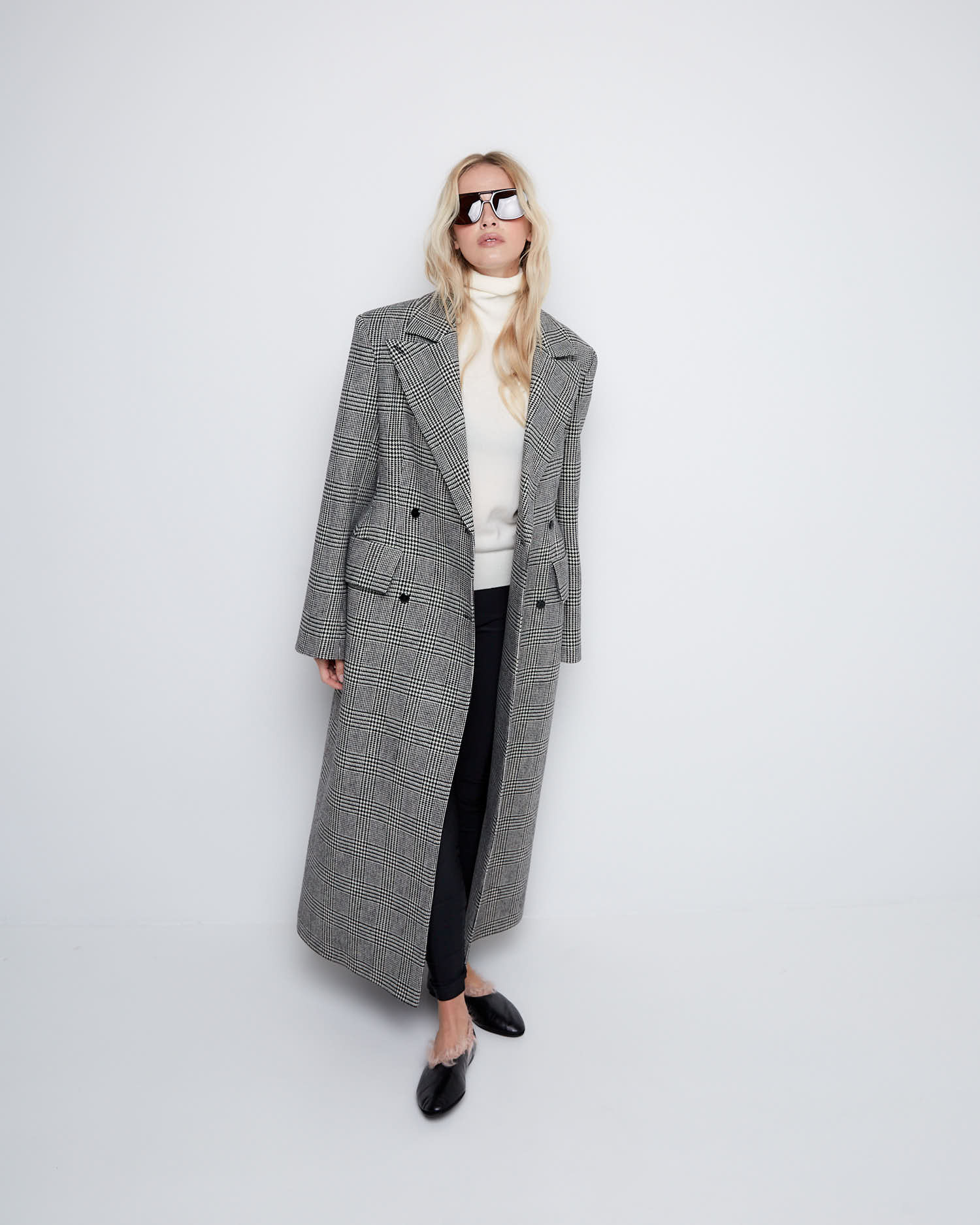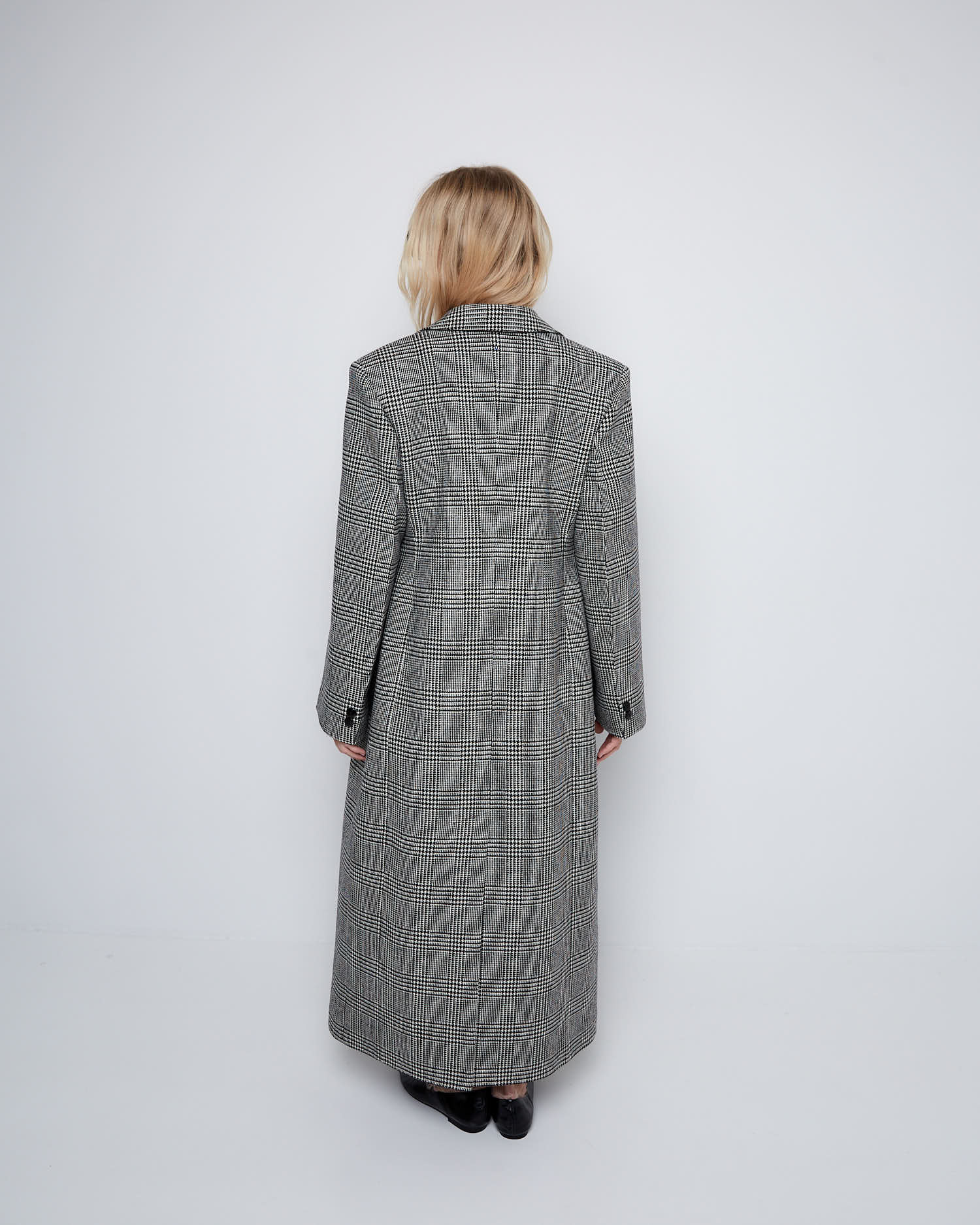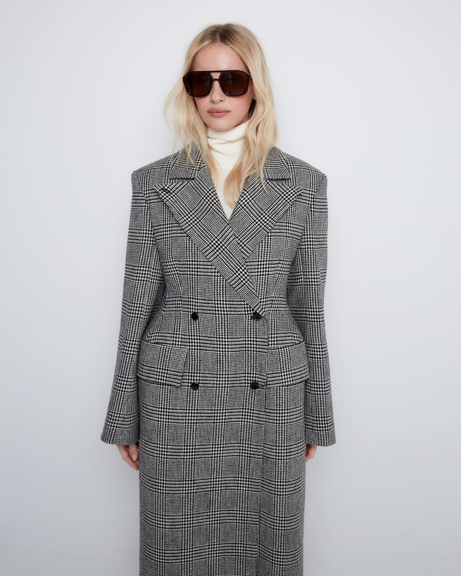 Пальто с формообразующими бедрами из шерсти от Диор в клетку