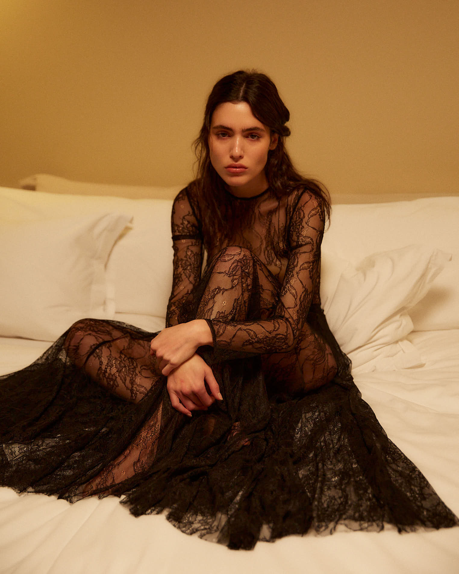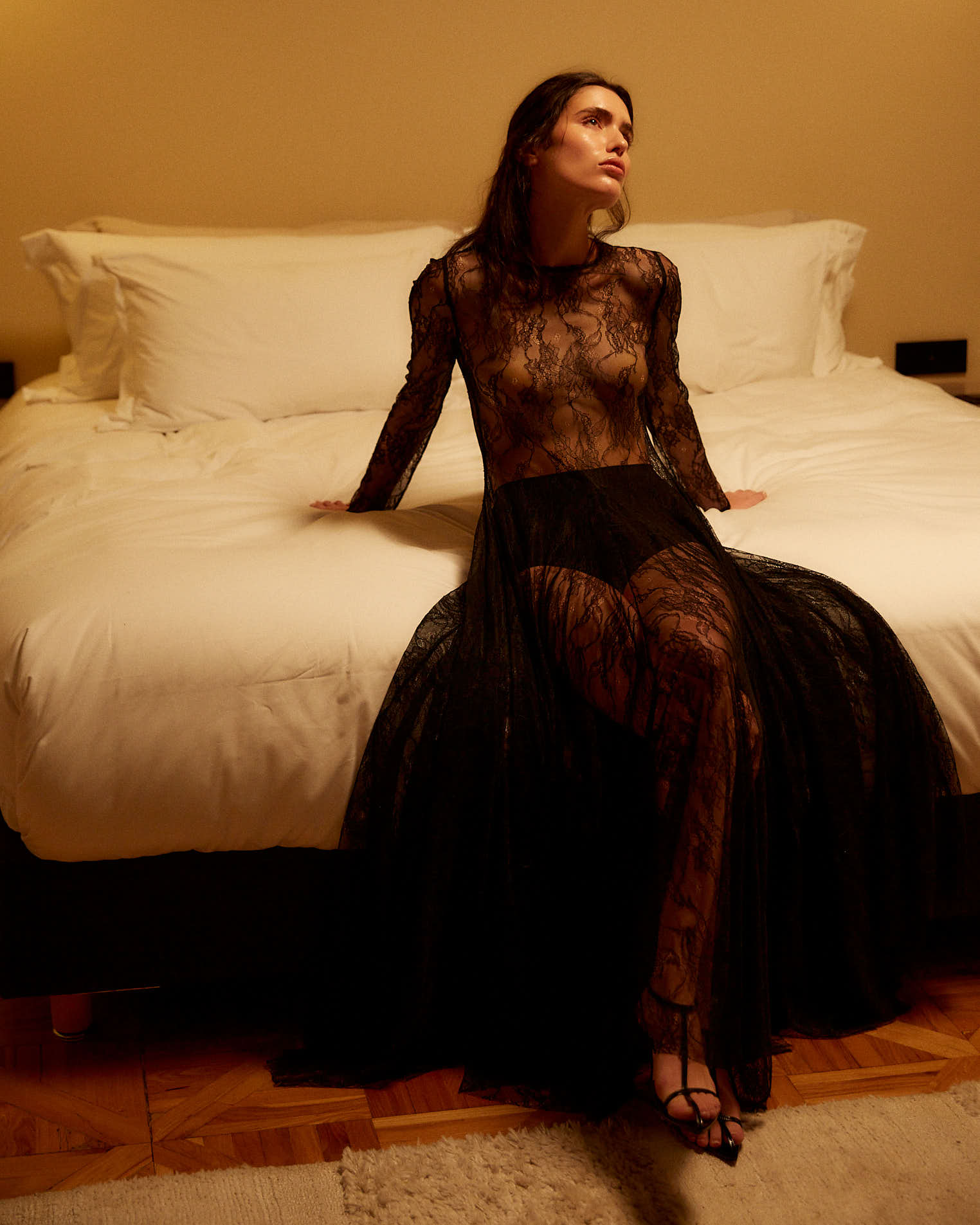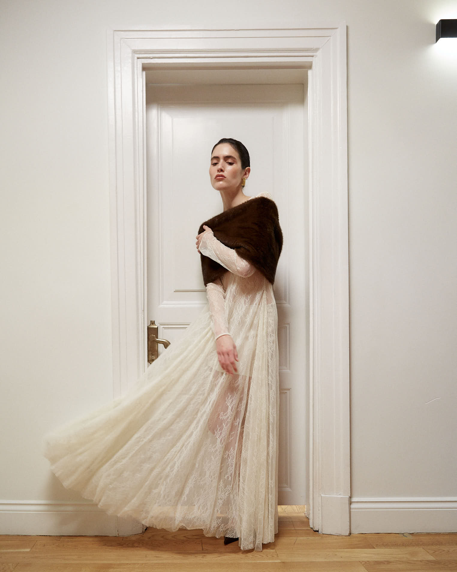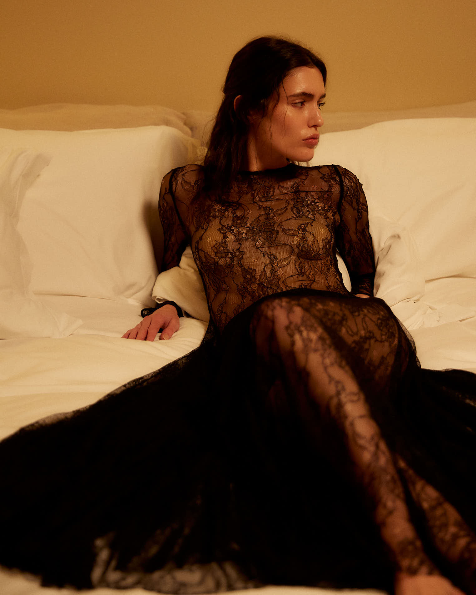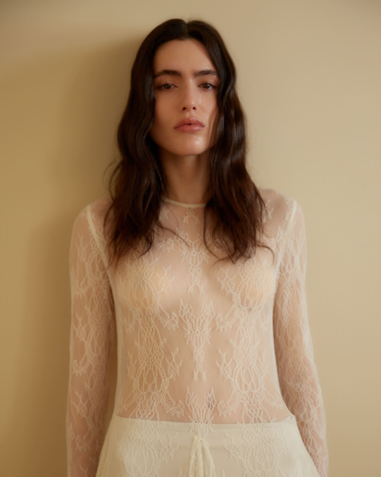 Платье макси из тонкого кружева в элегантном молочном оттенке