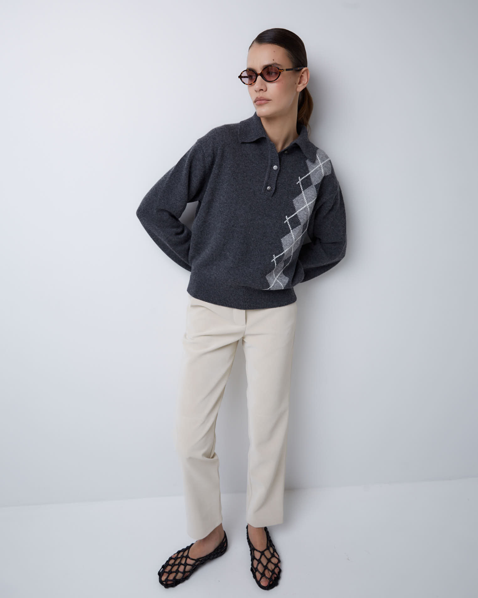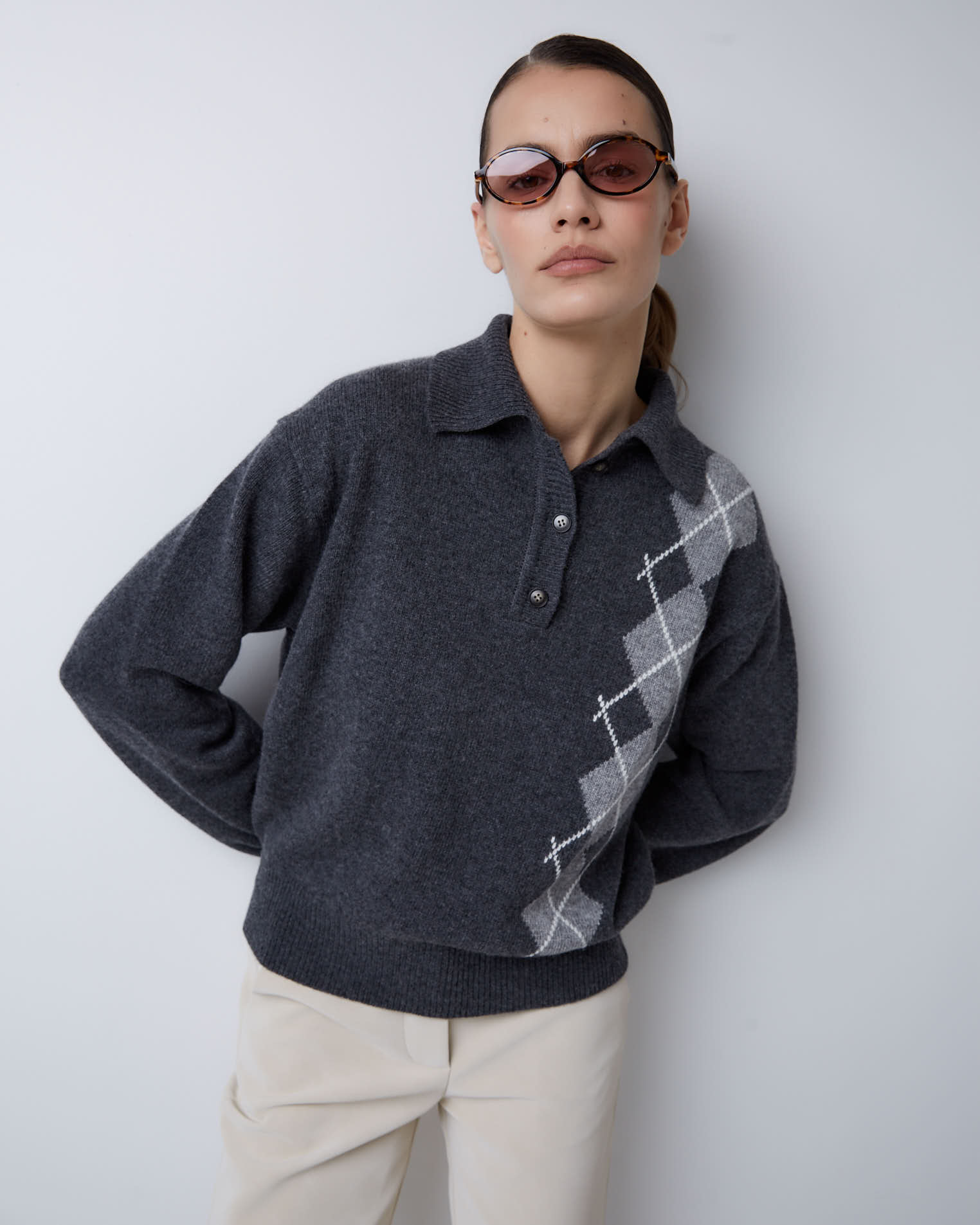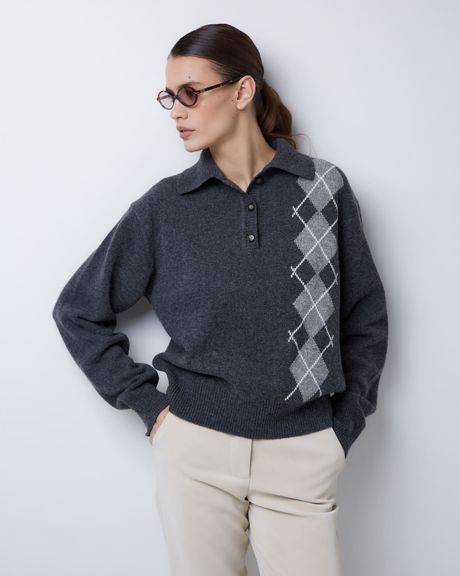 Поло из смесового кашемира ромбы в темно-сером цвете