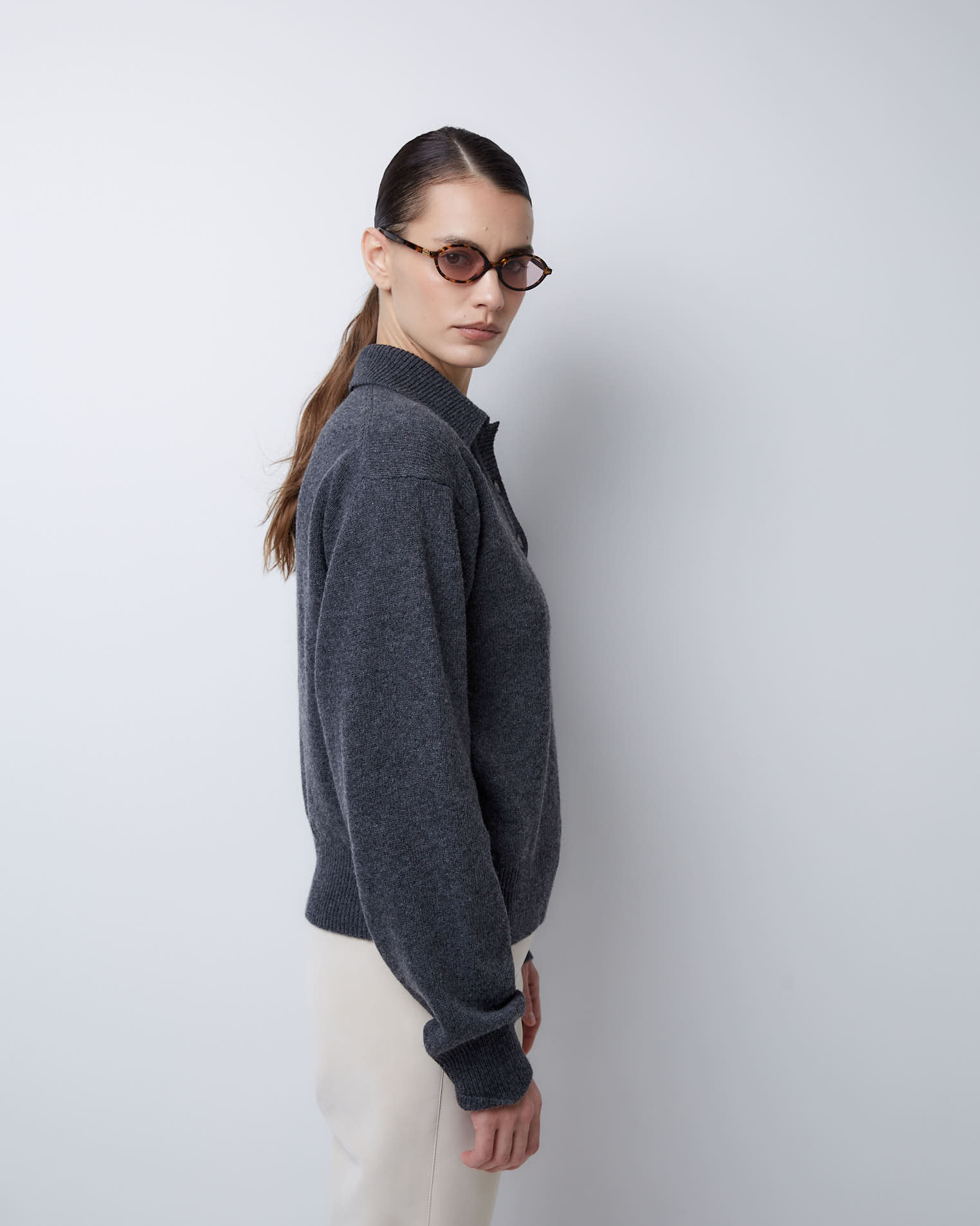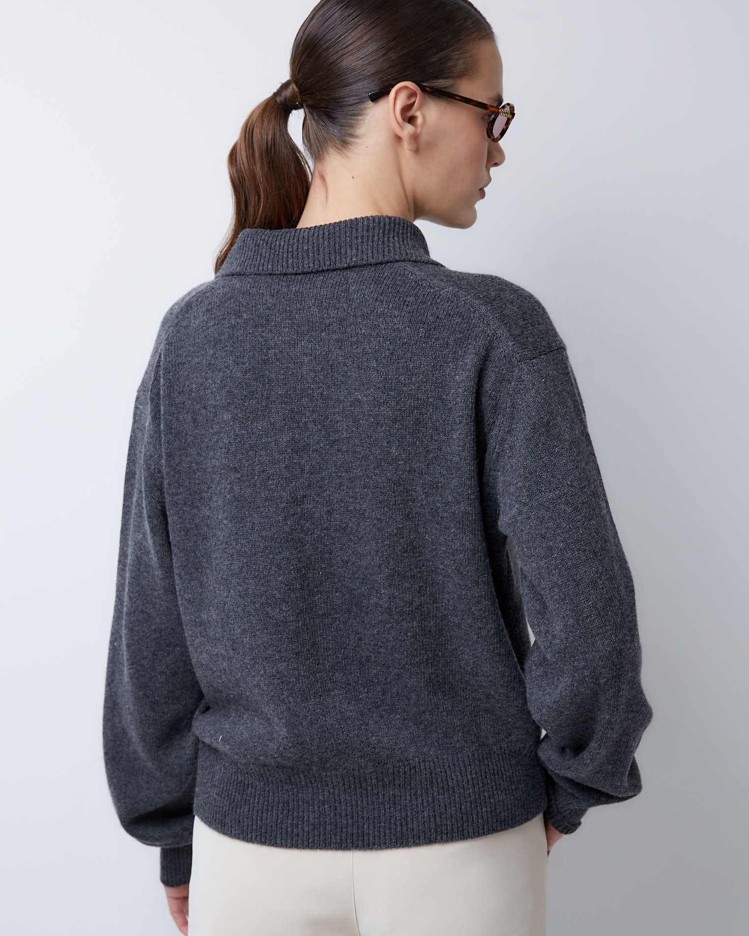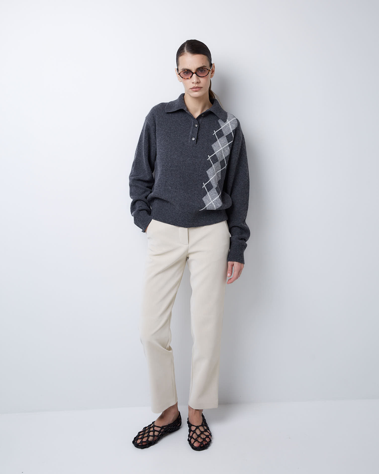 Поло из смесового кашемира ромбы в темно-сером цвете