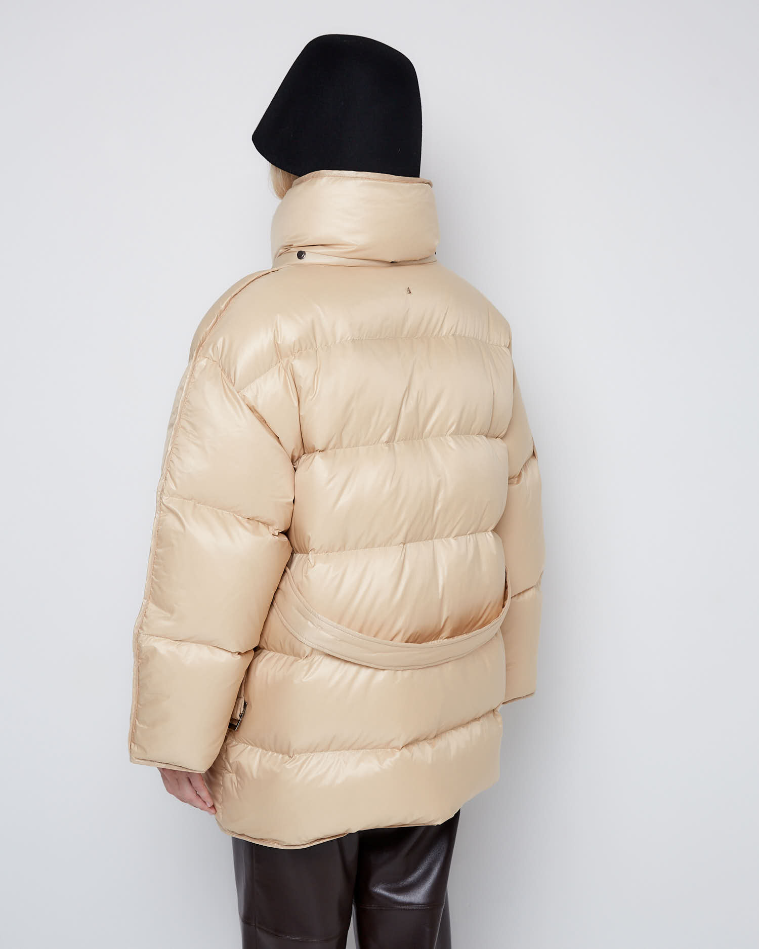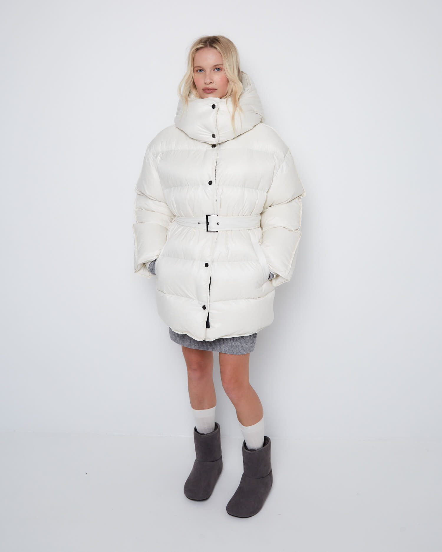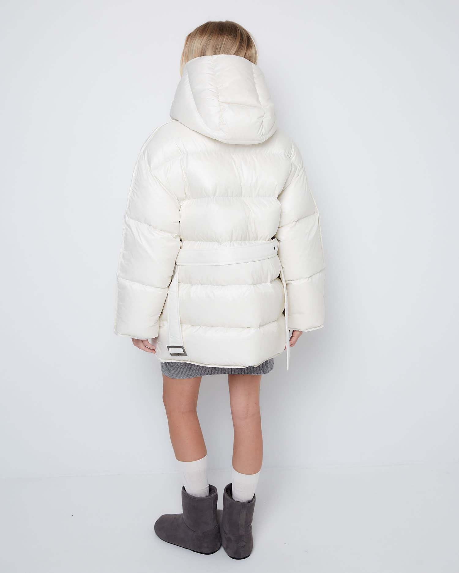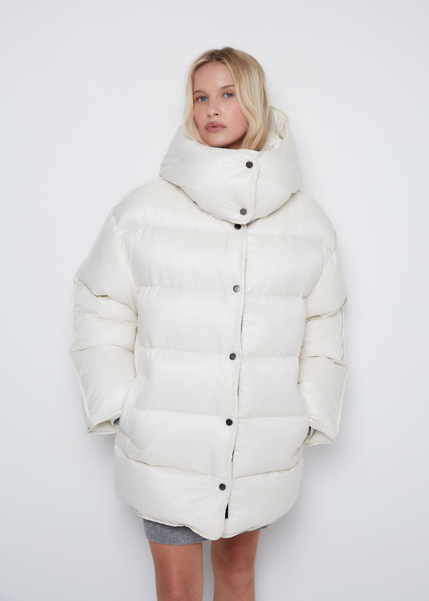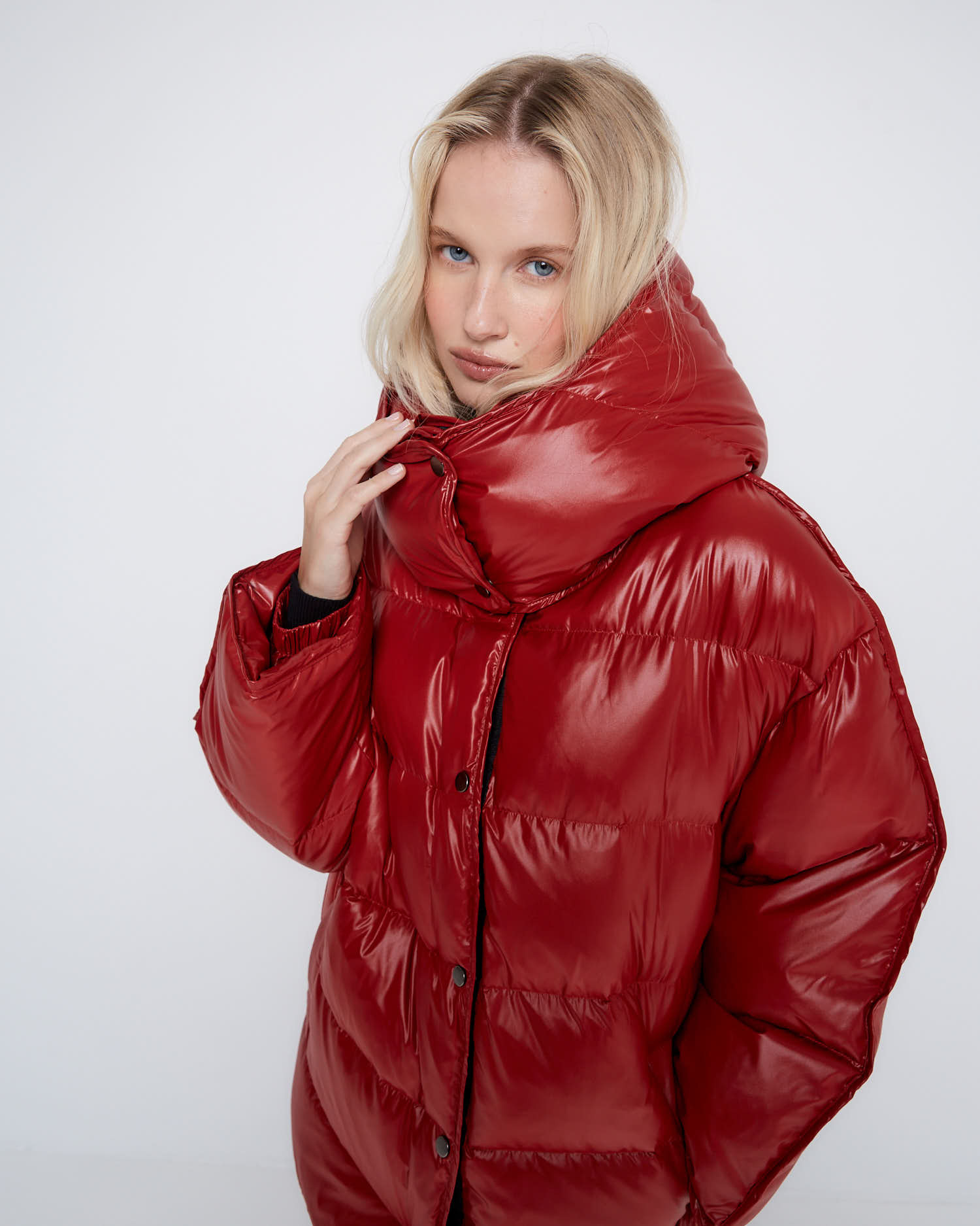 Наши пуховики выполнены из премиальных пуховых пакетов, в состав которого входит натуральный гусиный пух. Объёмный воротник полностью закрывает шею и спасает от ветра.