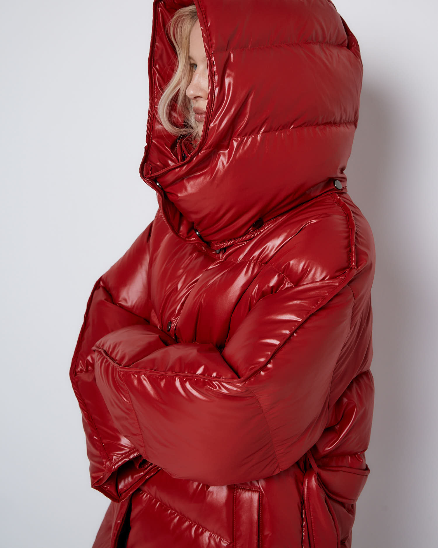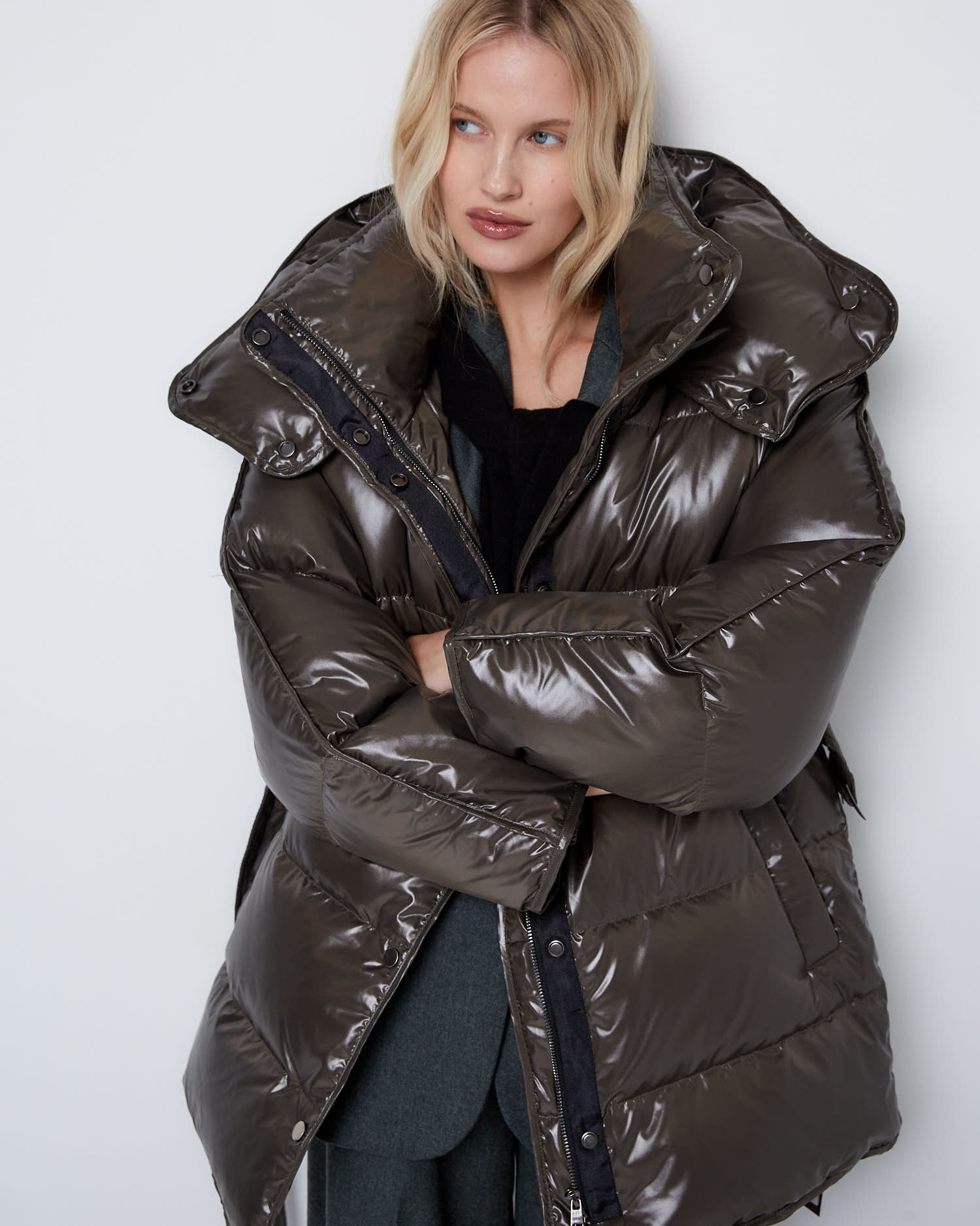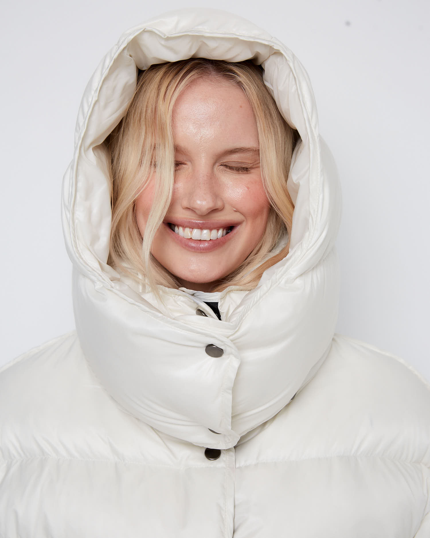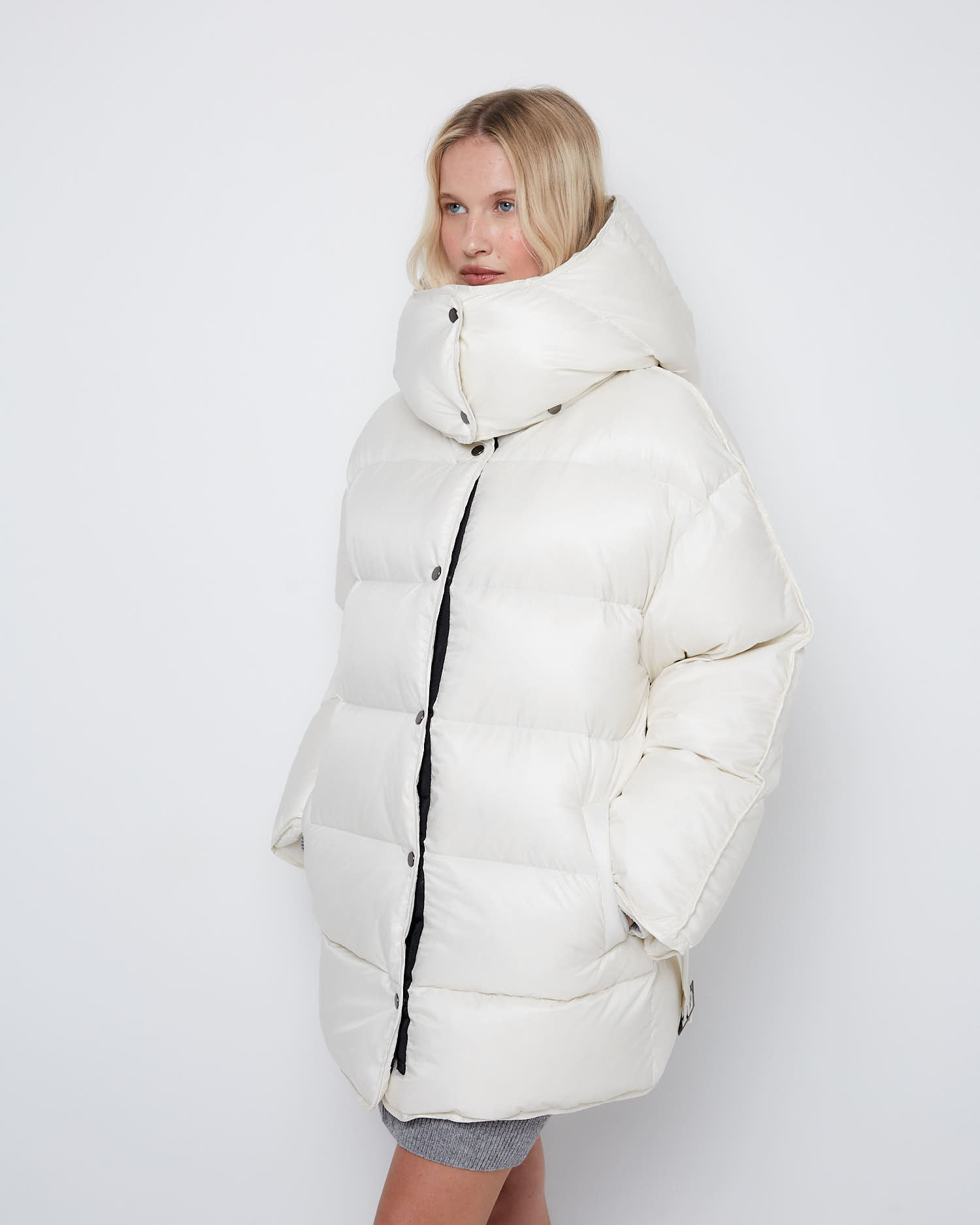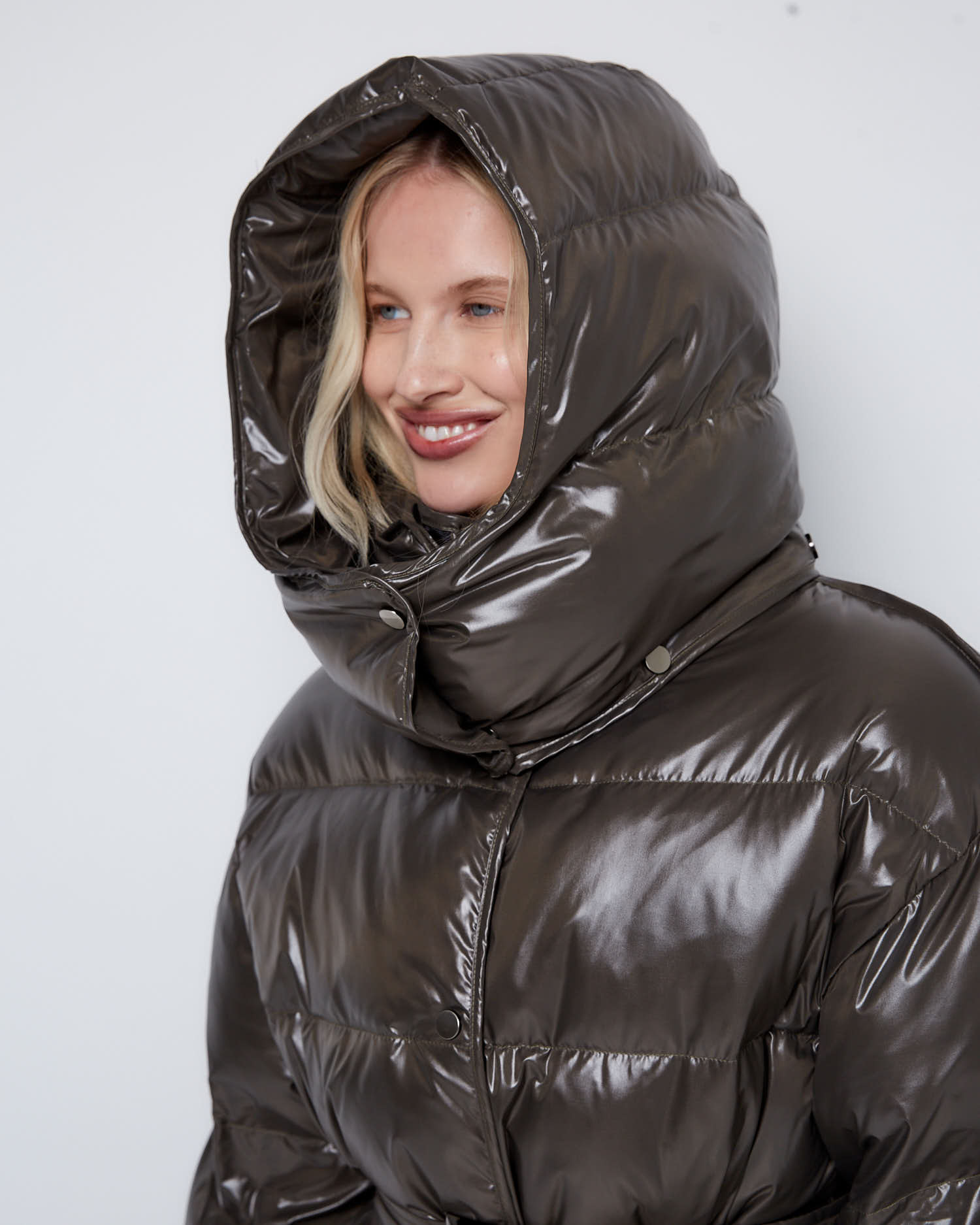 Наши пуховики выполнены из премиальных пуховых пакетов, в состав которого входит натуральный гусиный пух. Объёмный воротник полностью закрывает шею и спасает от ветра.