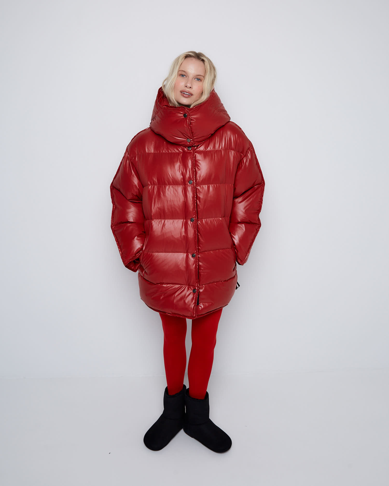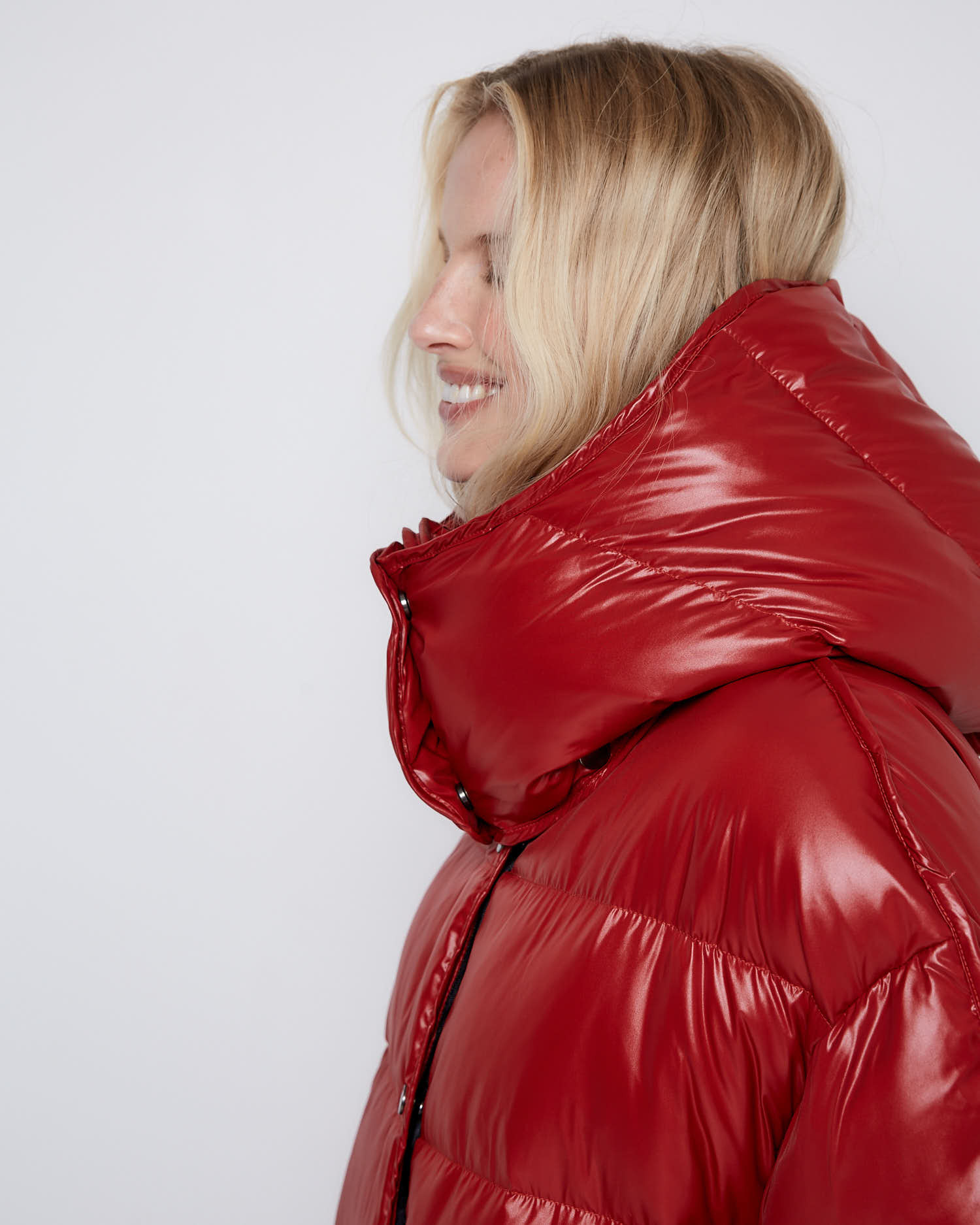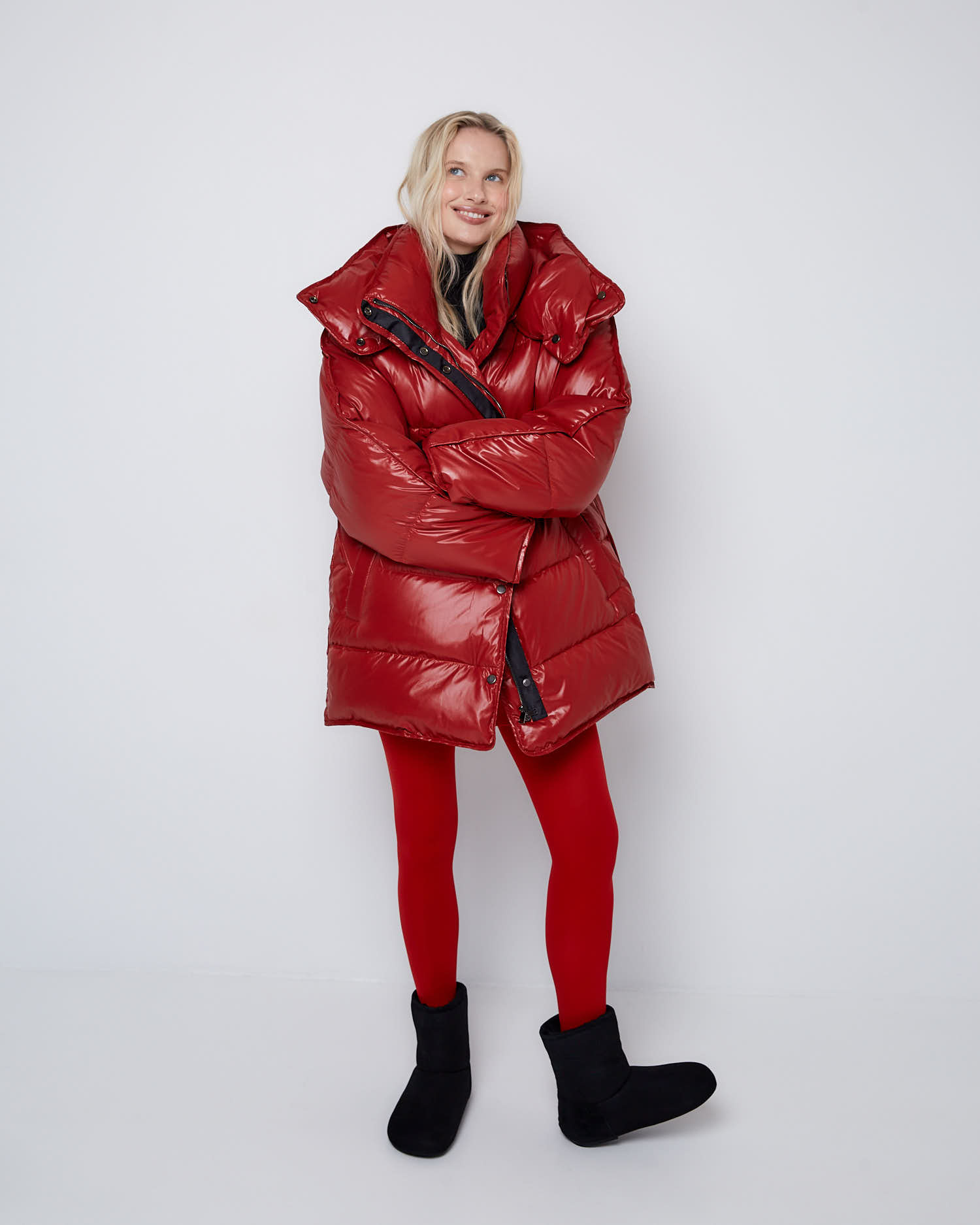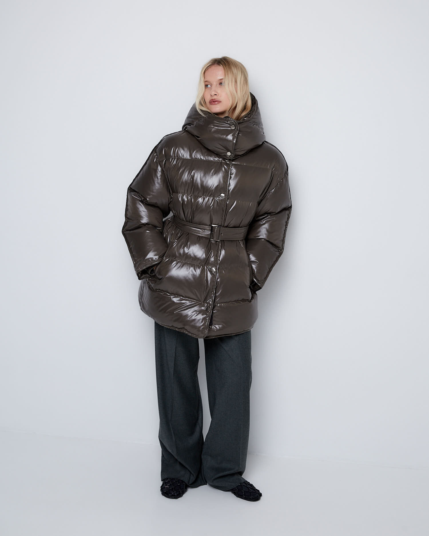 Наши пуховики выполнены из премиальных пуховых пакетов, в состав которого входит натуральный гусиный пух. Объёмный воротник полностью закрывает шею и спасает от ветра.