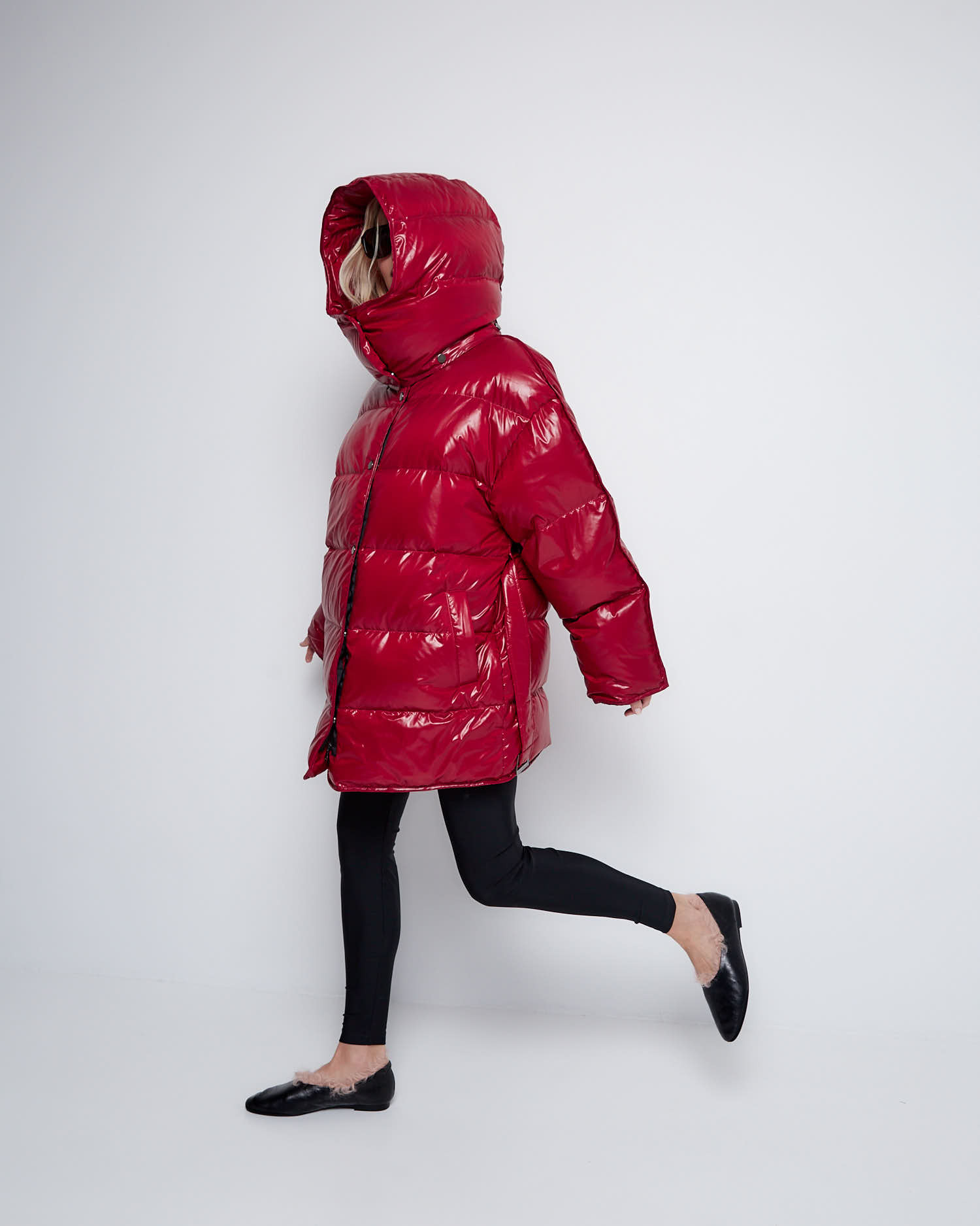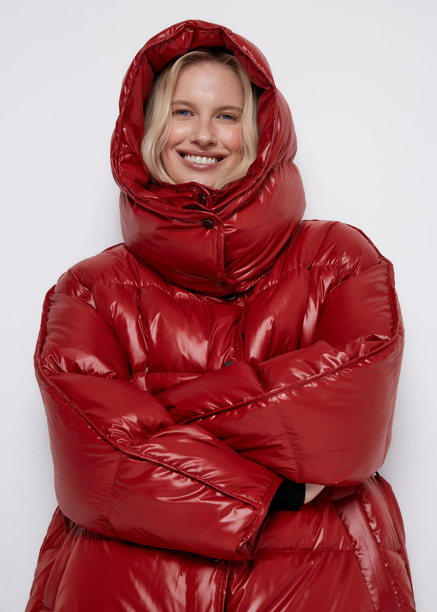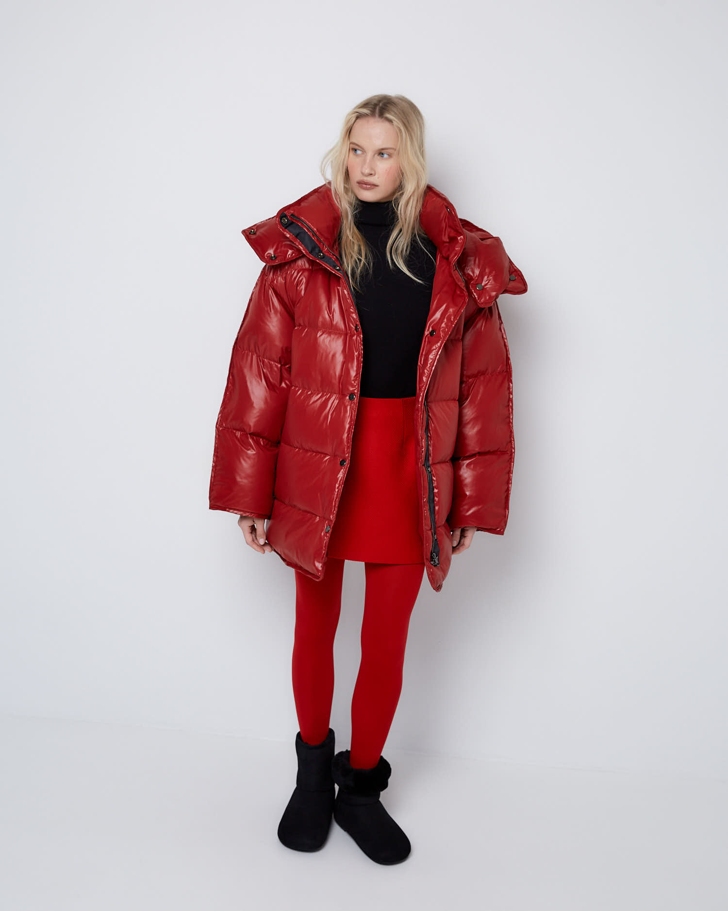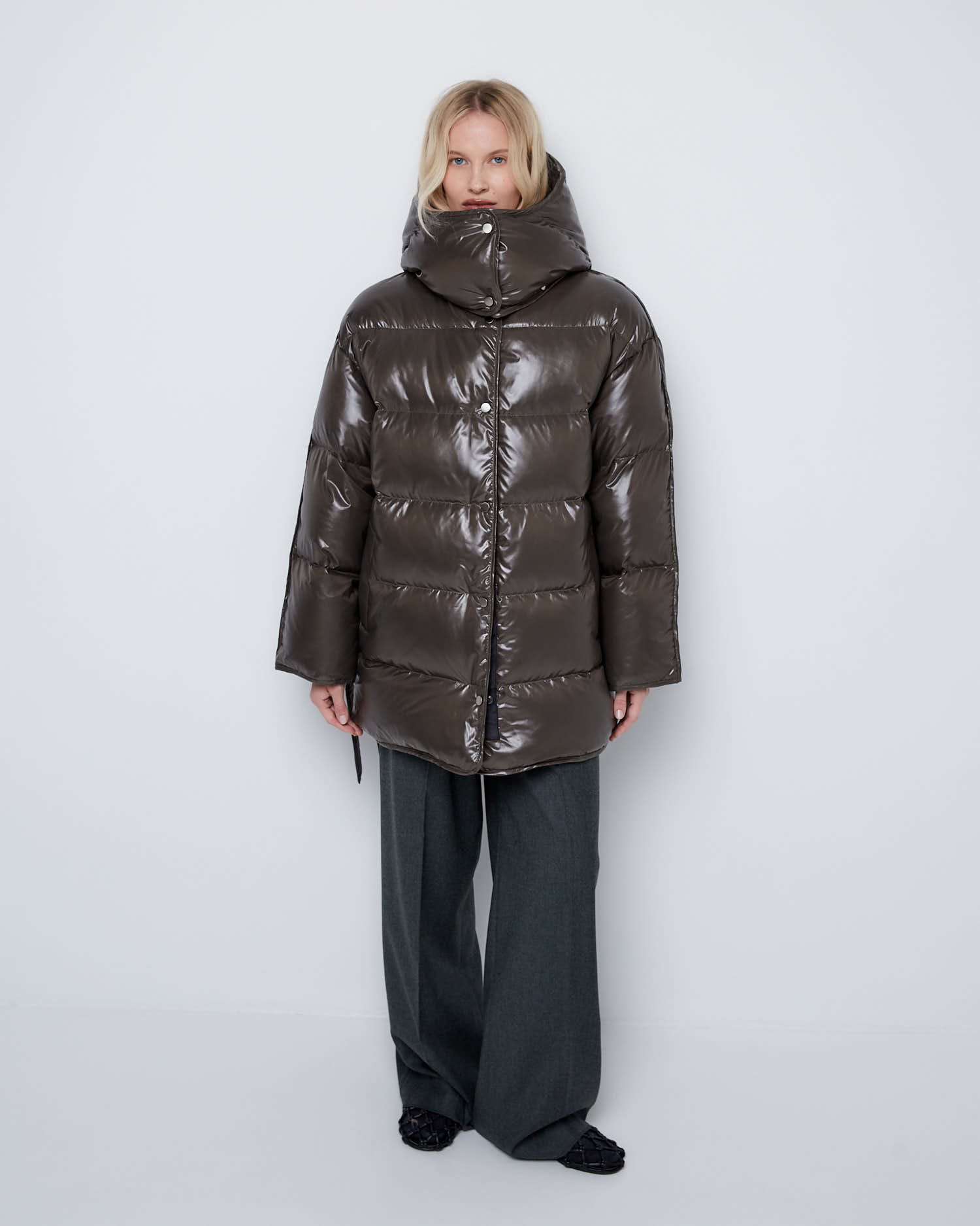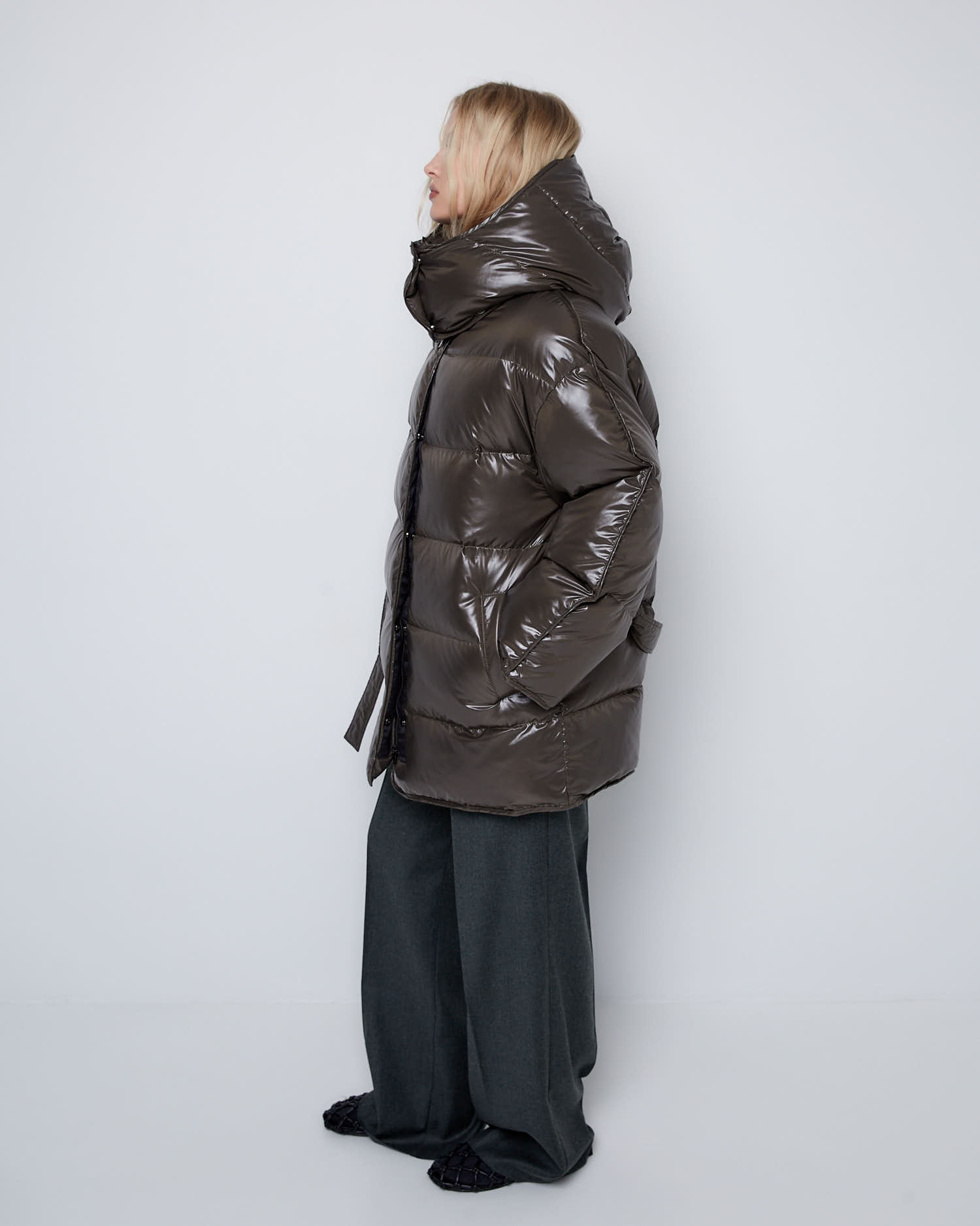 Наши пуховики выполнены из премиальных пуховых пакетов, в состав которого входит натуральный гусиный пух. Объёмный воротник полностью закрывает шею и спасает от ветра.