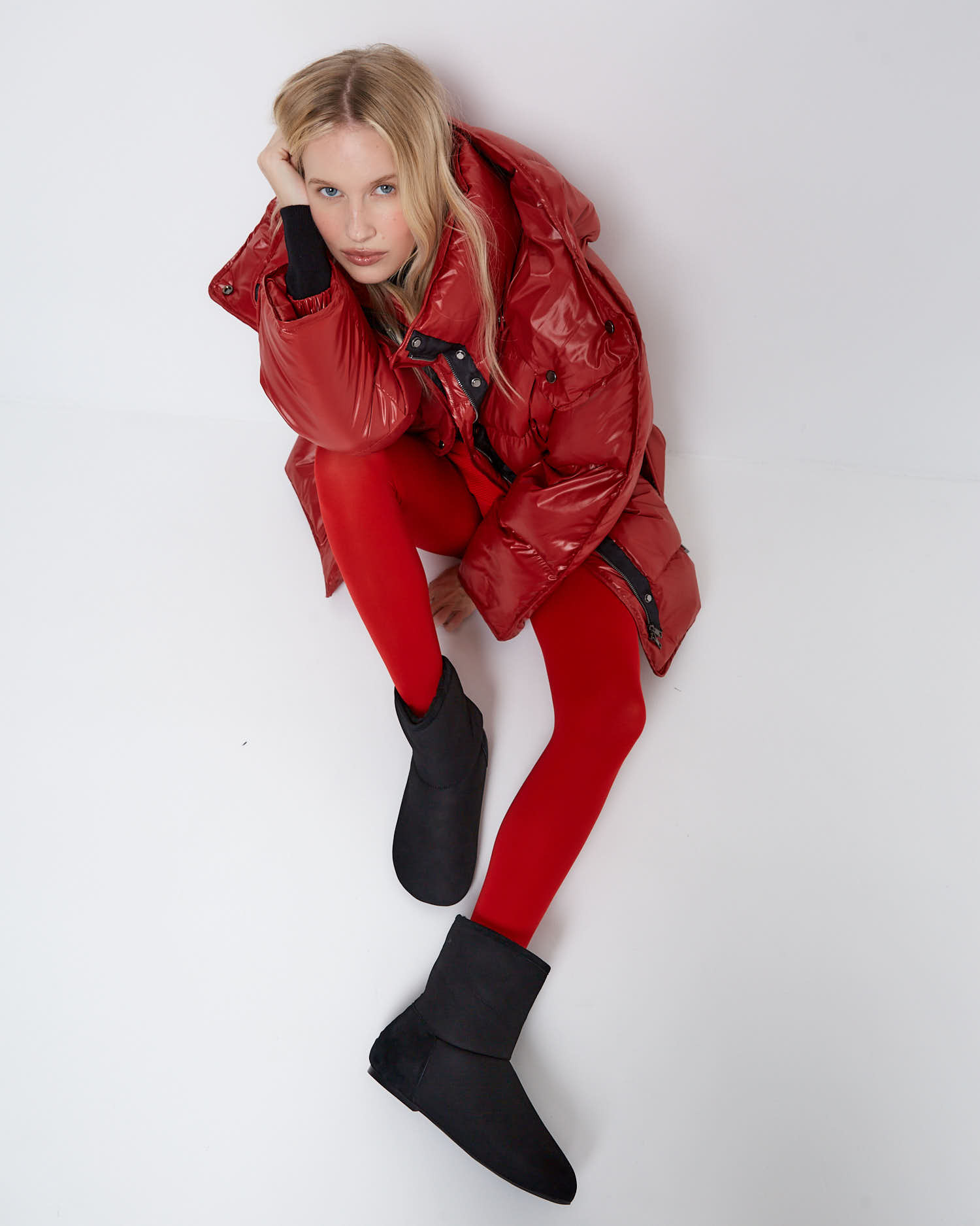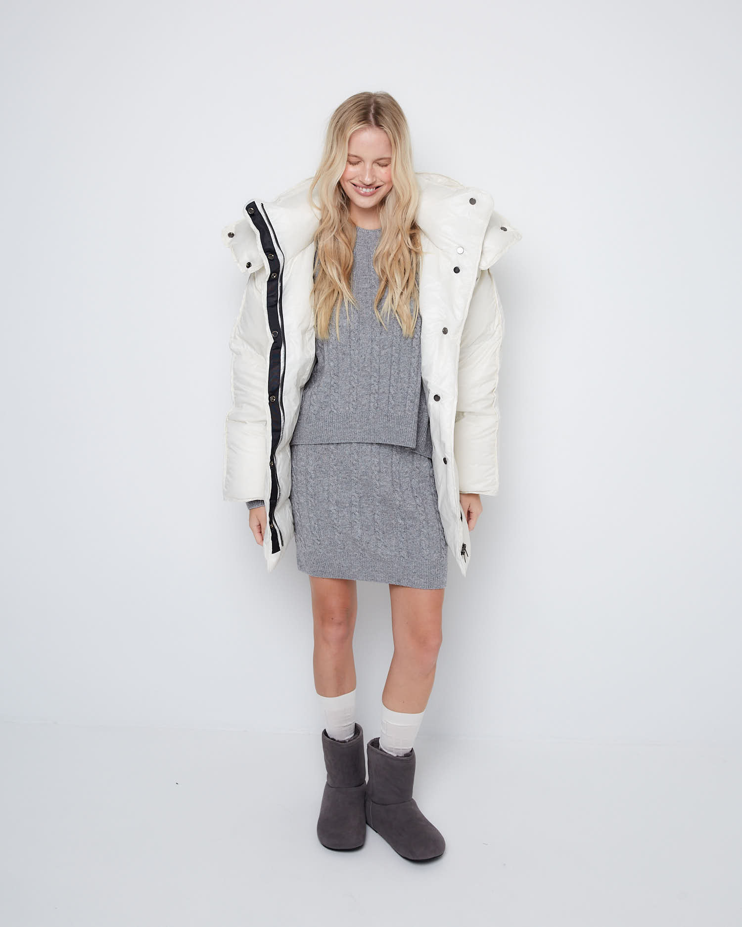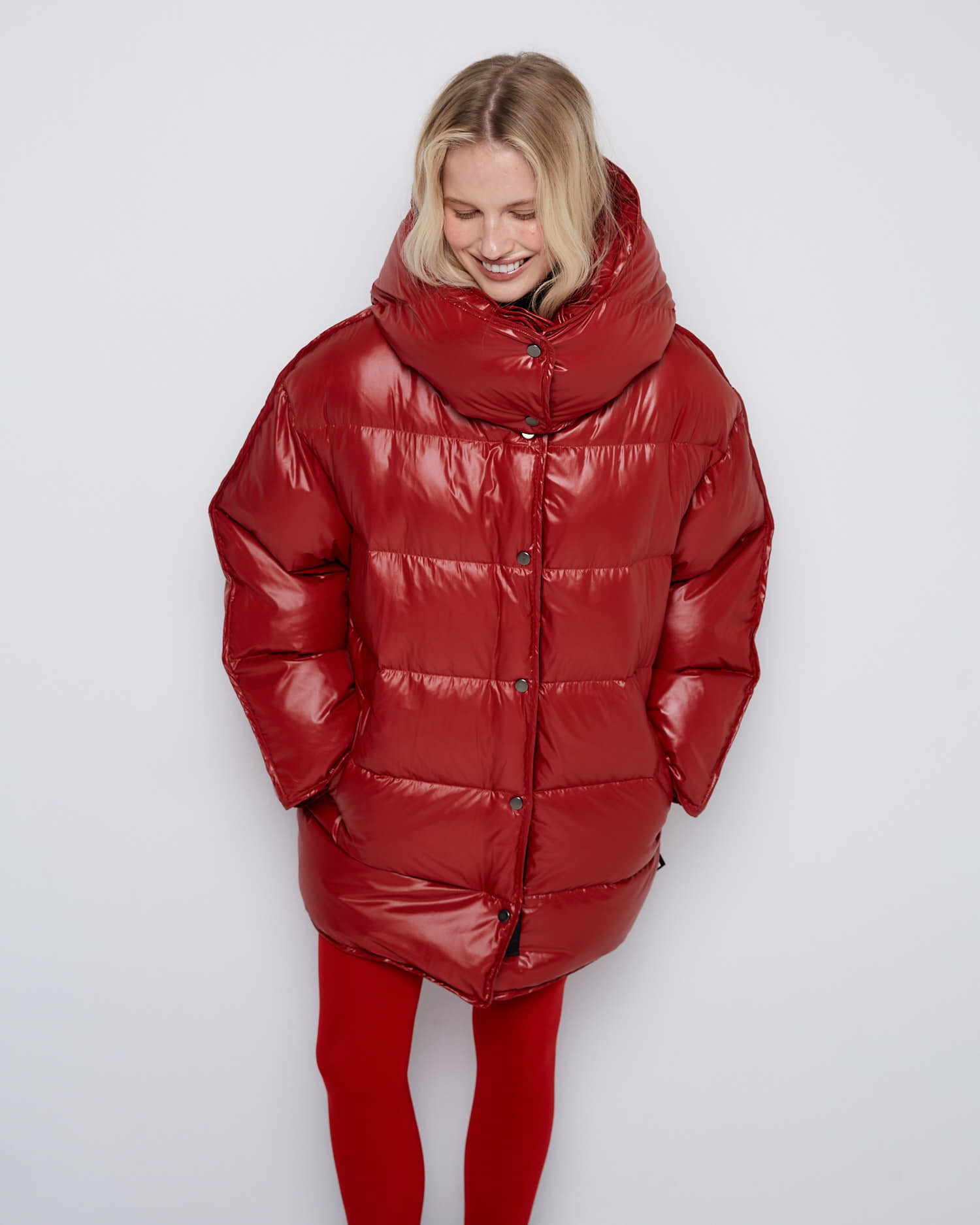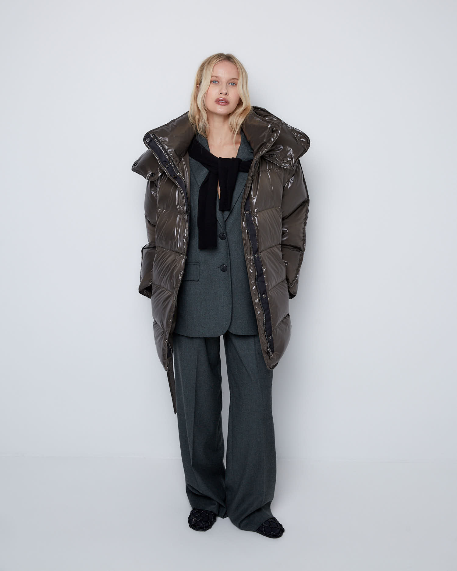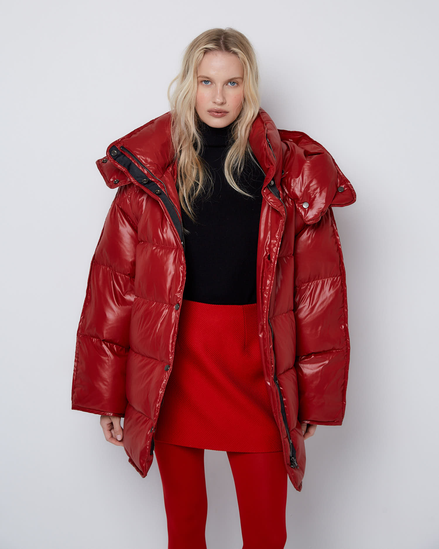 Наши пуховики выполнены из премиальных пуховых пакетов, в состав которого входит натуральный гусиный пух. Объёмный воротник полностью закрывает шею и спасает от ветра.