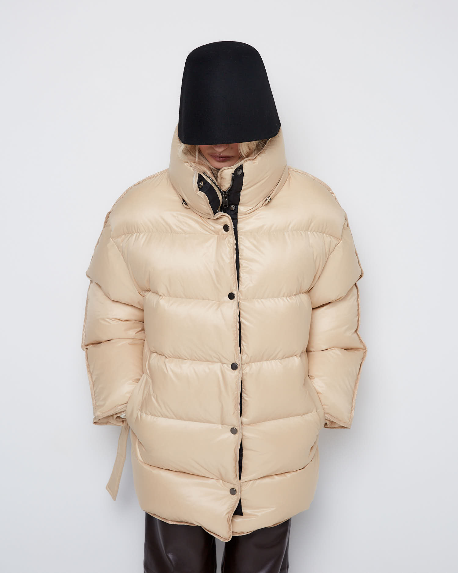 Пуховик со съемным капюшоном из нейлона от Монклер в бежевом цвете