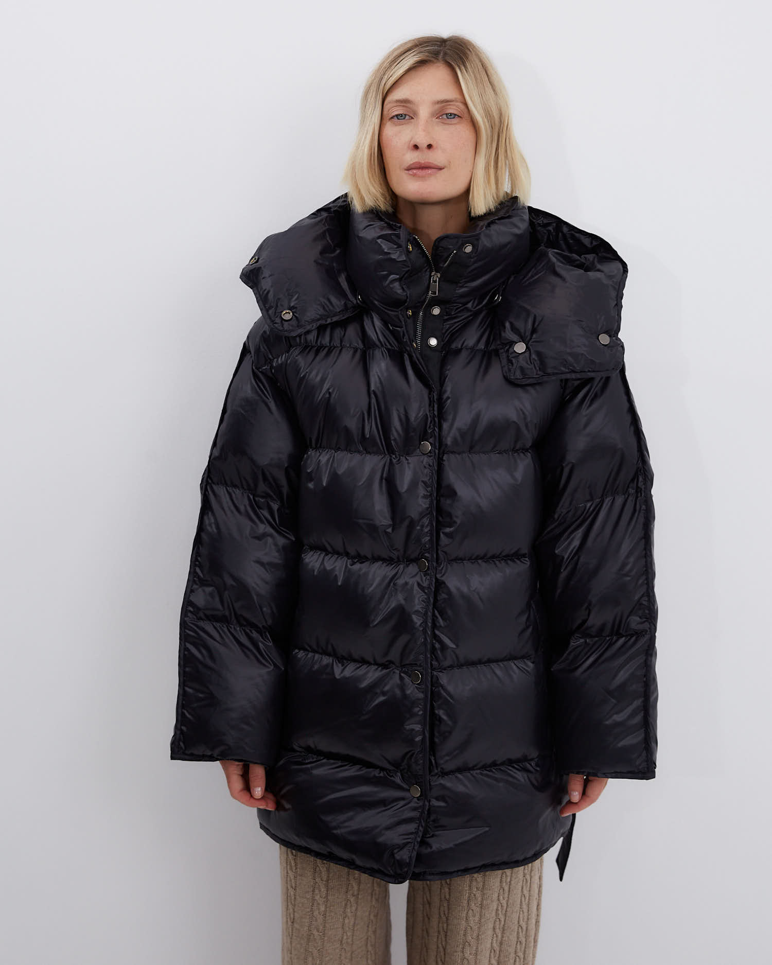 Пуховик со съемным капюшоном из нейлона от Монклер в черном цвете