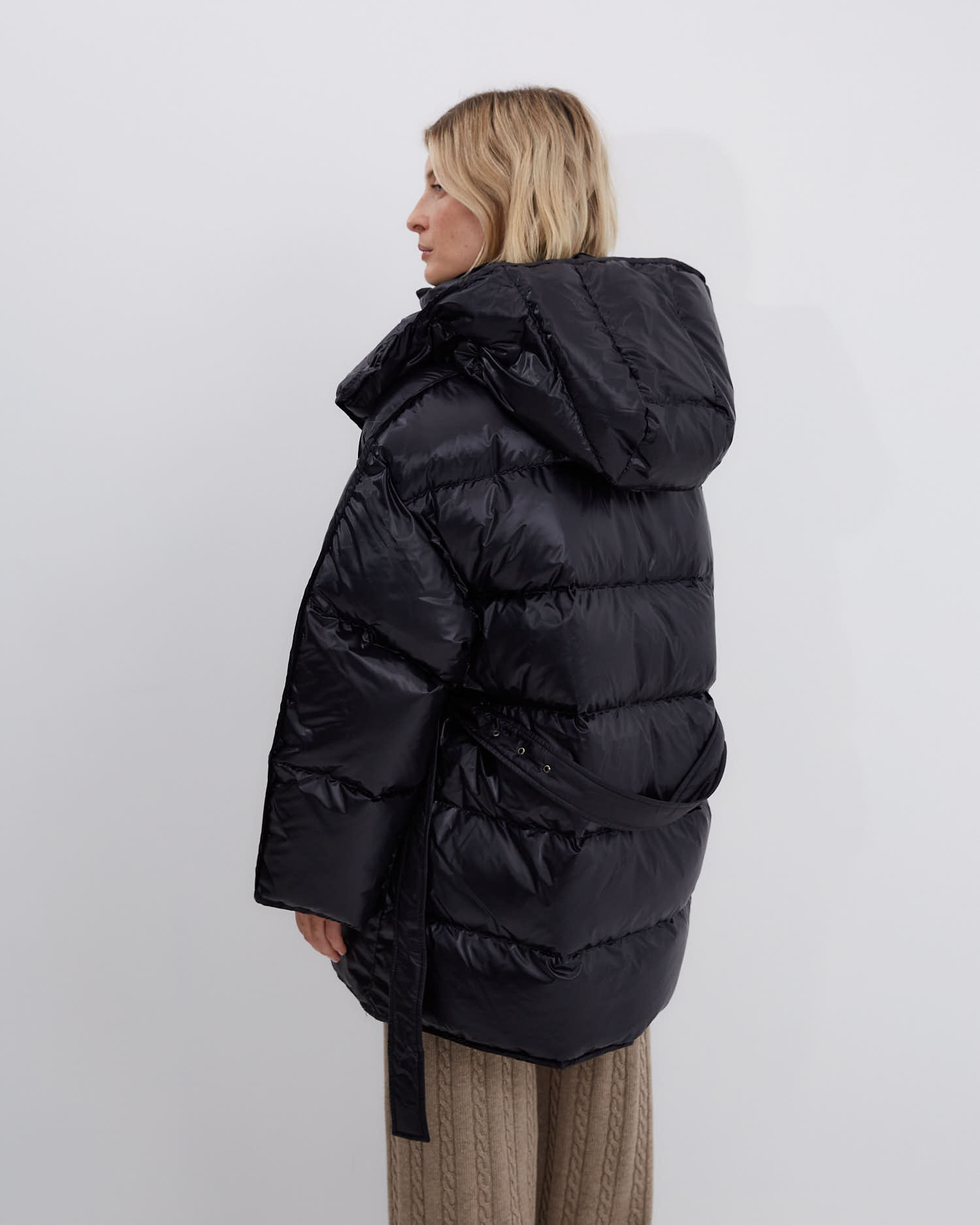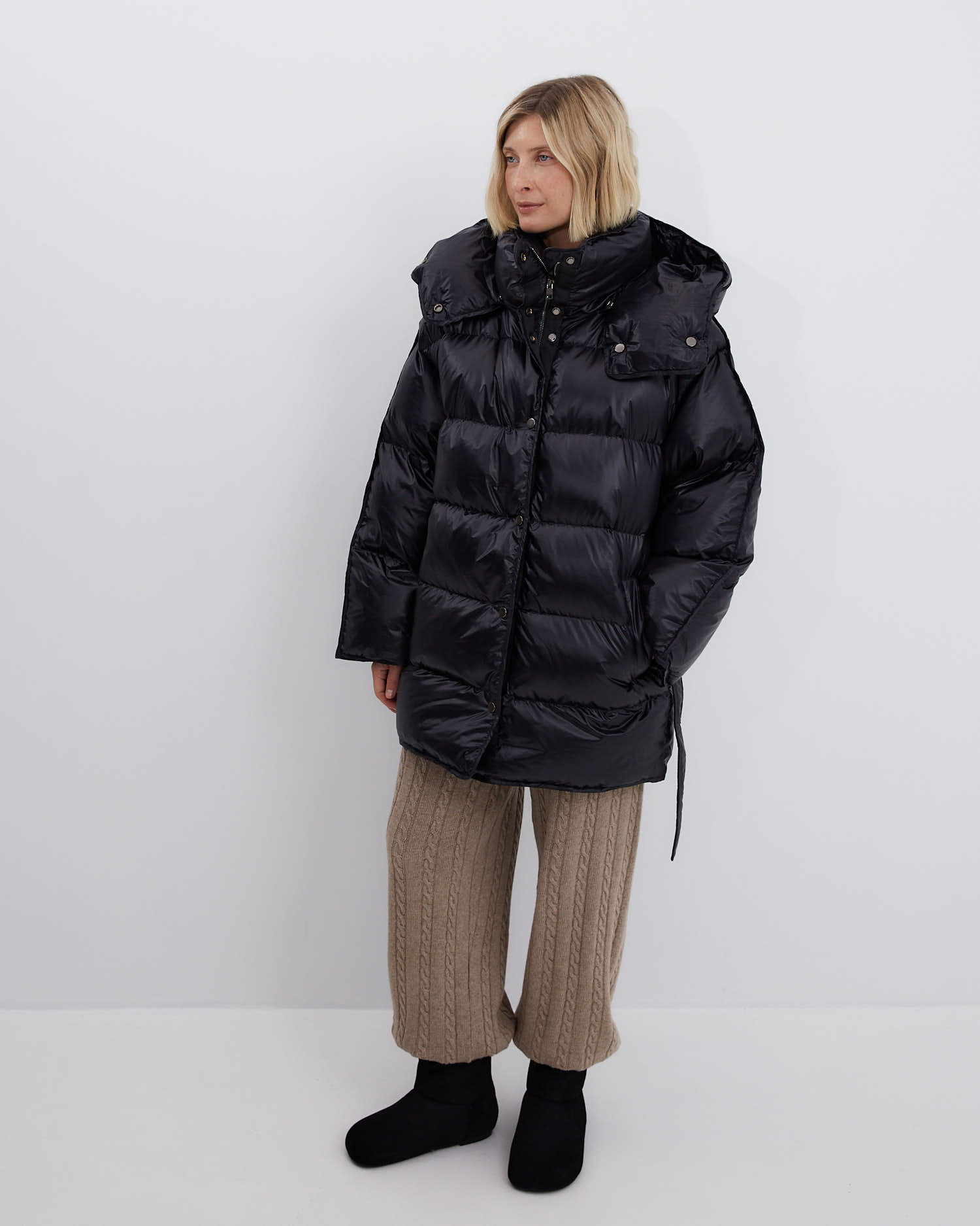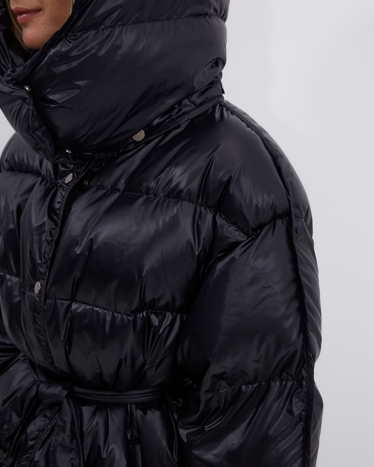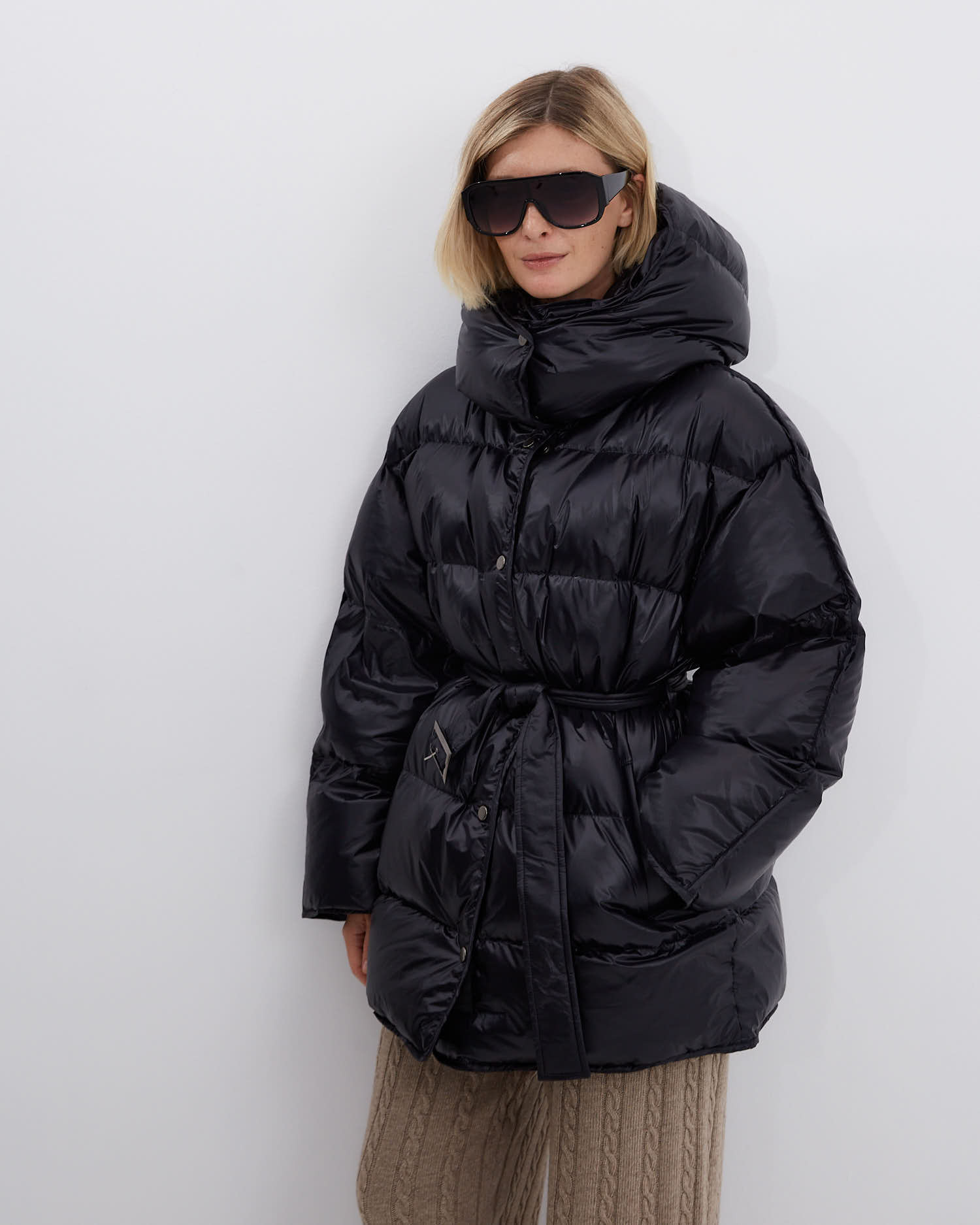 Наши пуховики выполнены из премиальных пуховых пакетов в составе которого входит натуральный гусиный пух. Объёмный воротник полностью закрывает шею и спасает от ветра. Внутри и снаружи мы предусмотрели кулису, чтобы изделие плотно прилегало к телу и внутрь не проникал холод.