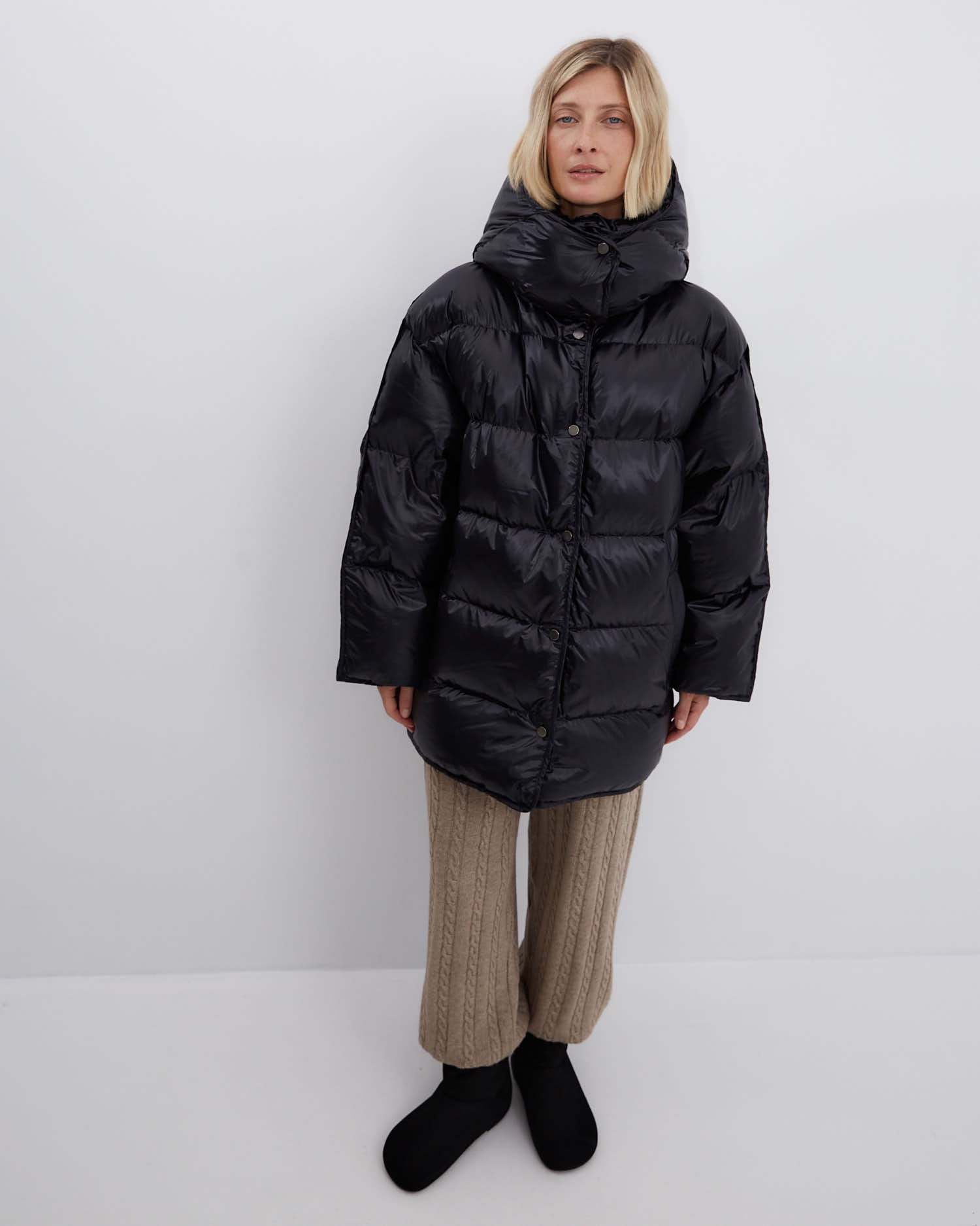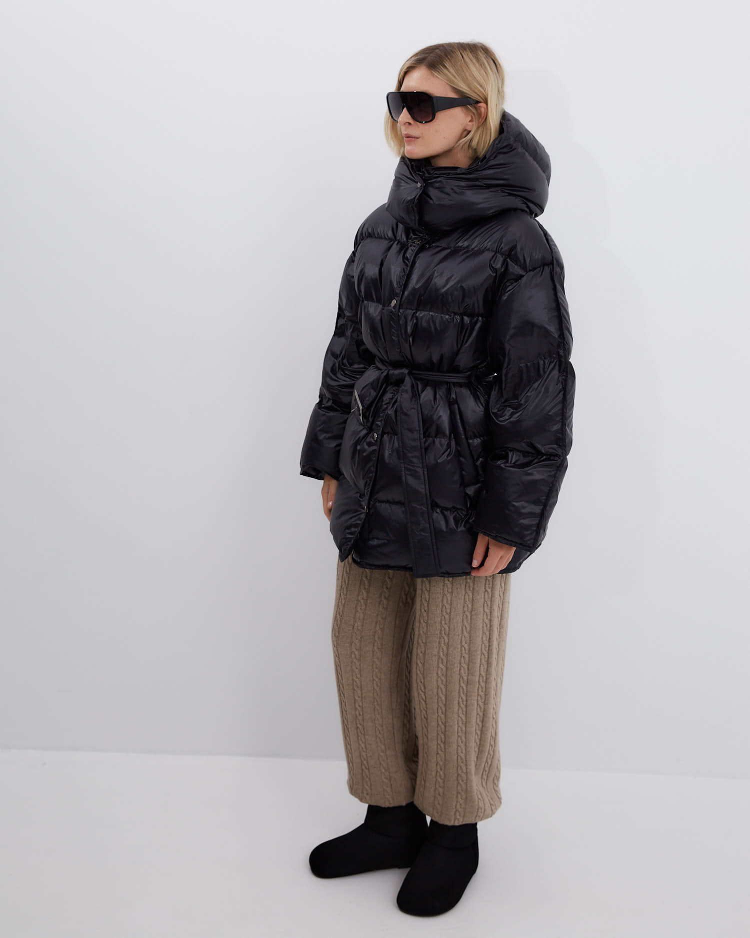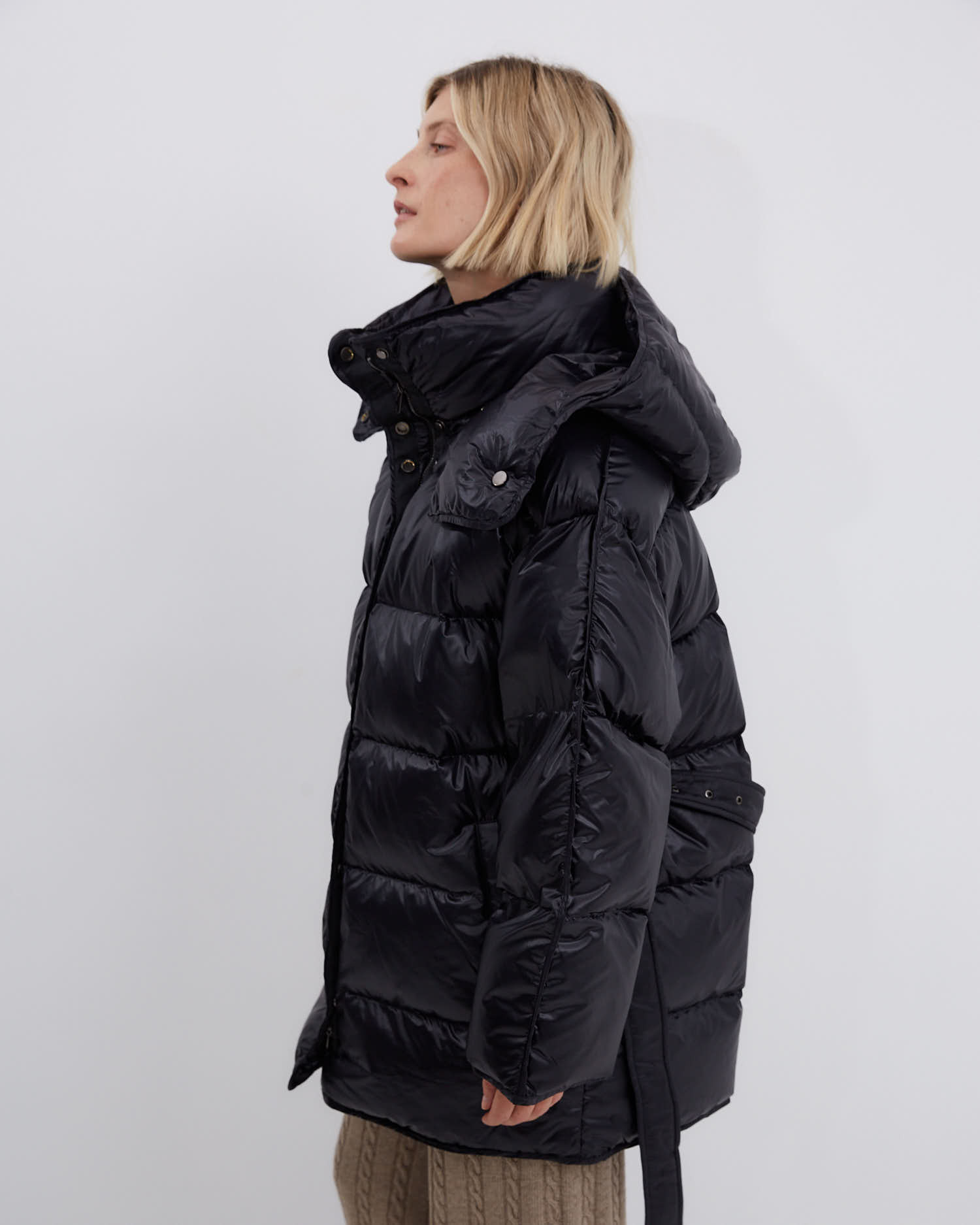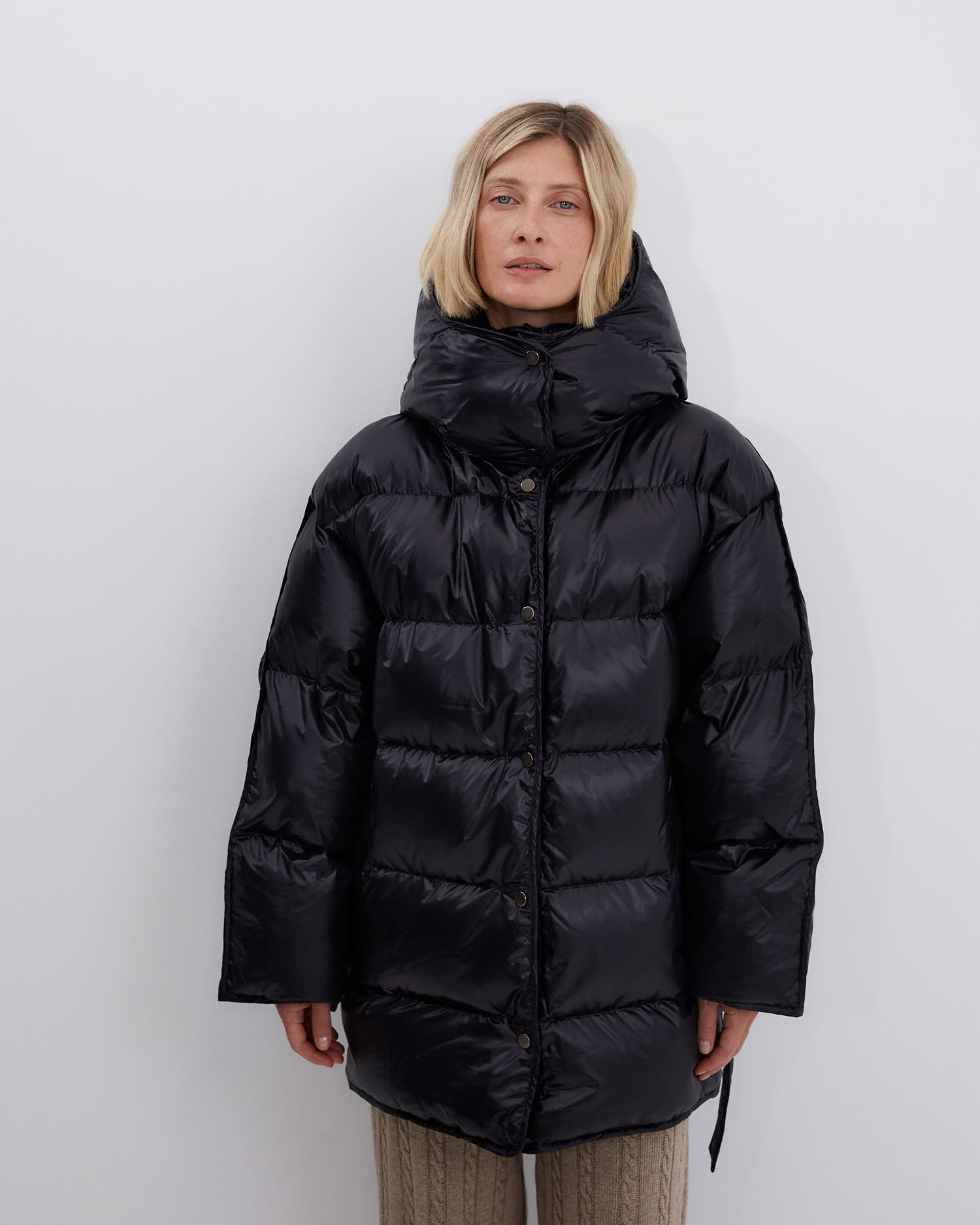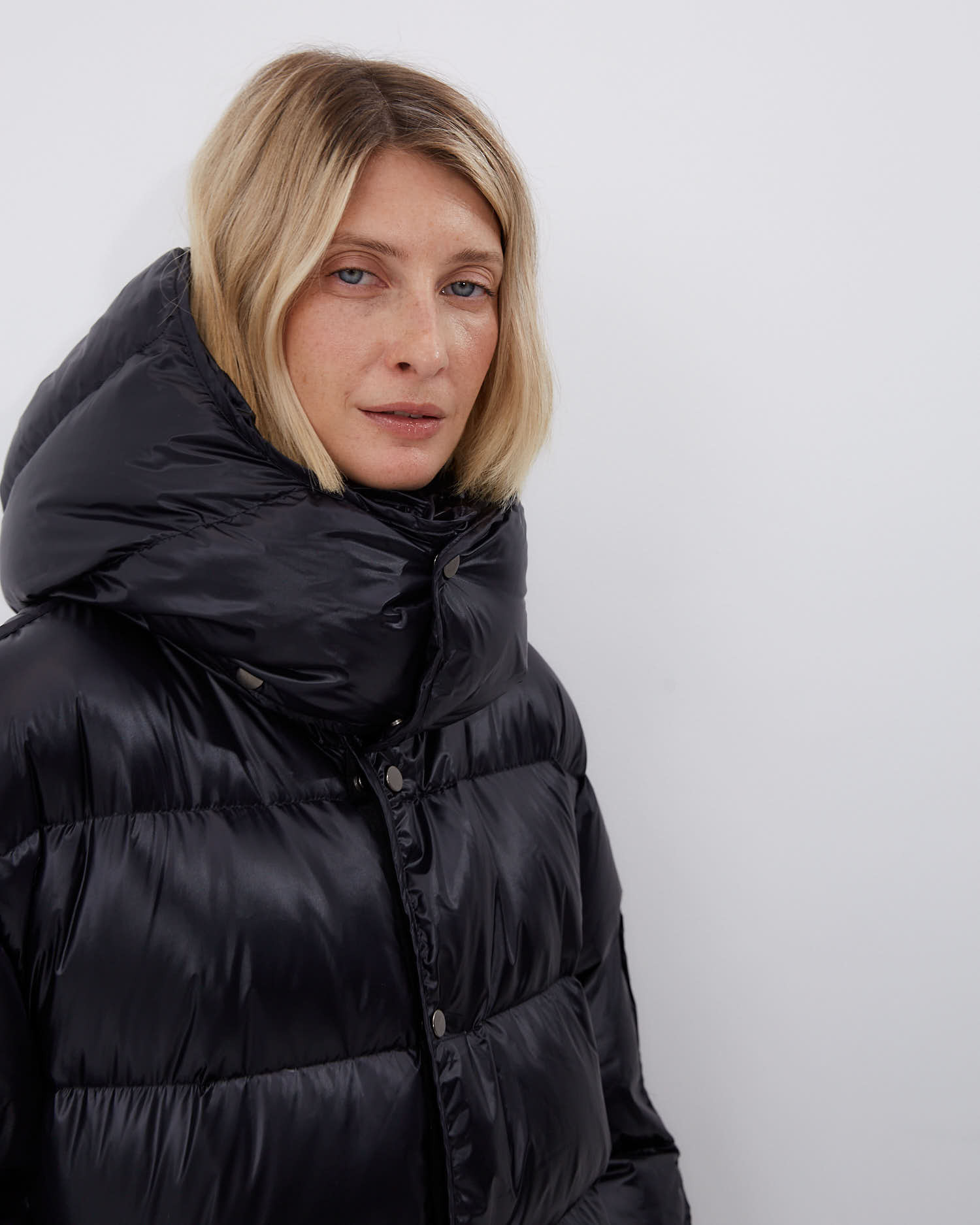 Наши пуховики выполнены из премиальных пуховых пакетов в составе которого входит натуральный гусиный пух. Объёмный воротник полностью закрывает шею и спасает от ветра. Внутри и снаружи мы предусмотрели кулису, чтобы изделие плотно прилегало к телу и внутрь не проникал холод.