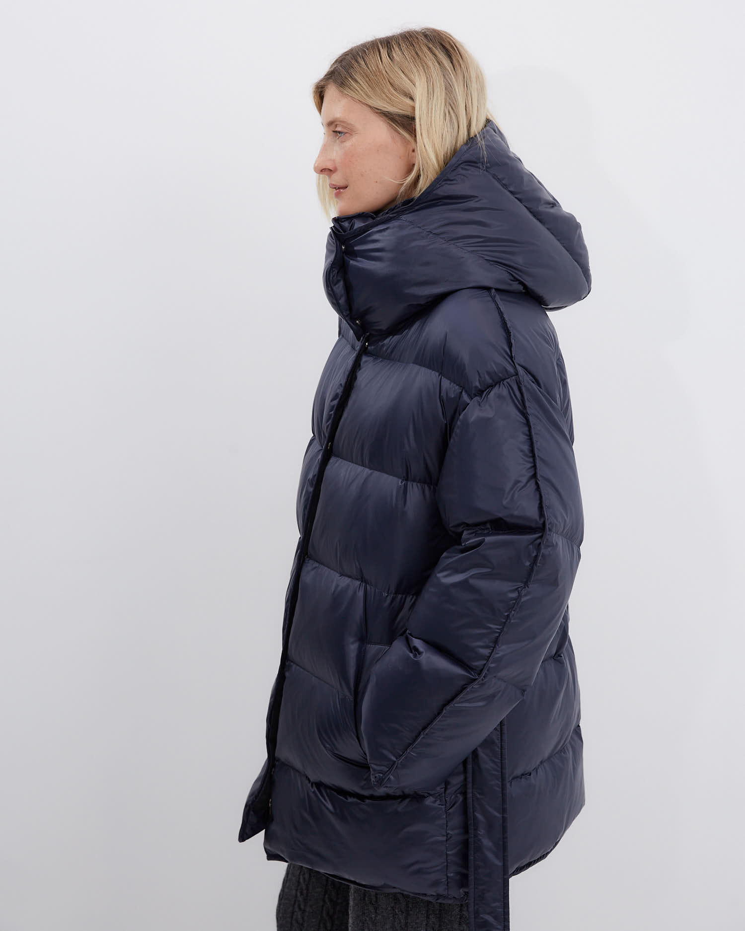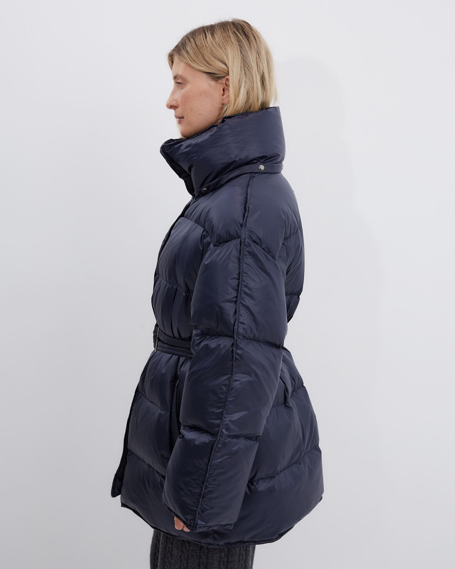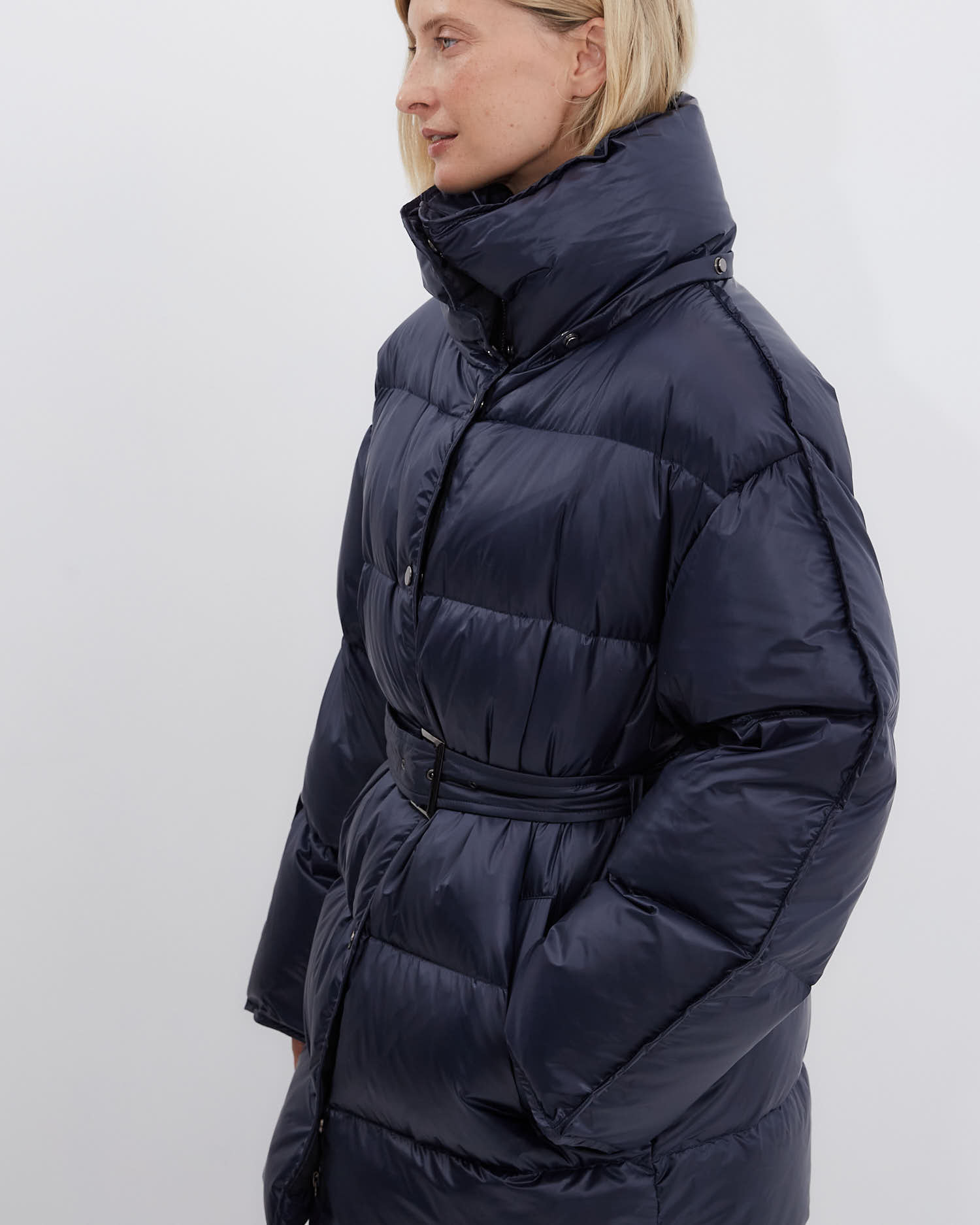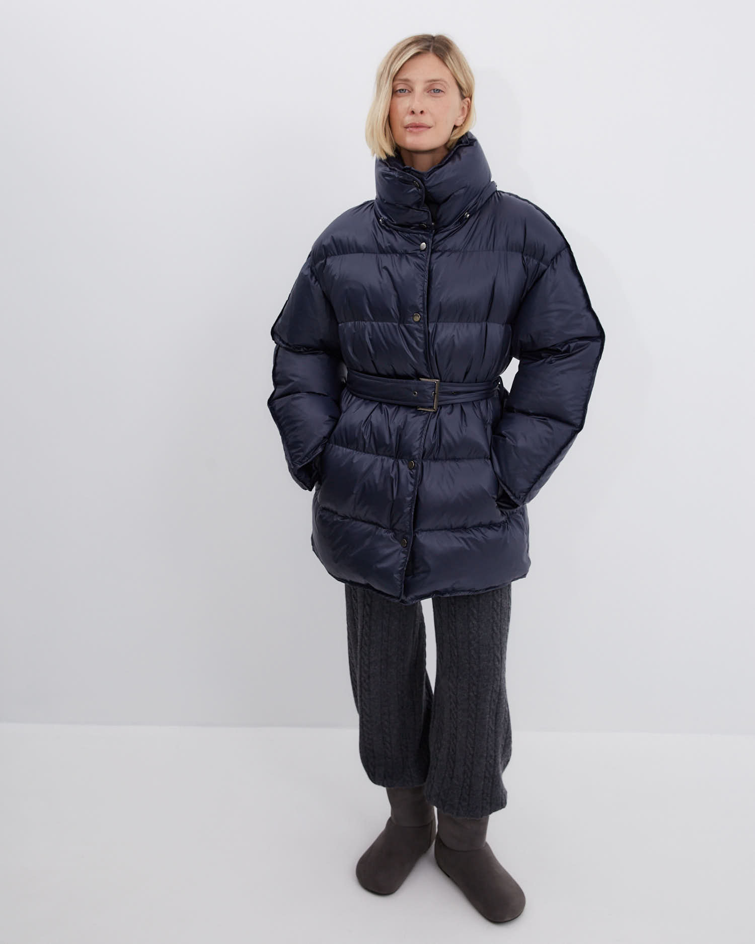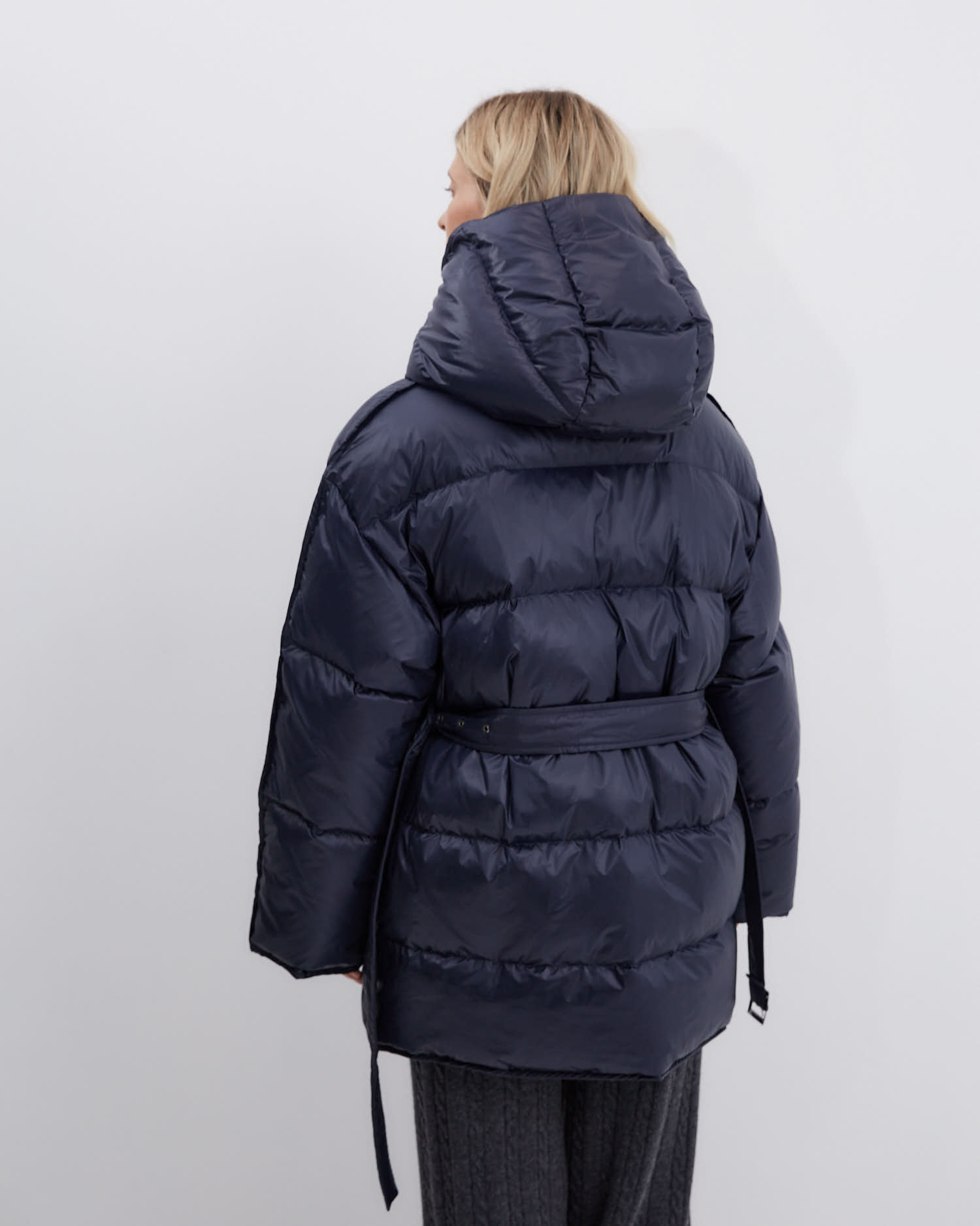 Наши пуховики выполнены из премиальных пуховых пакетов в составе которого входит натуральный гусиный пух. Объёмный воротник полностью закрывает шею и спасает от ветра. Внутри и снаружи мы предусмотрели кулису, чтобы изделие плотно прилегало к телу и внутрь не проникал холод.