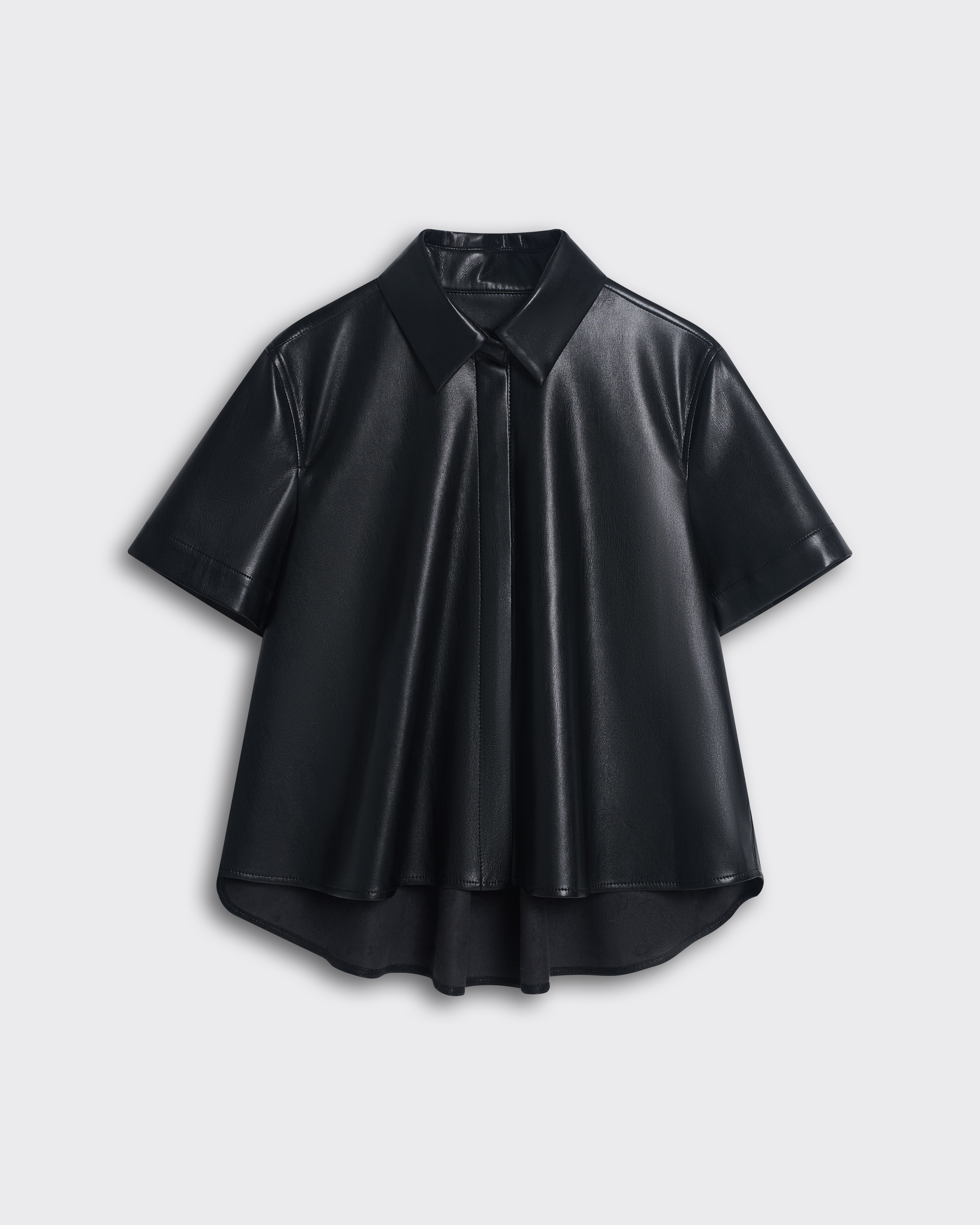 Рубашка из искусственной кожи с коротким рукавом в черном цвете