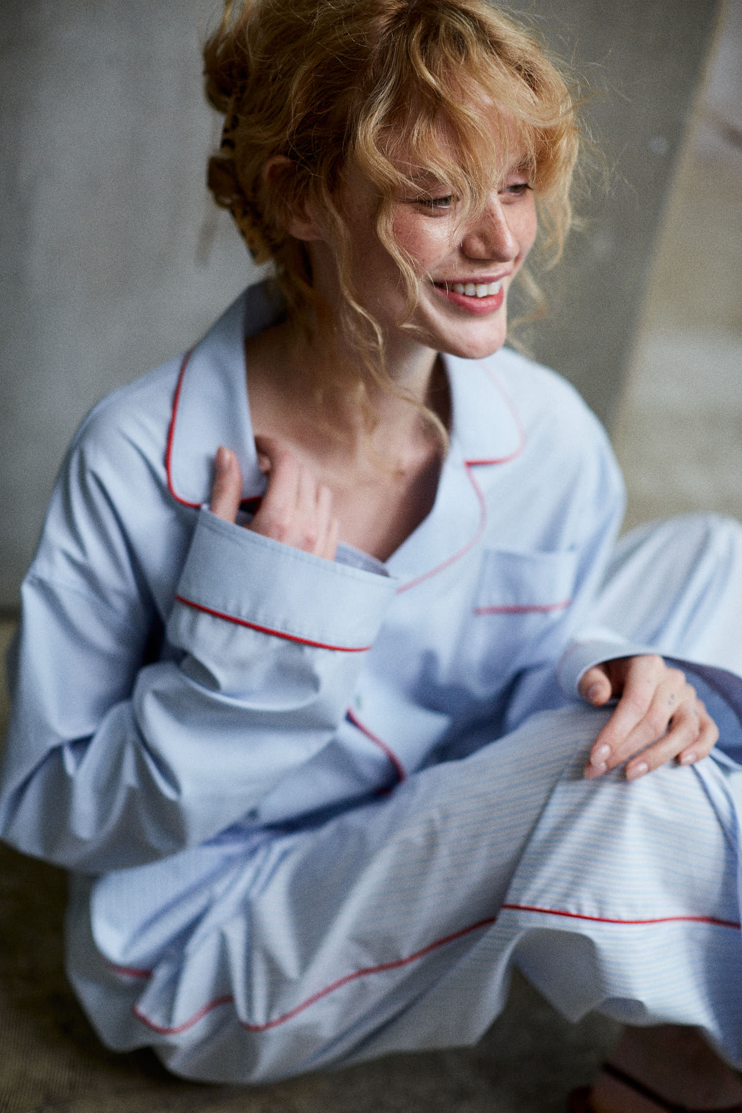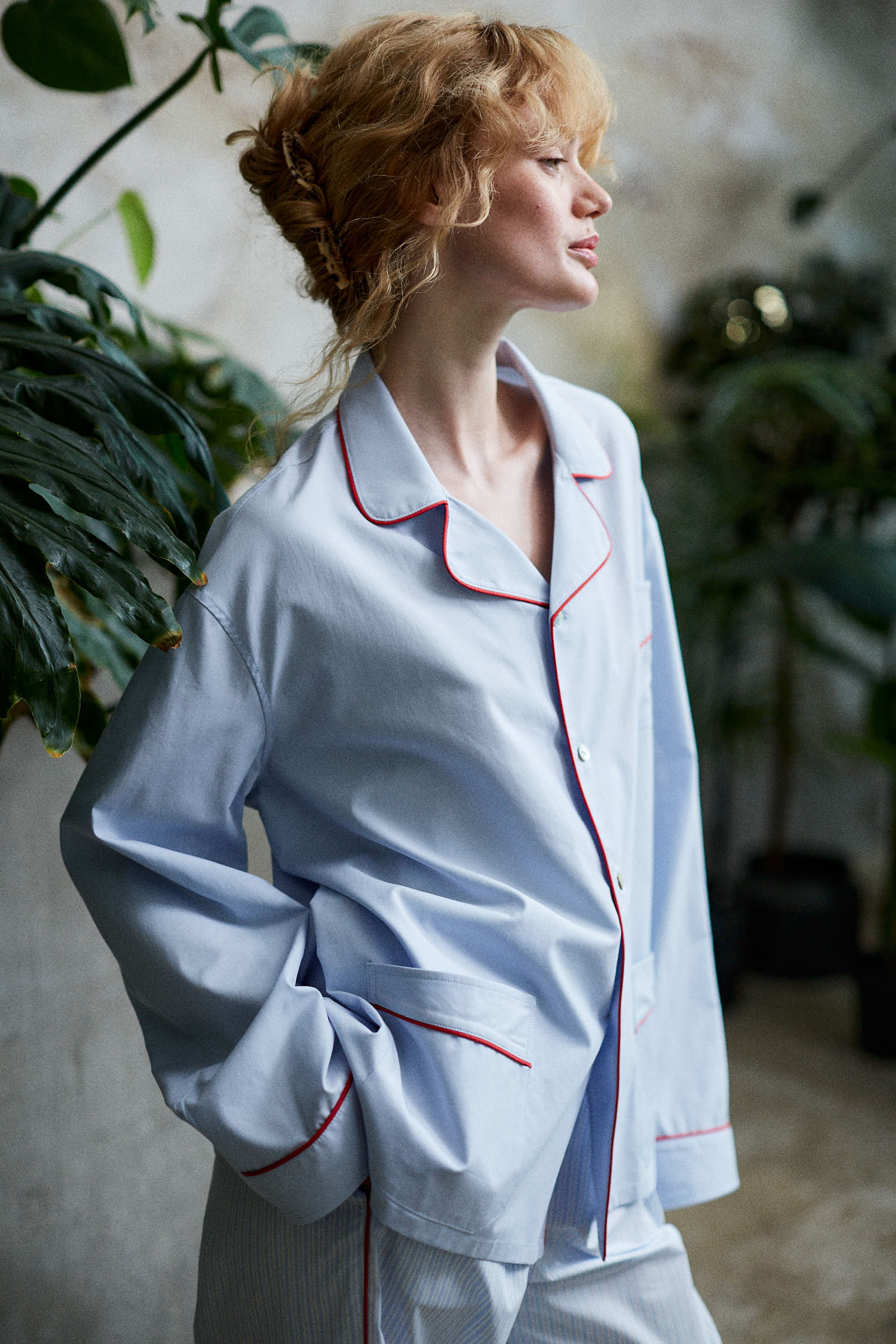 Рубашка из смесового хлопка с кантом в голубом цвете