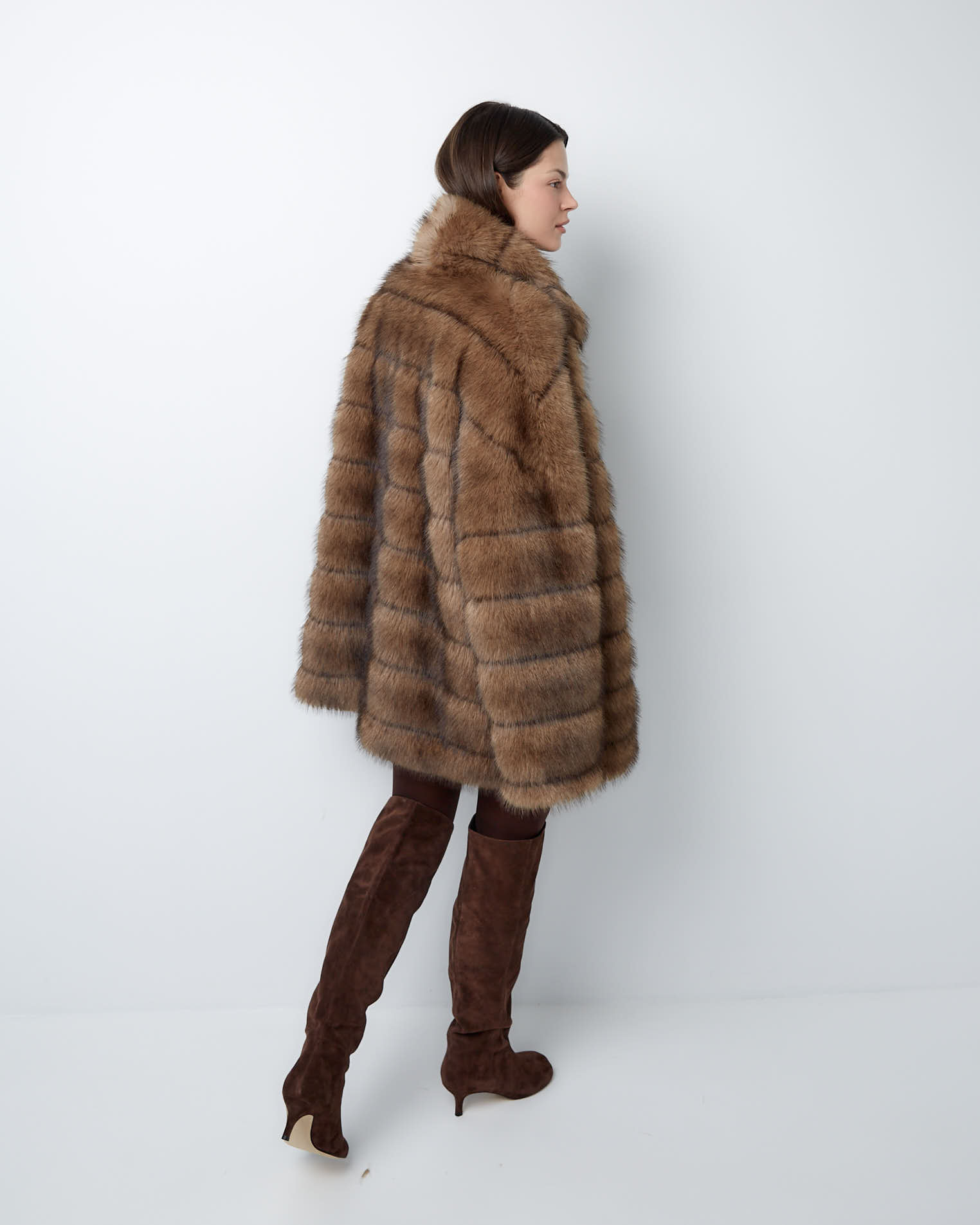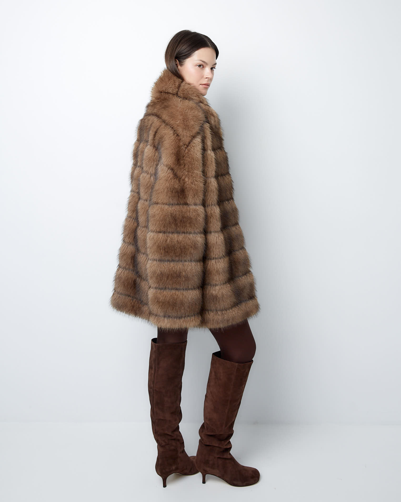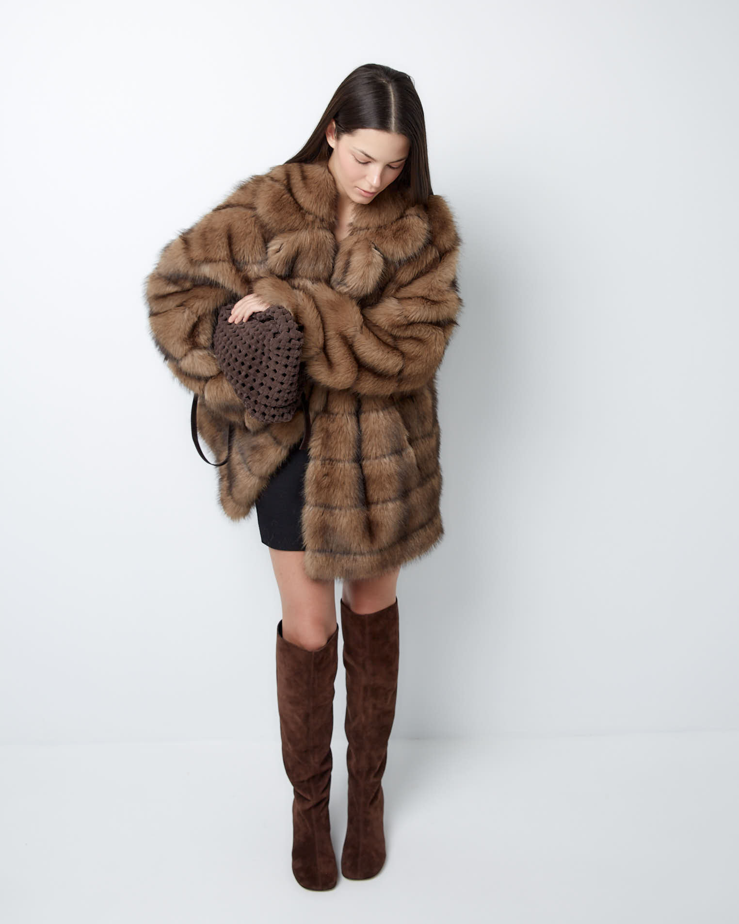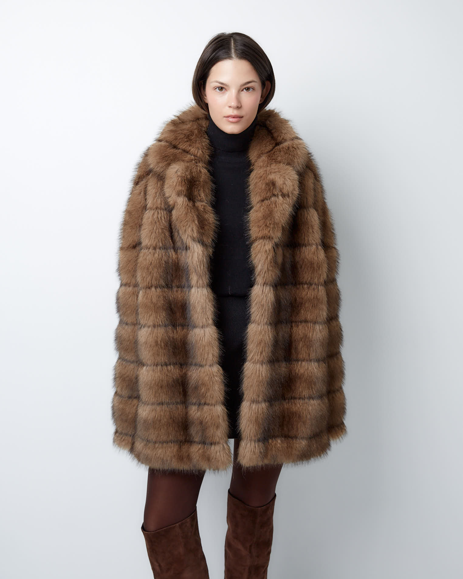 Шуба укороченная из искусственного меха соболя в ореховом цвете
