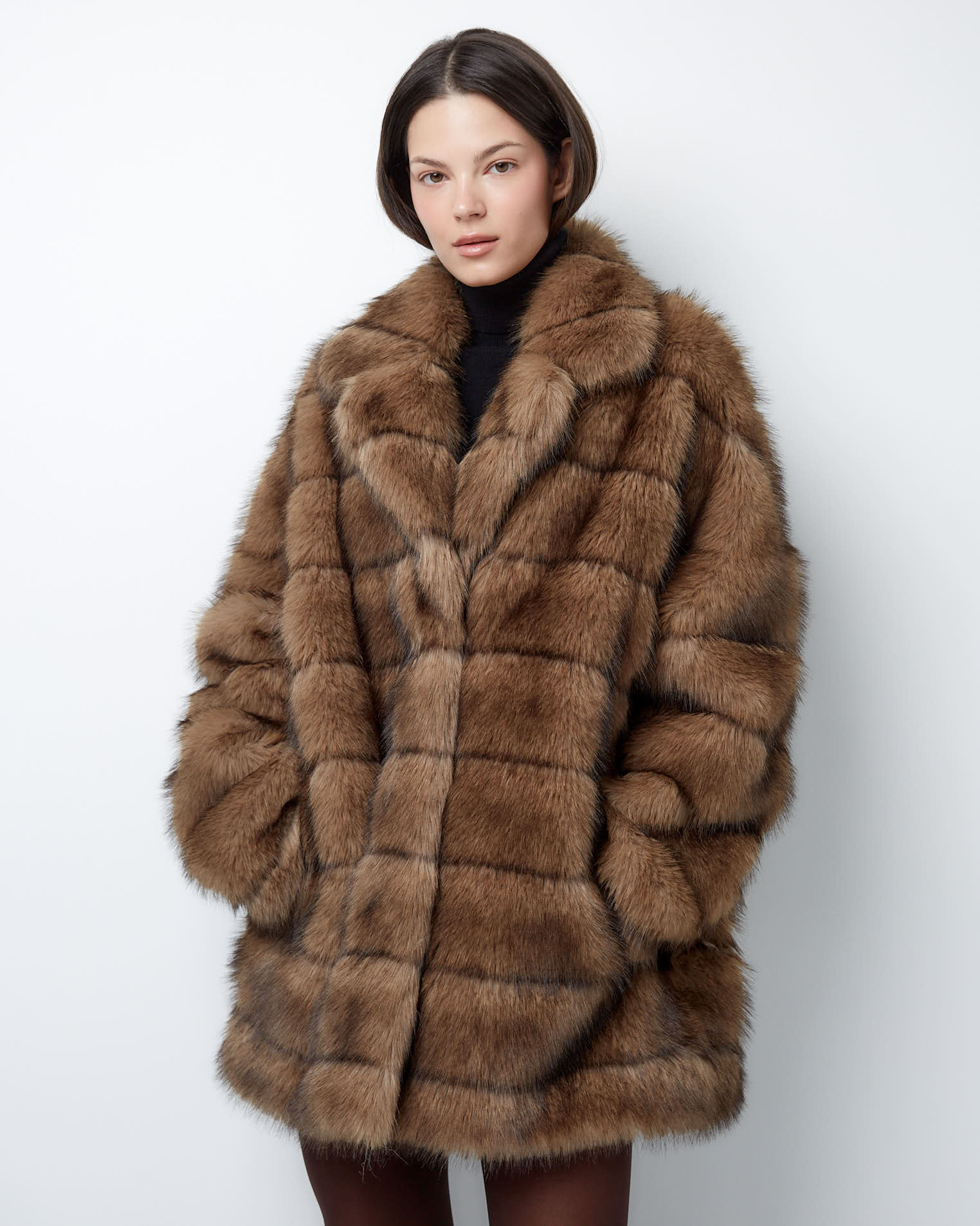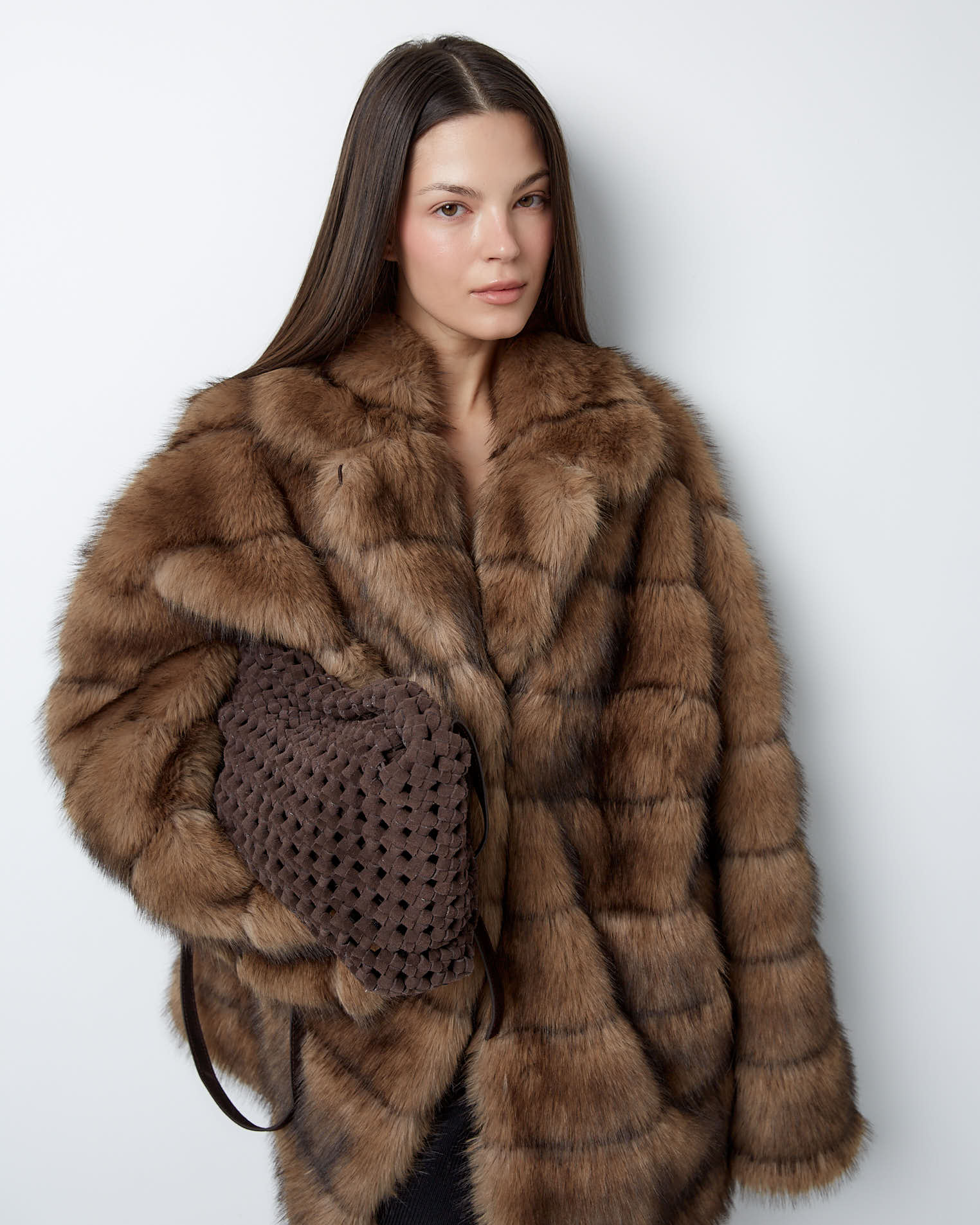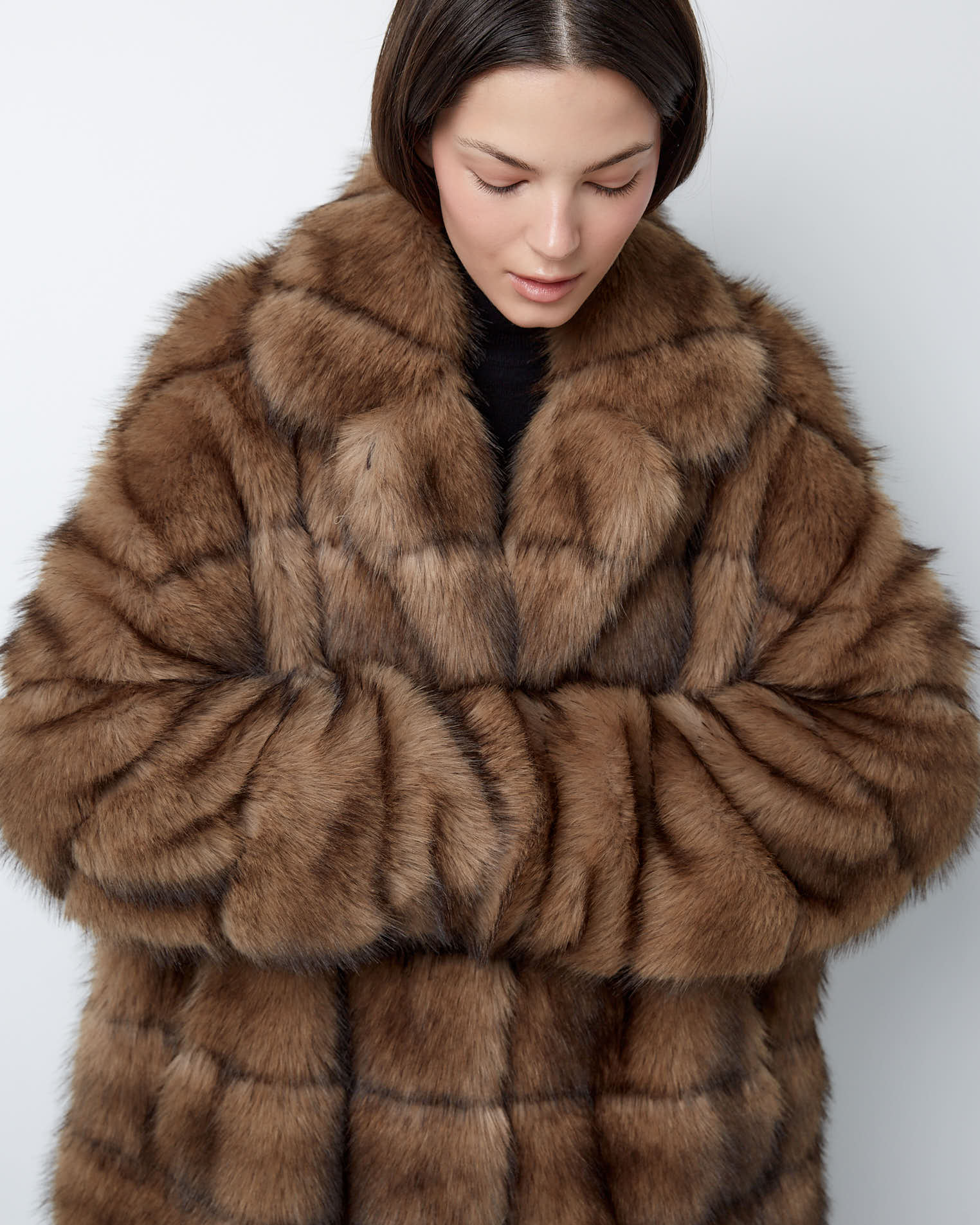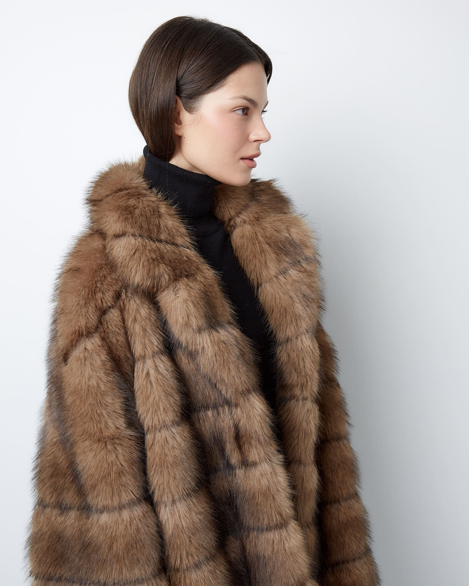 Шуба укороченная из искусственного меха соболя в ореховом цвете