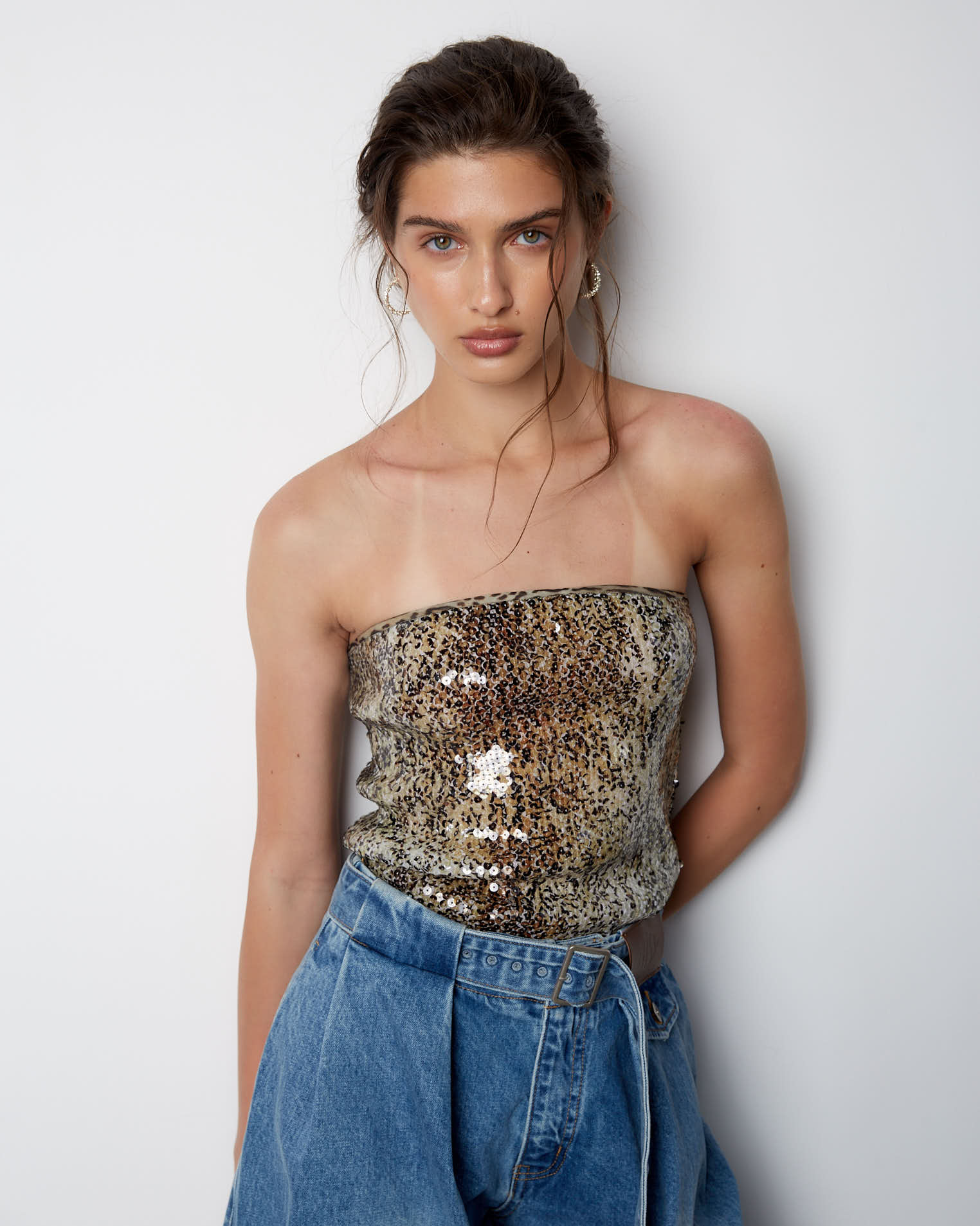 Топ из пайеток от Стеллы Маккартни со змеиным принтом