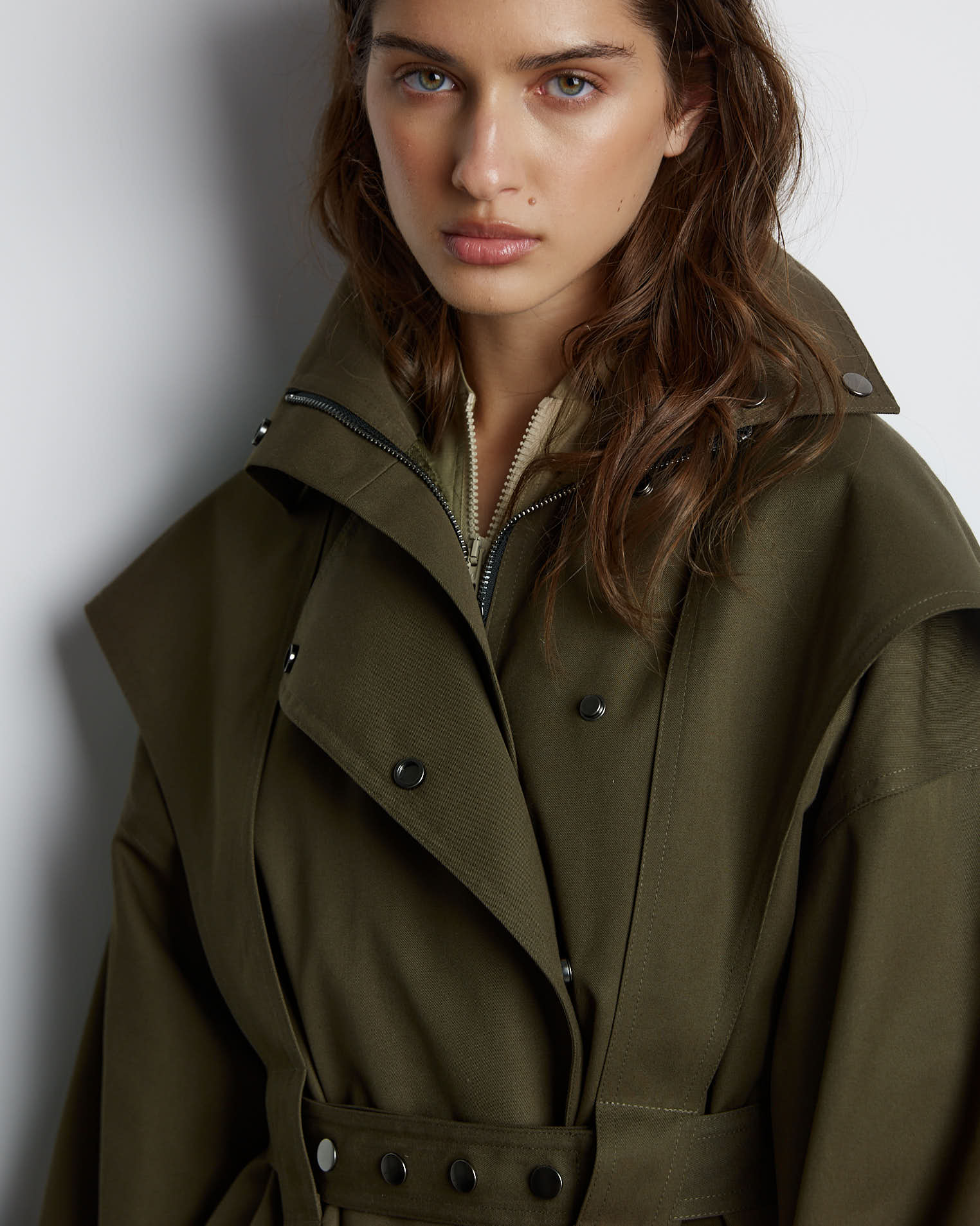 Носите с тренчем уютные трикотажные комплекты или сочетайте со строгими брючными костюмами. Модель станет отличным решением для прогулок в прохладную погоду.