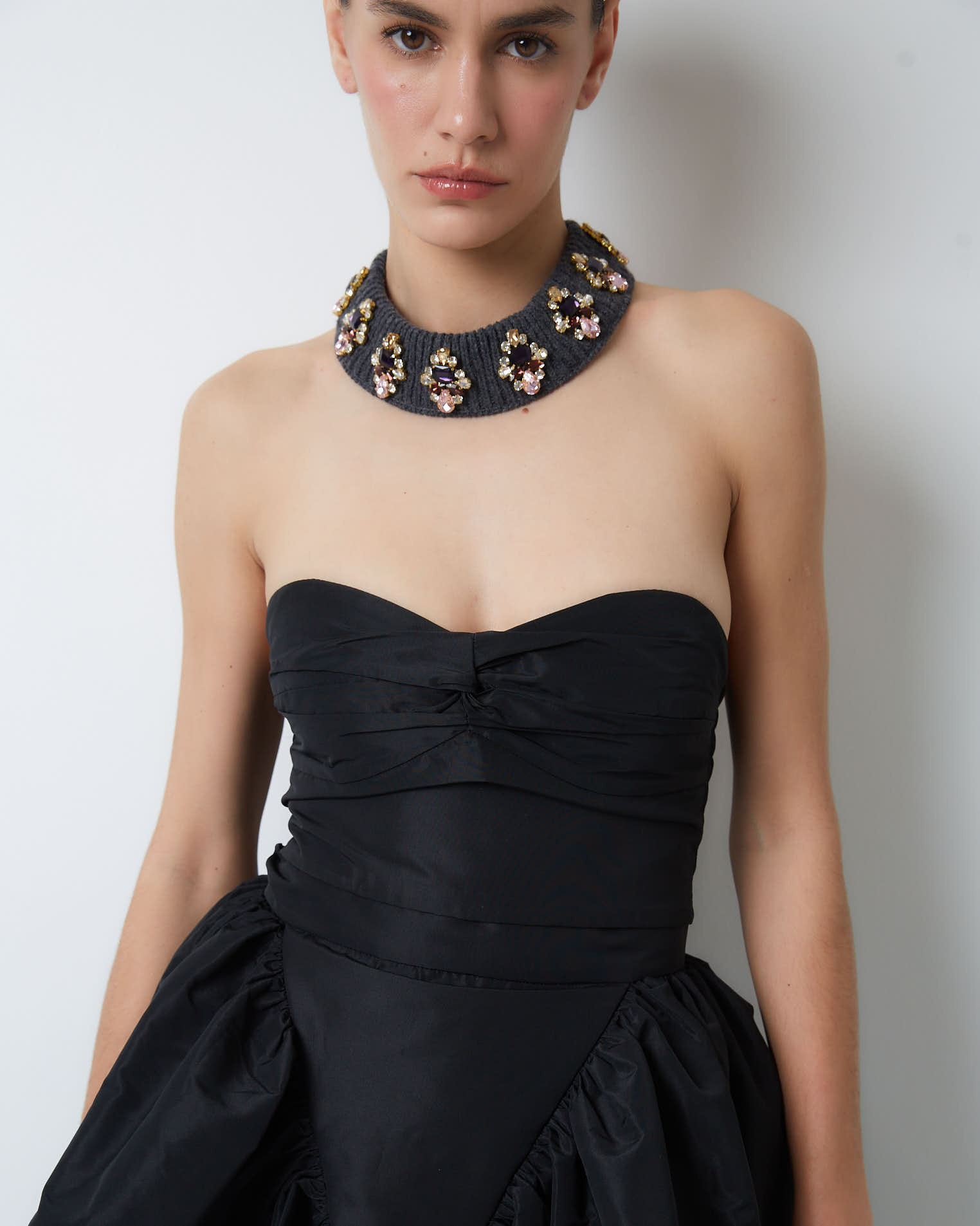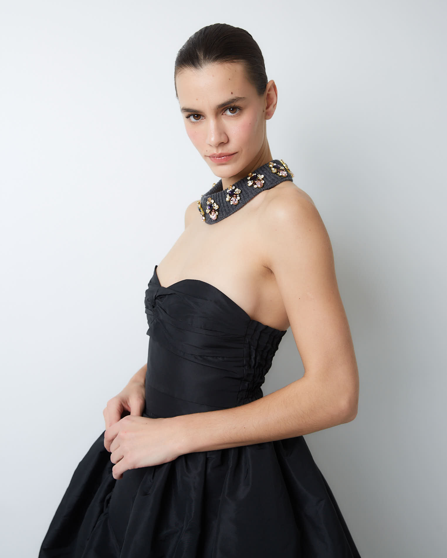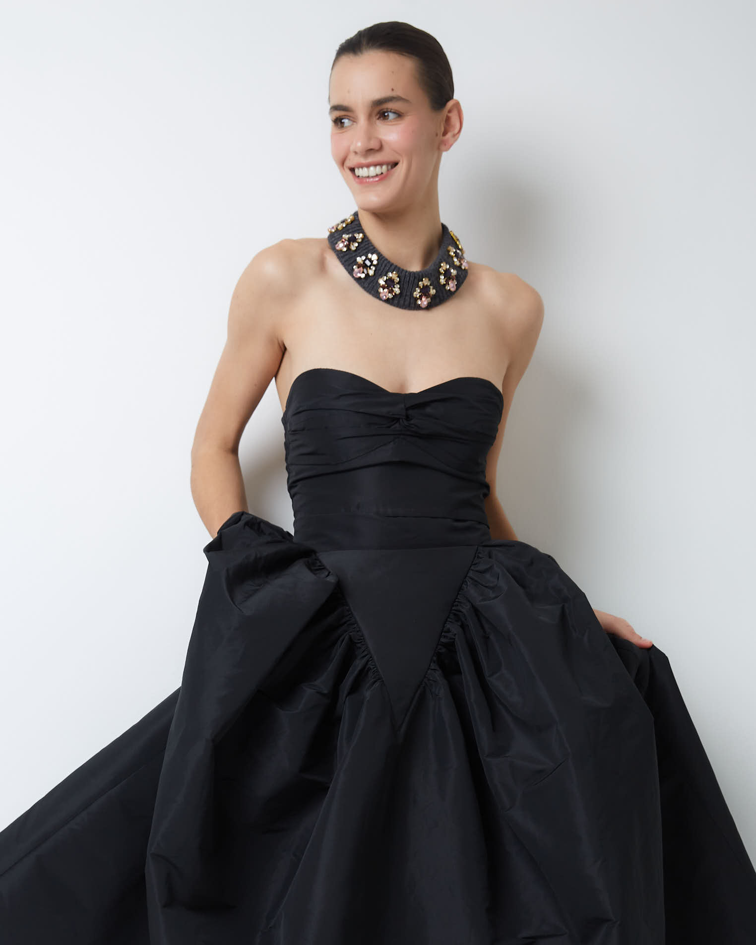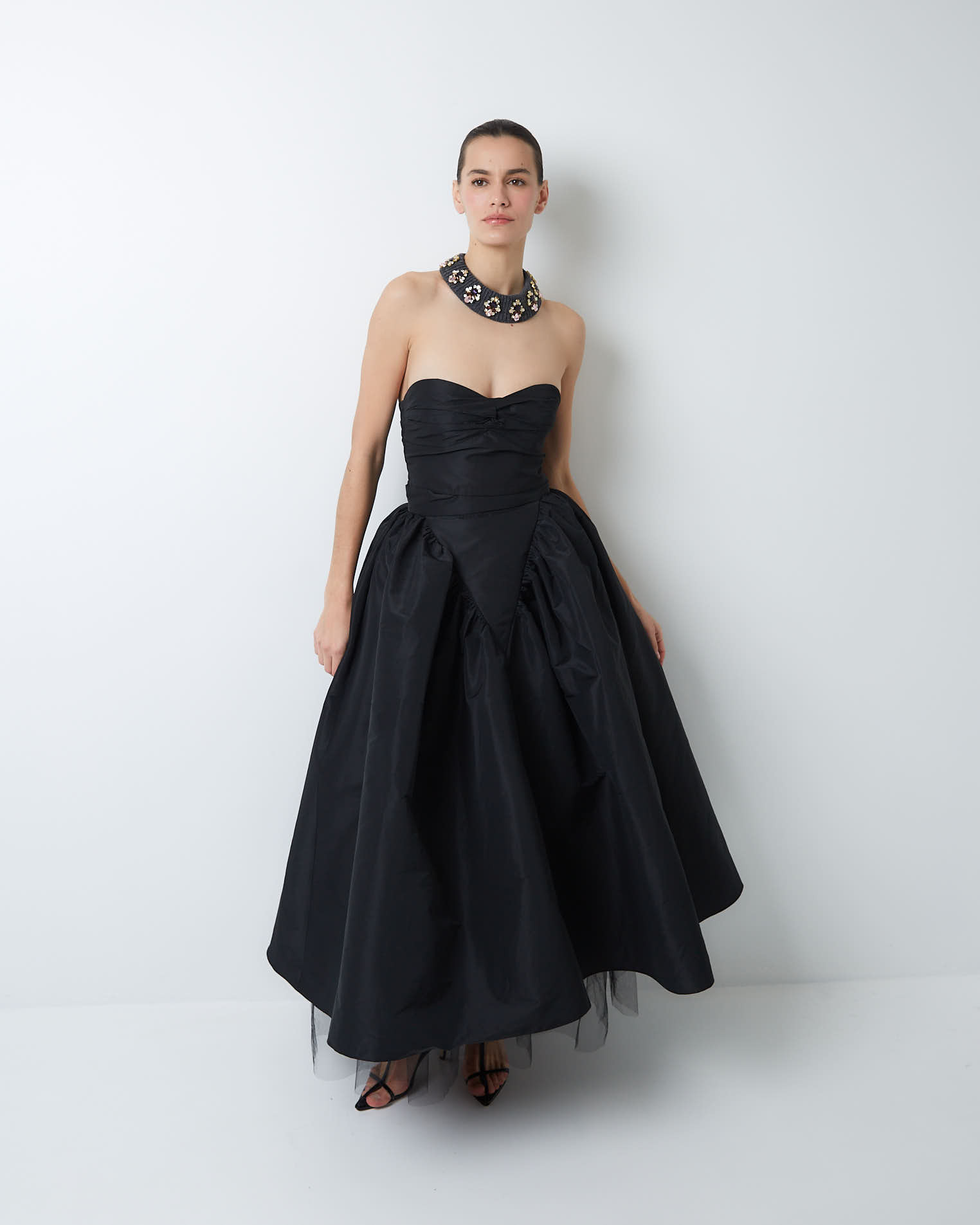 В модели из нашей новогодней коллекции максимальная концентрация женственности, привлекательности и притяжения. Можно носить как в контексте корпоративных мероприятий, так и в менее формальной обстановке.