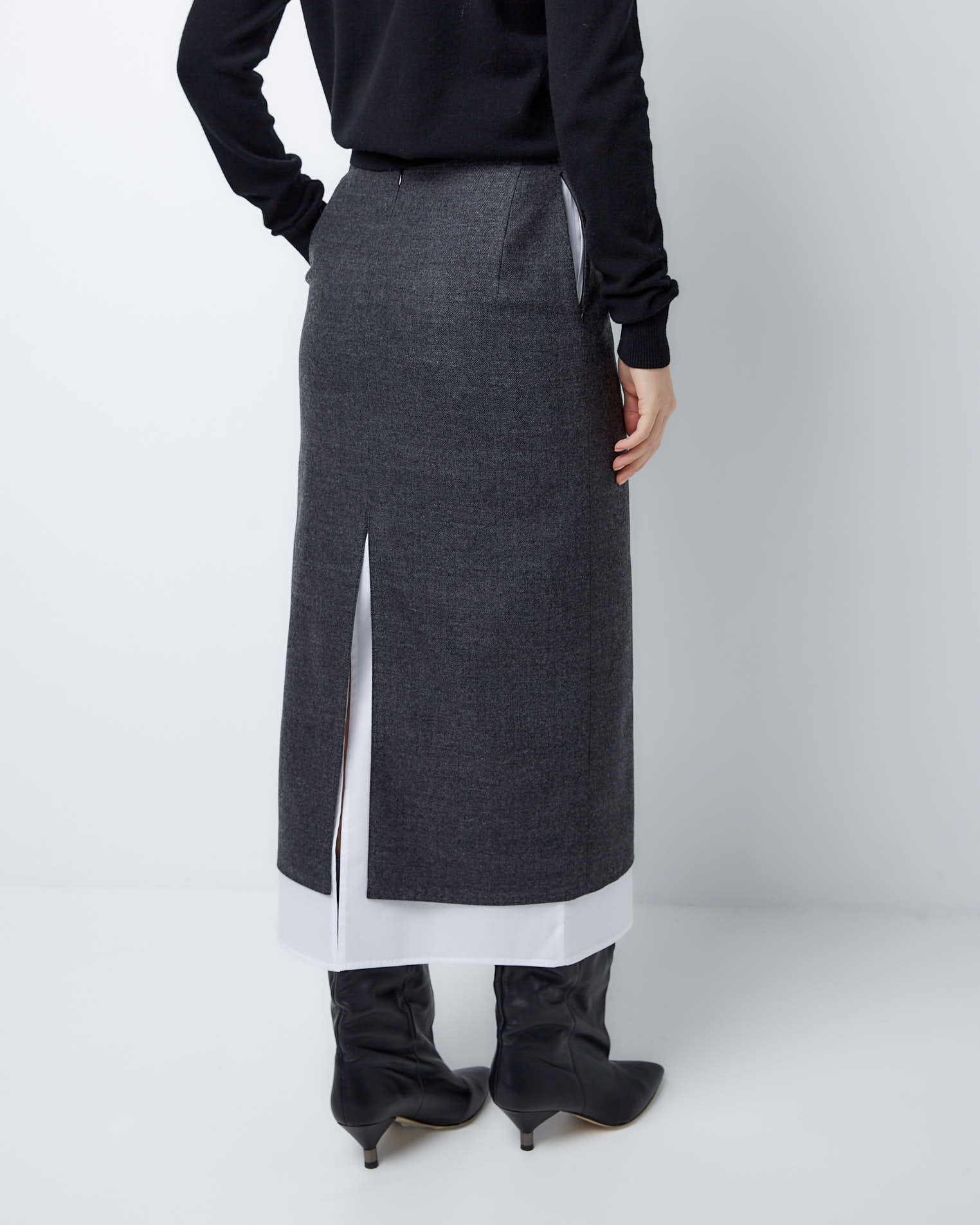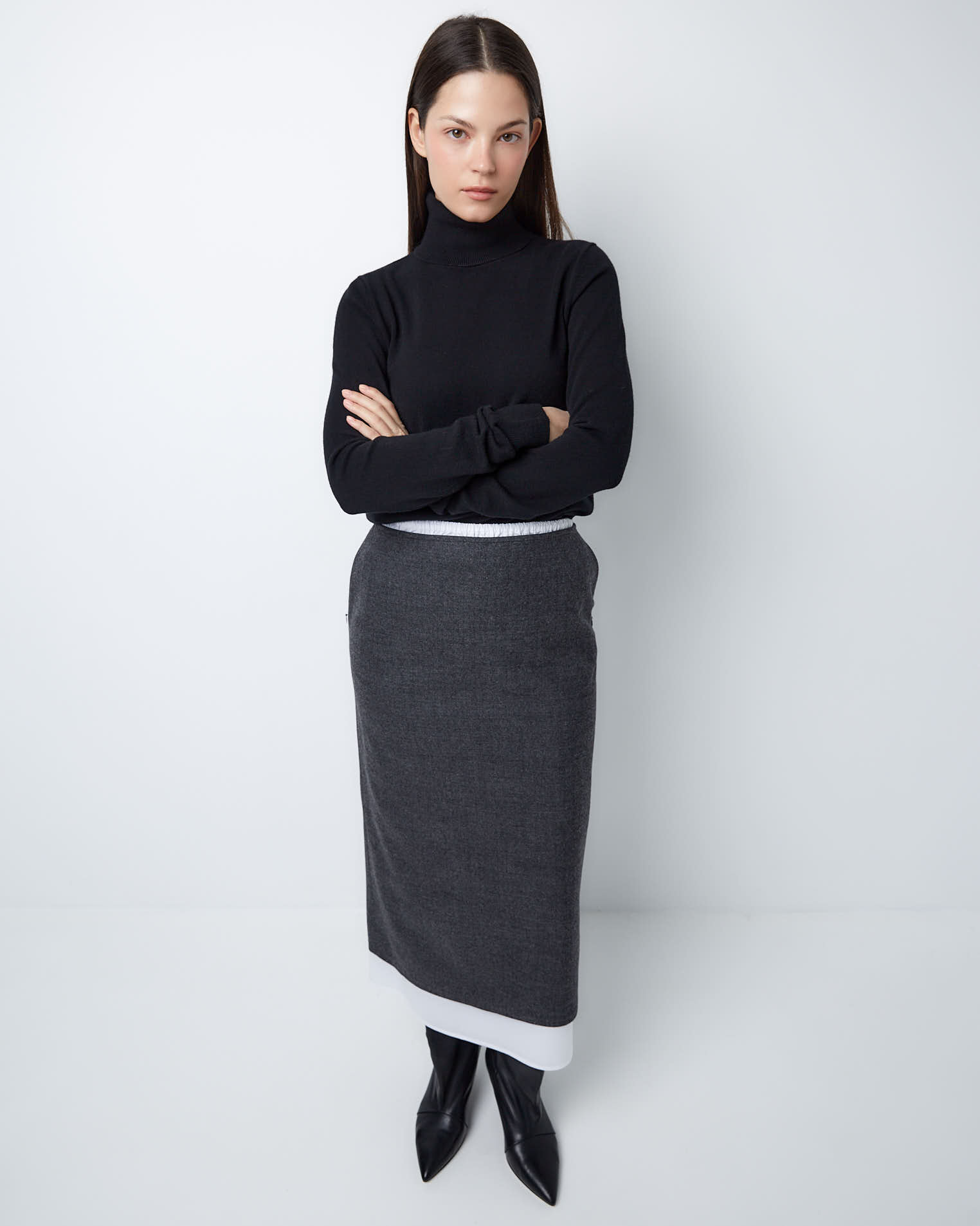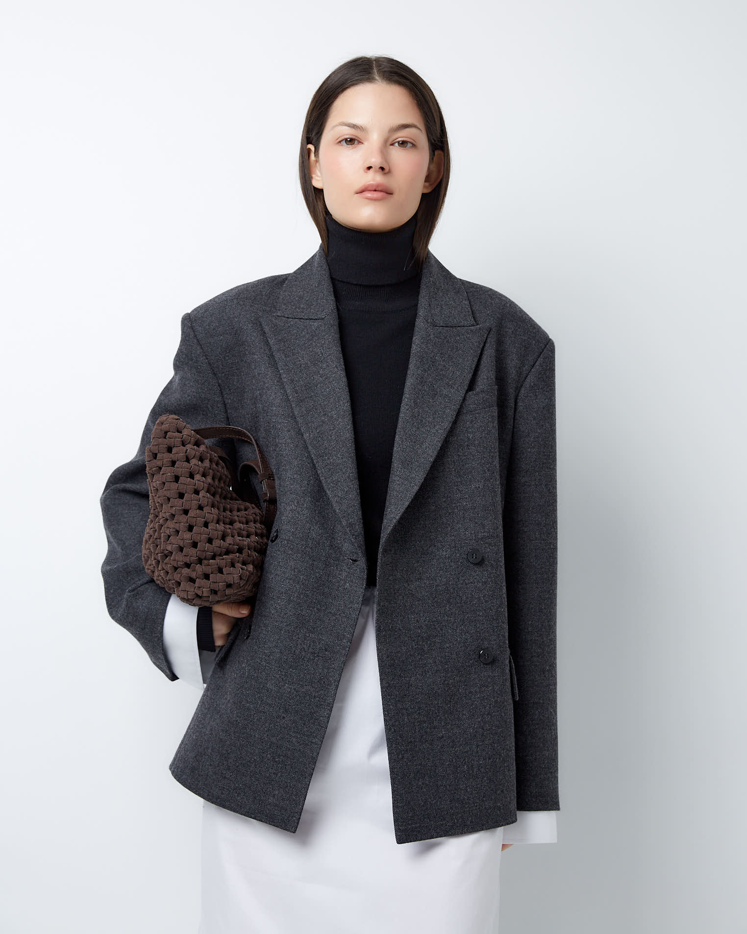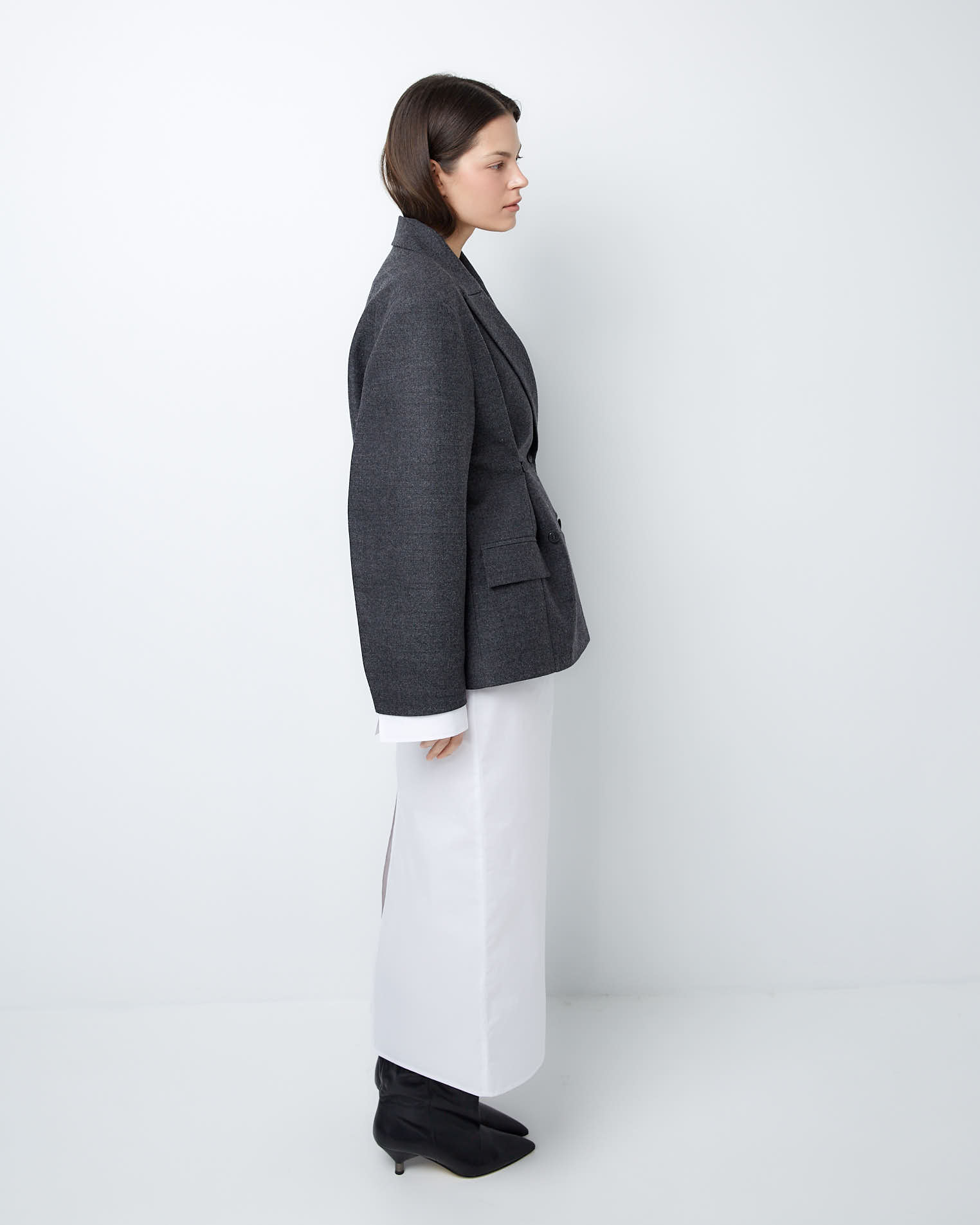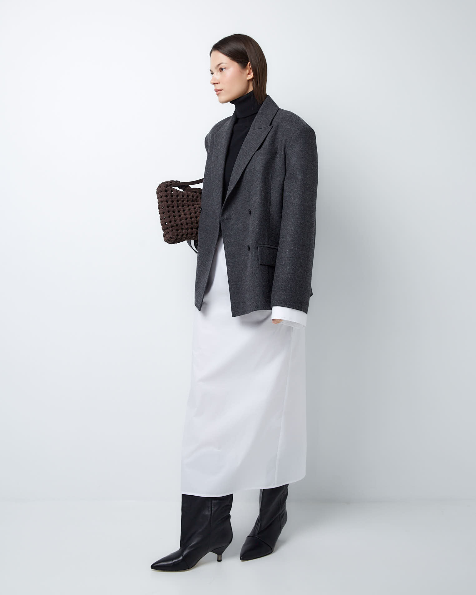 Для создания модели мы выбрали тонкую нежную шерсть, которая славится своей гигроскопичностью и практичностью. Этот материал хорошо держит заданную форму и поддерживает чувство комфорта весь день.