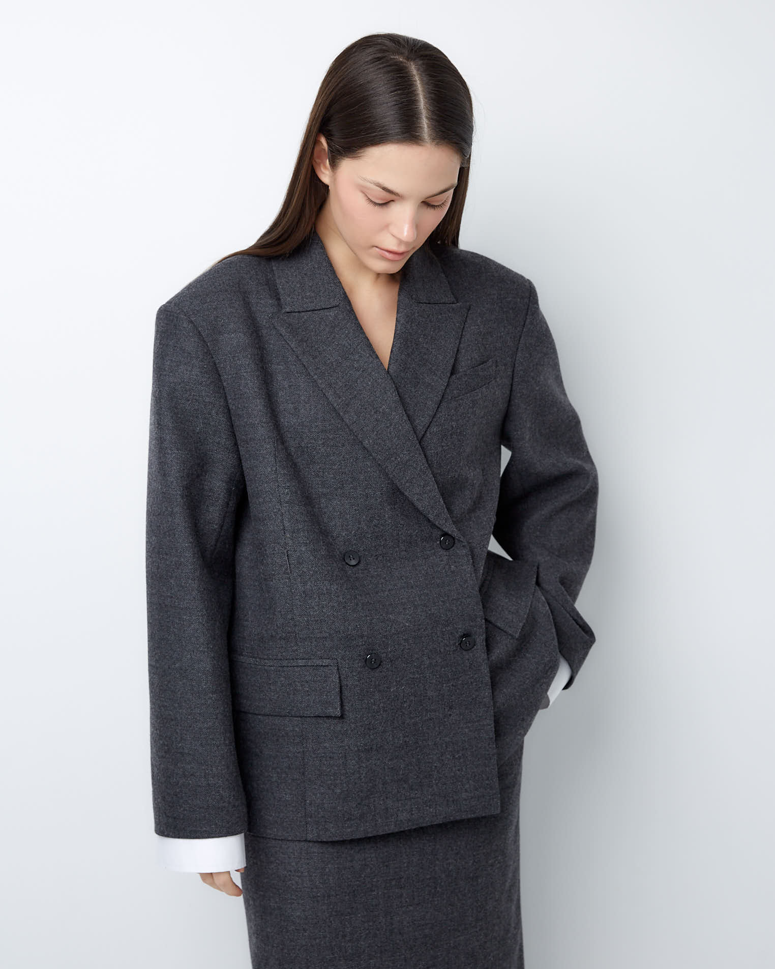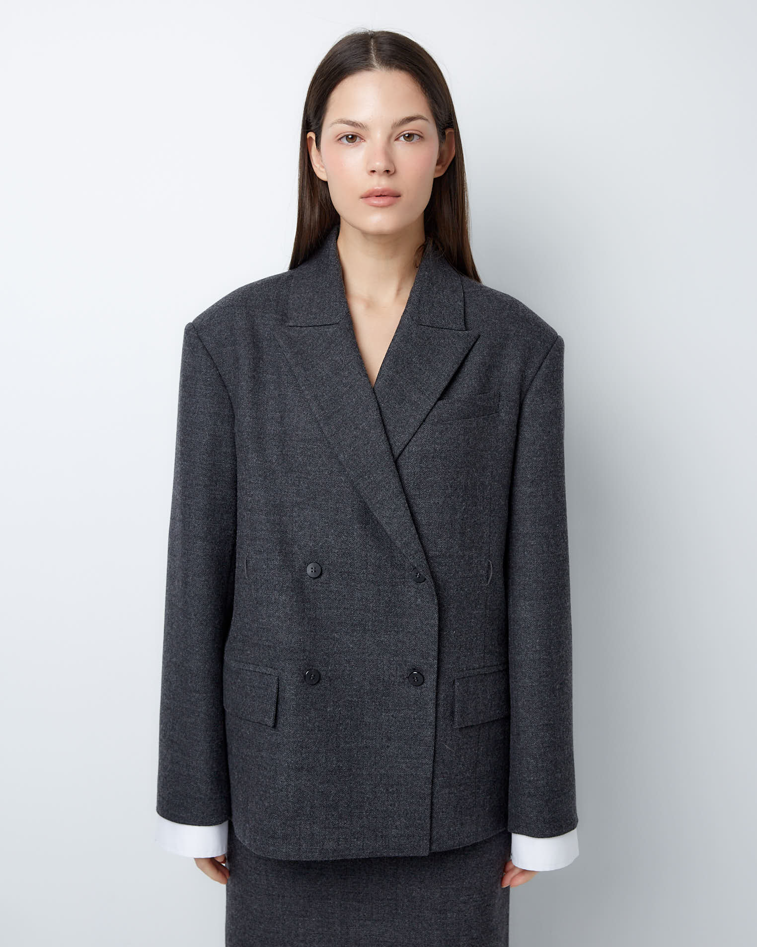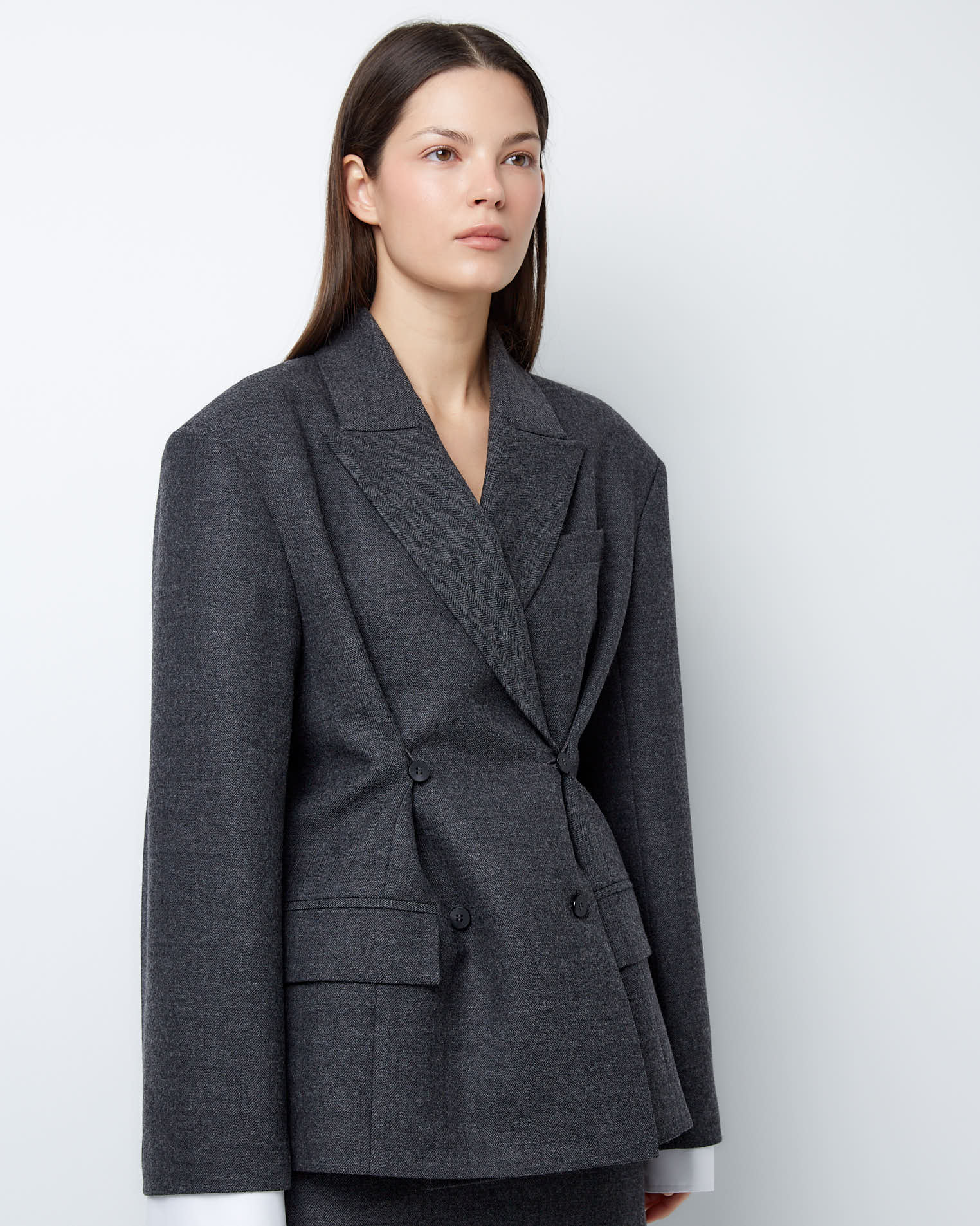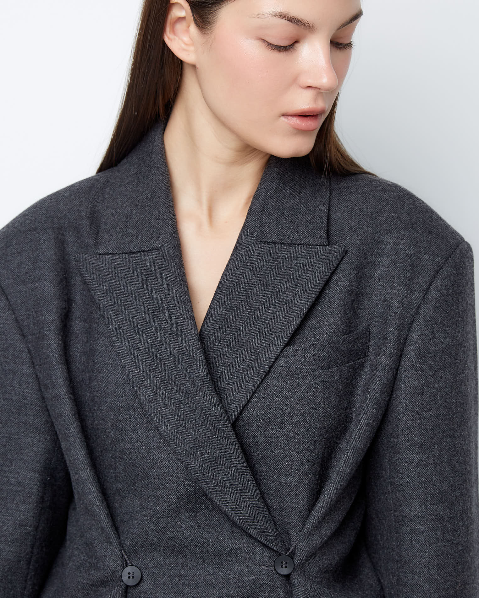 Жакет двубортный с дополнительными петлями из тонкой шерсти в сером цвете