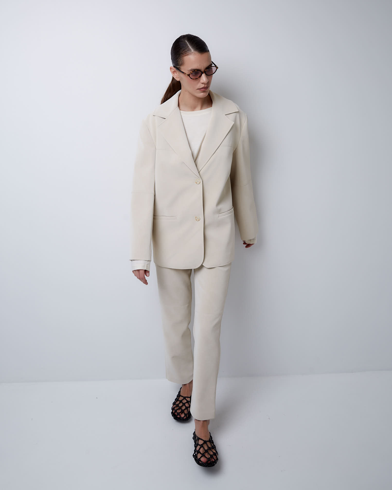 Отличным дополнением к жакету могут стать брюки из того же материала.