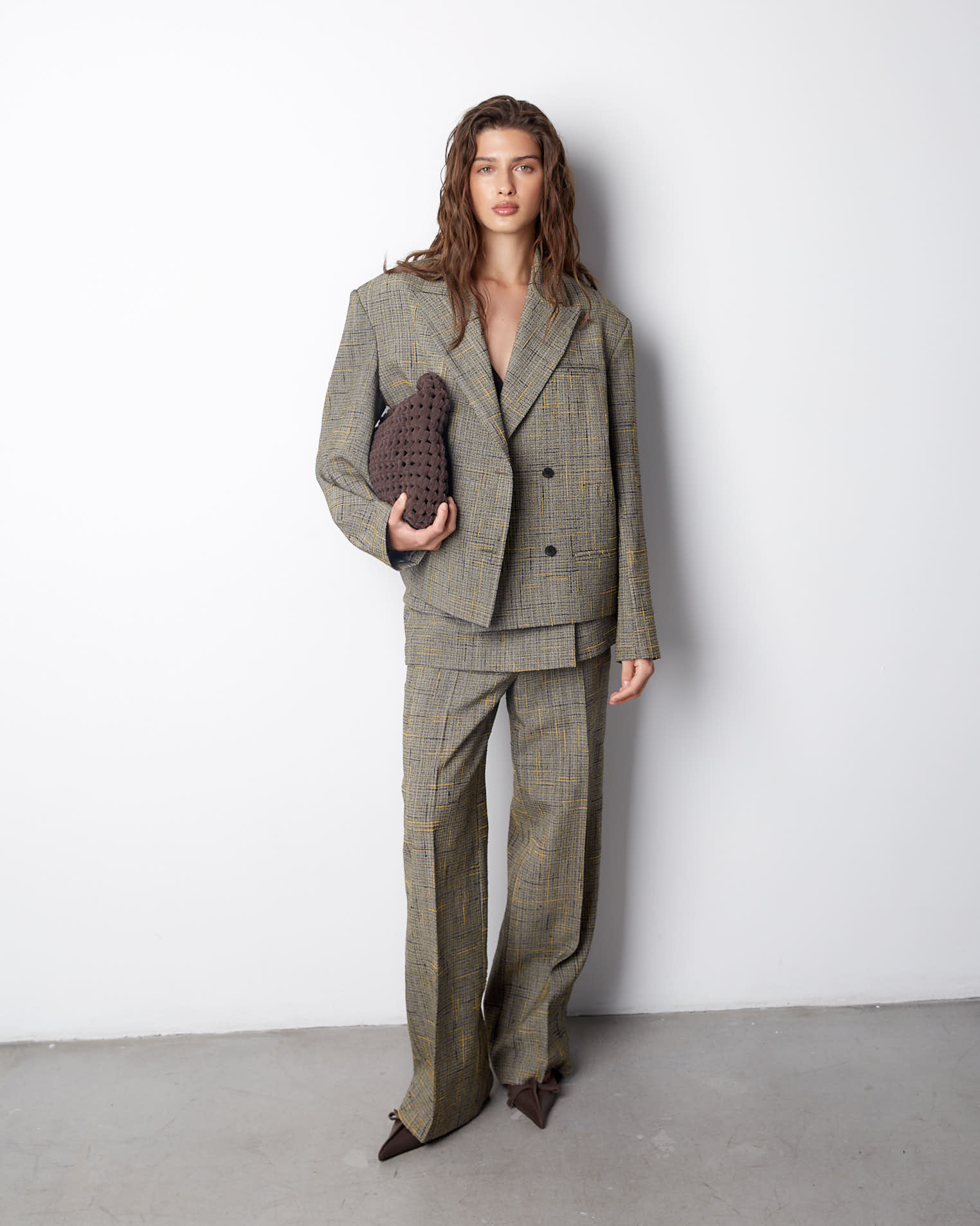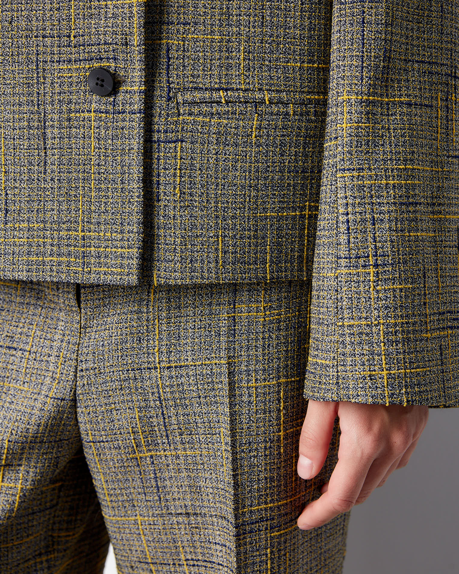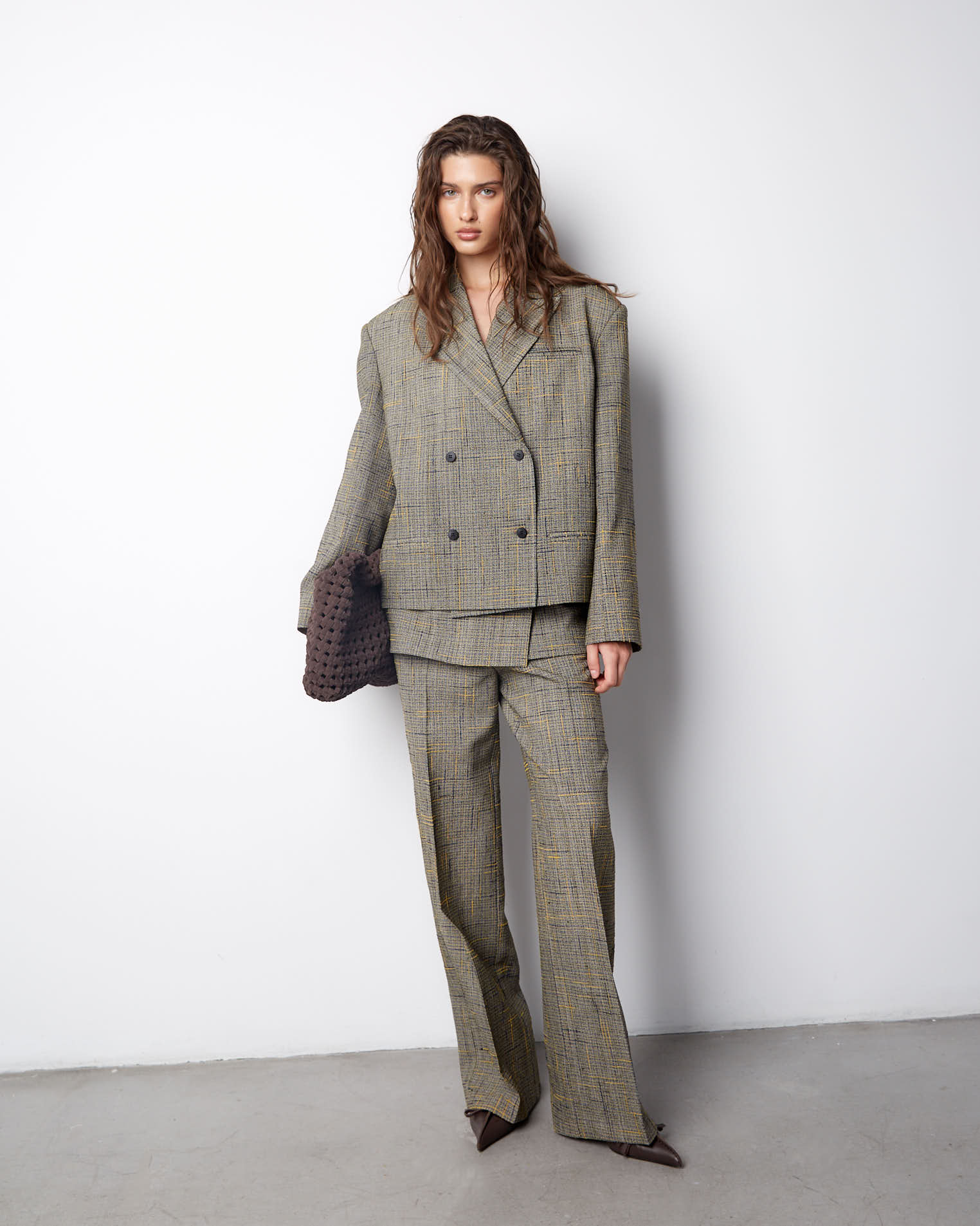 К жакету идеально подойдут брюки из аналогичного материала.