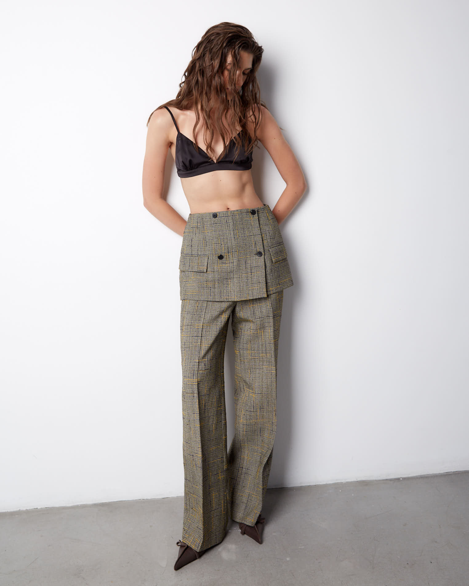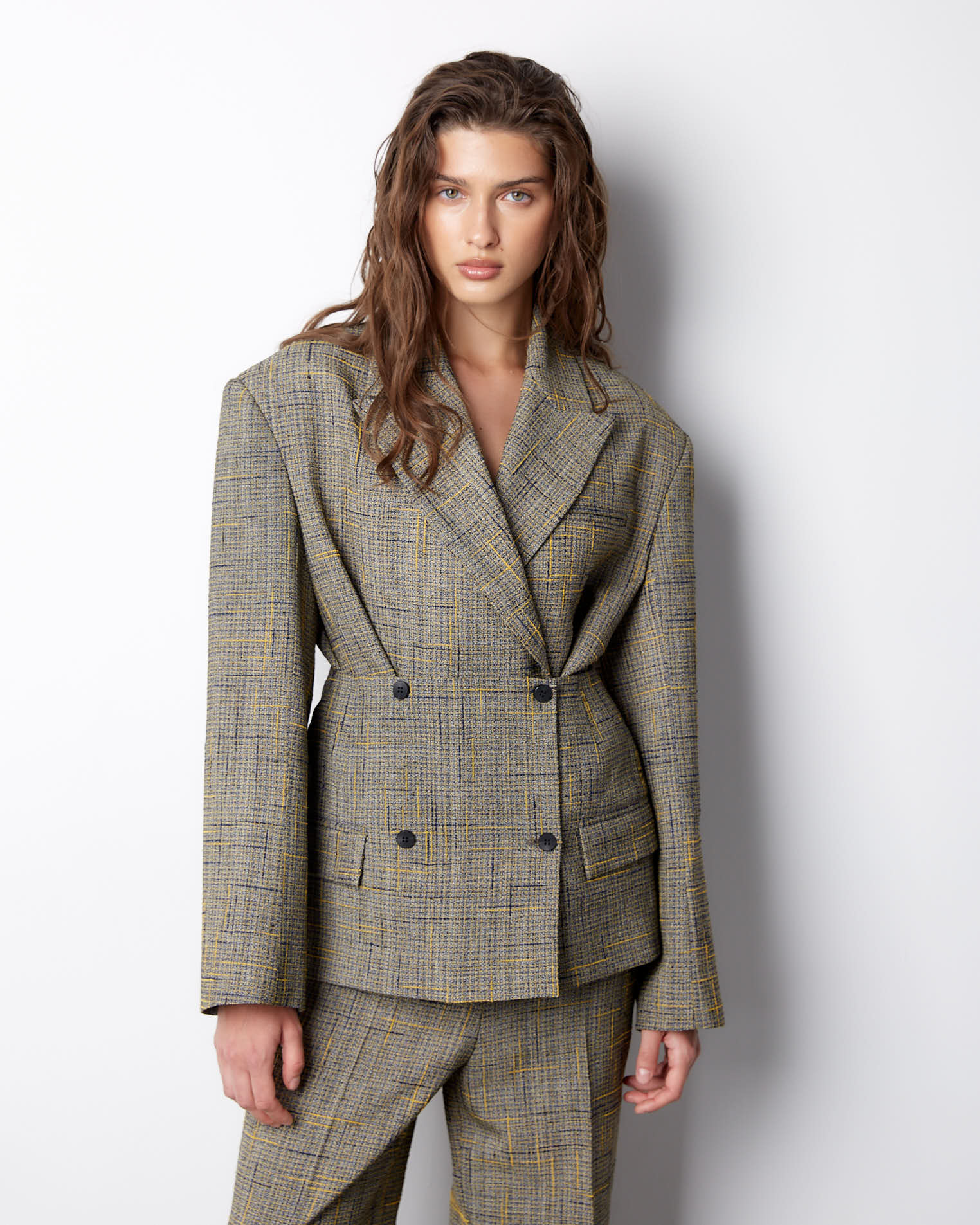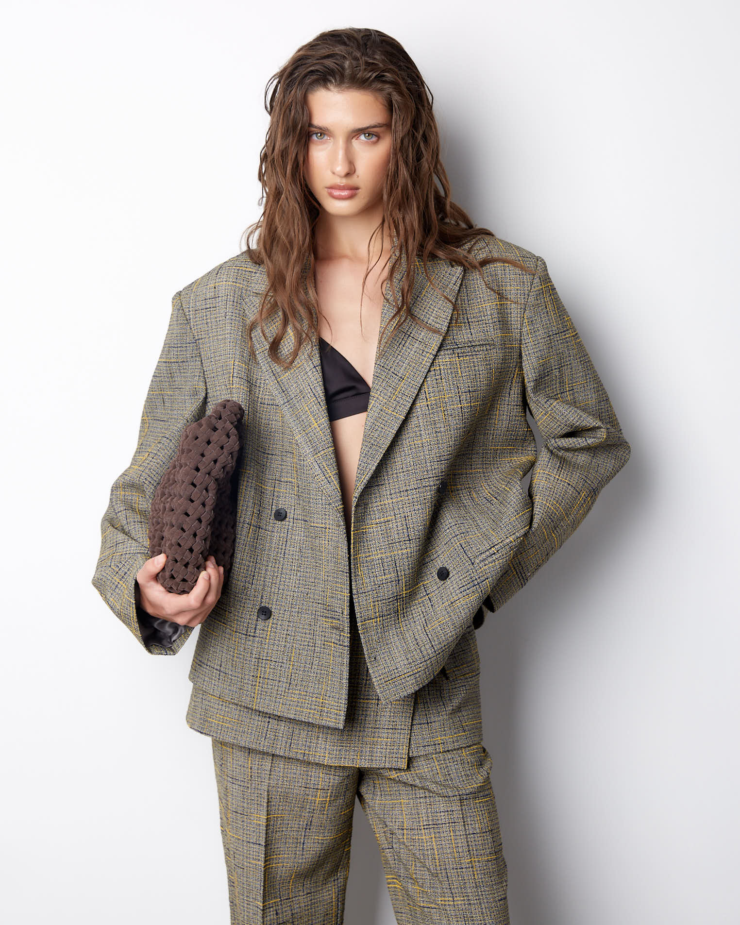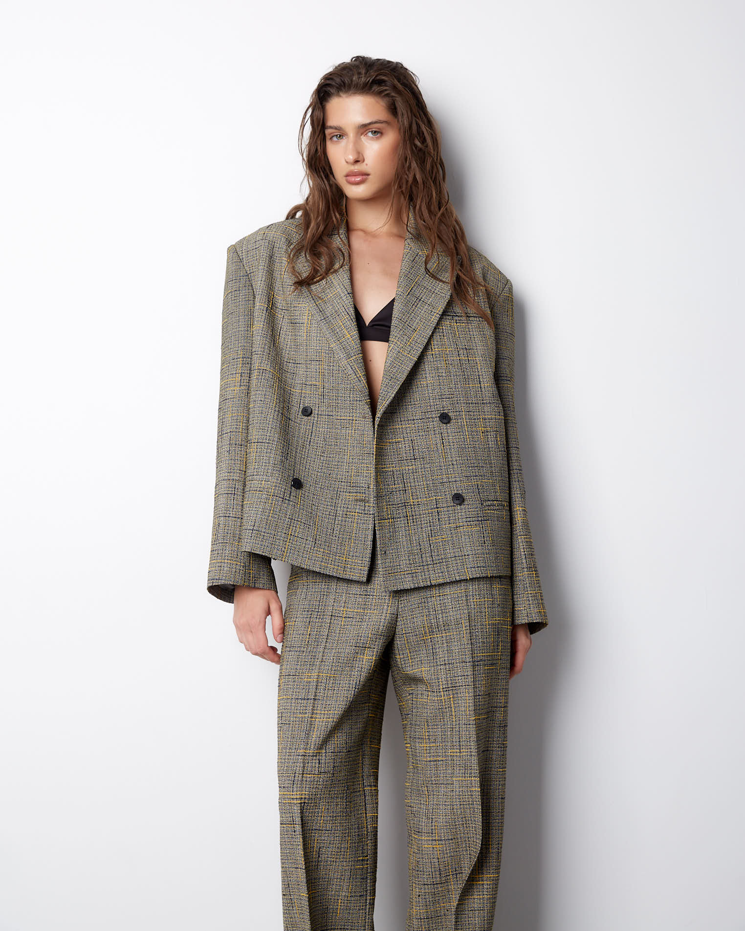 К жакету идеально подойдут брюки из аналогичного материала.