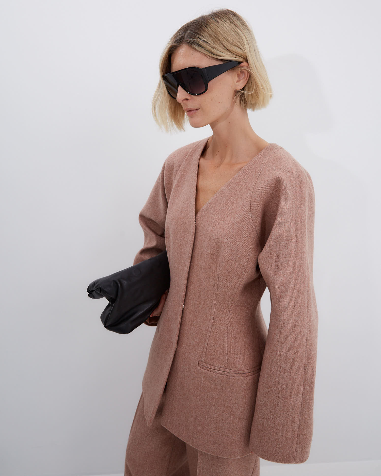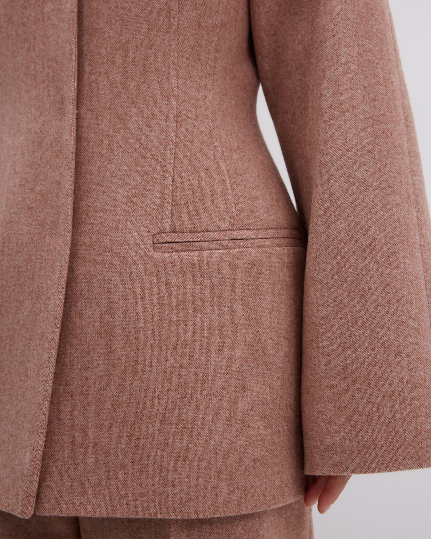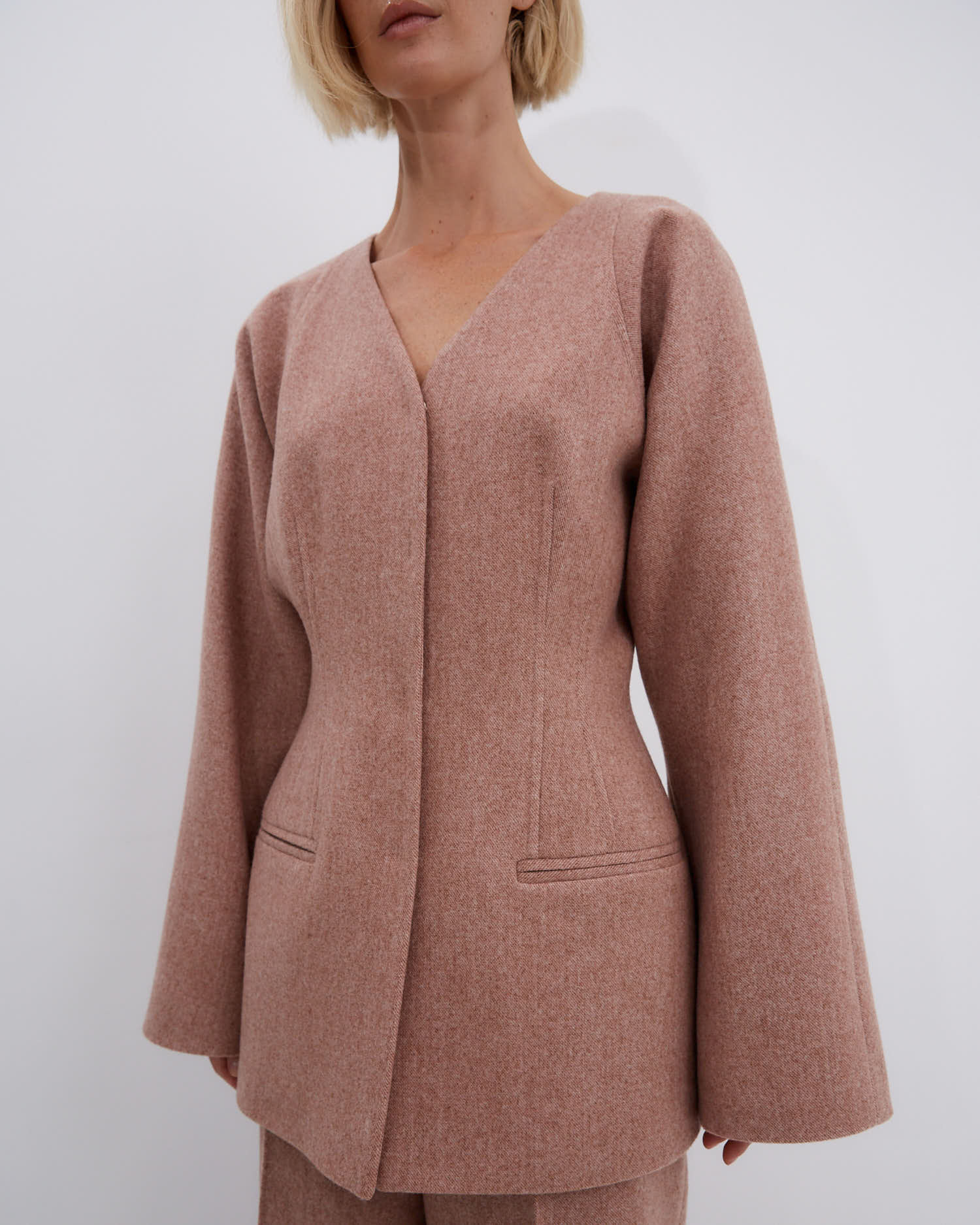 Этот стильный жакет станет идеальным дополнением к вашему гардеробу. Изготовленный из высококачественной шерсти, он прекрасно сидит и подчеркивает фигуру. за счёт приталенного силуэта. Нежный розовый цвет добавляет образу утонченности и элегантности. Подходит как для повседневного использования, так и для особых случаев.