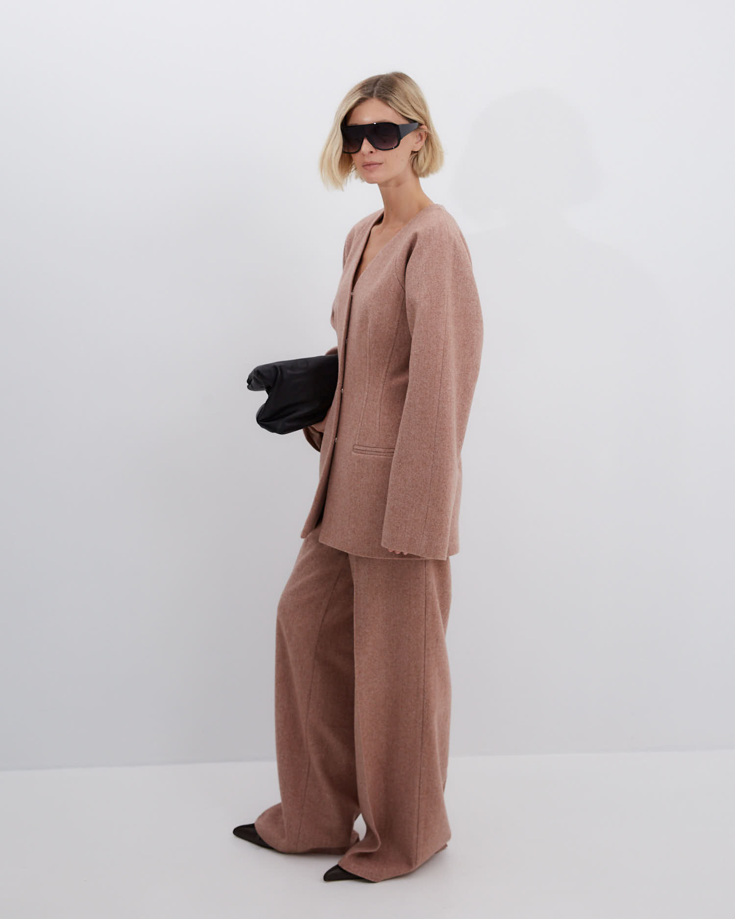 Завершите образ с помощью брюк из аналогичного материала из нашей коллекции. Столь элегантный комплект подойдет для любого случая.