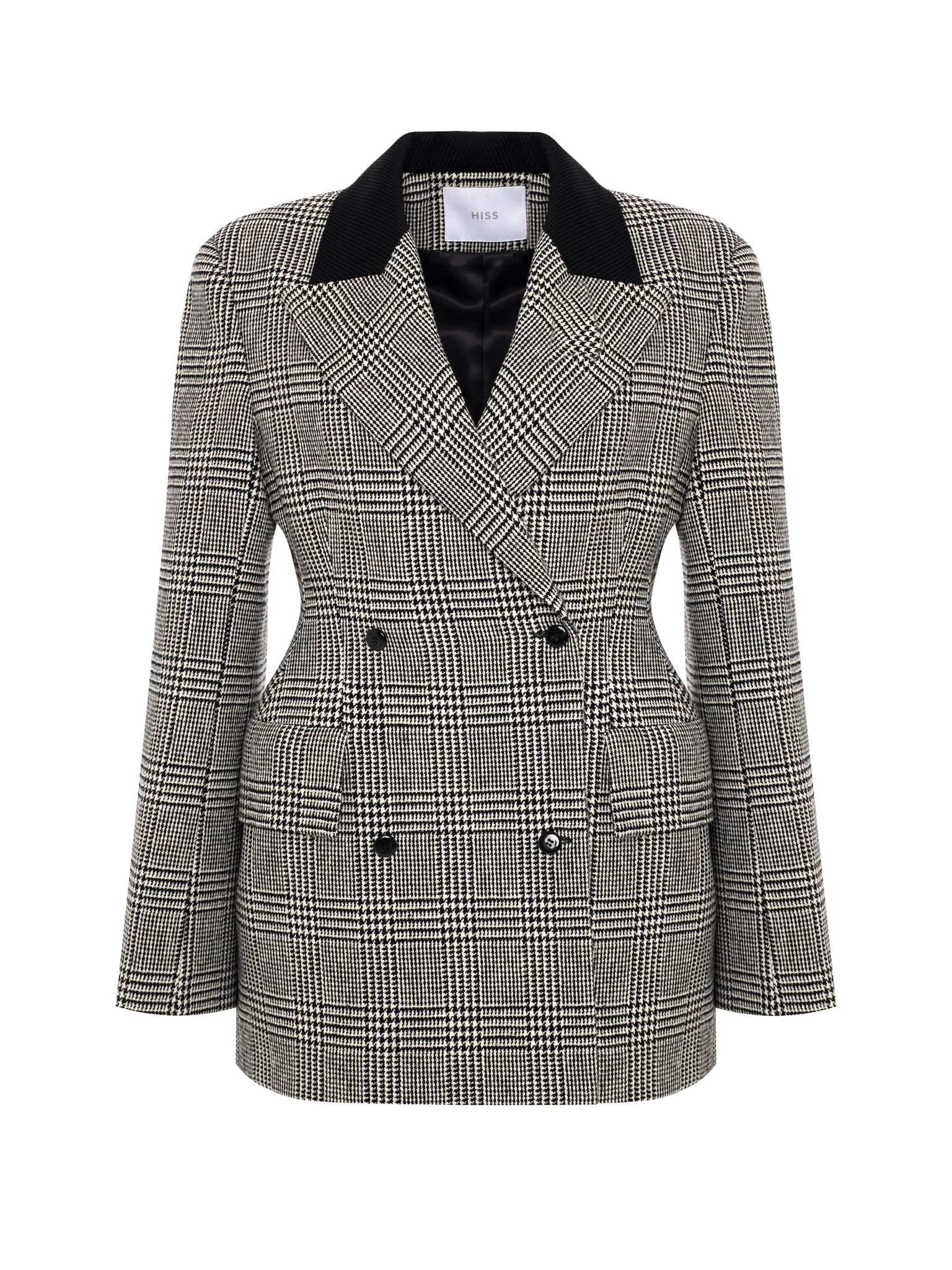 Двубортный жакет с формообразующими бедрами из шерсти от Диор в клетку